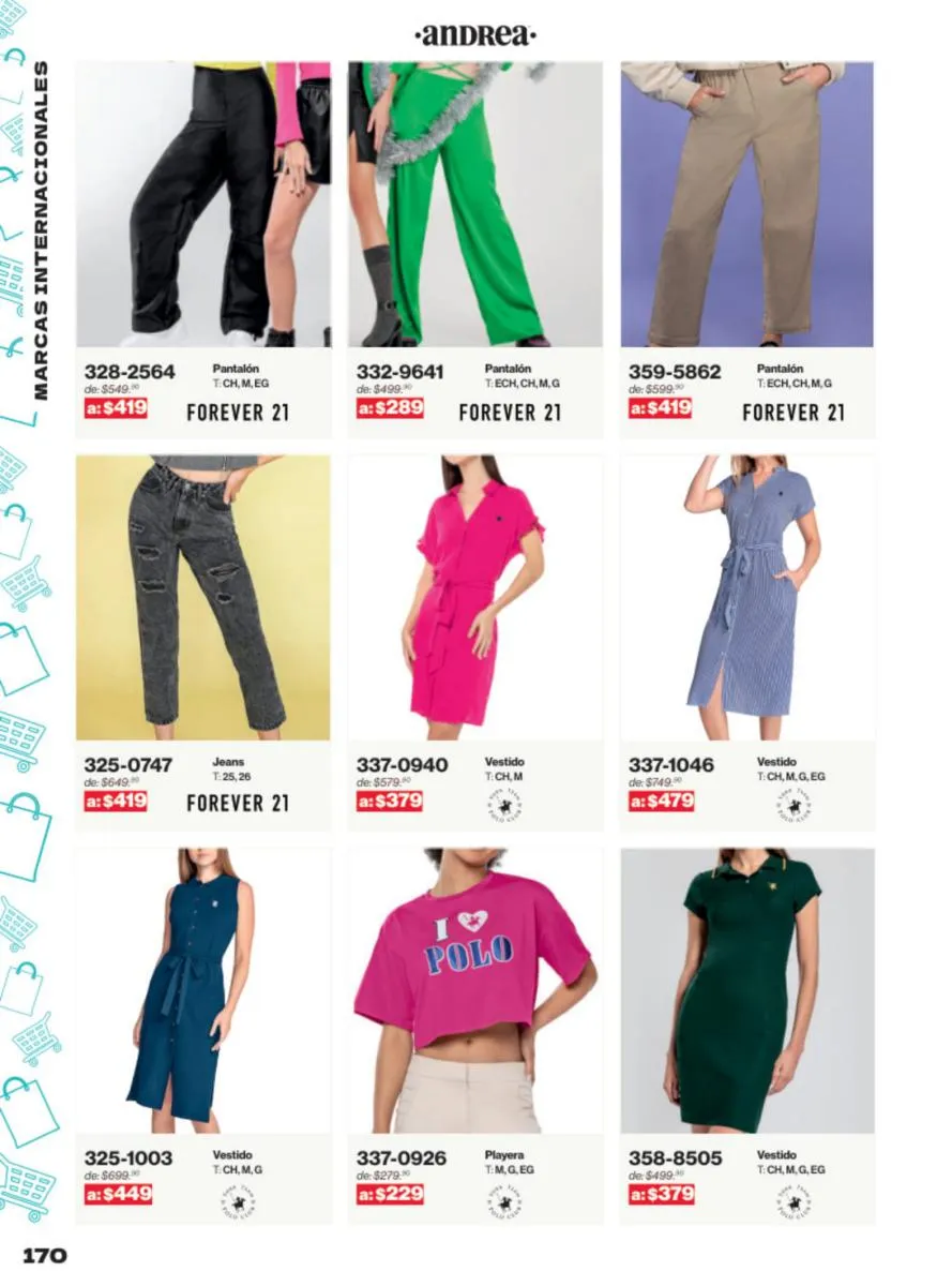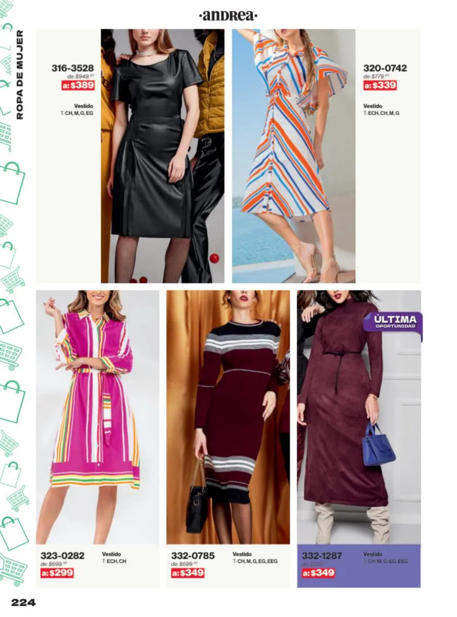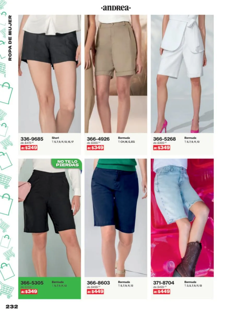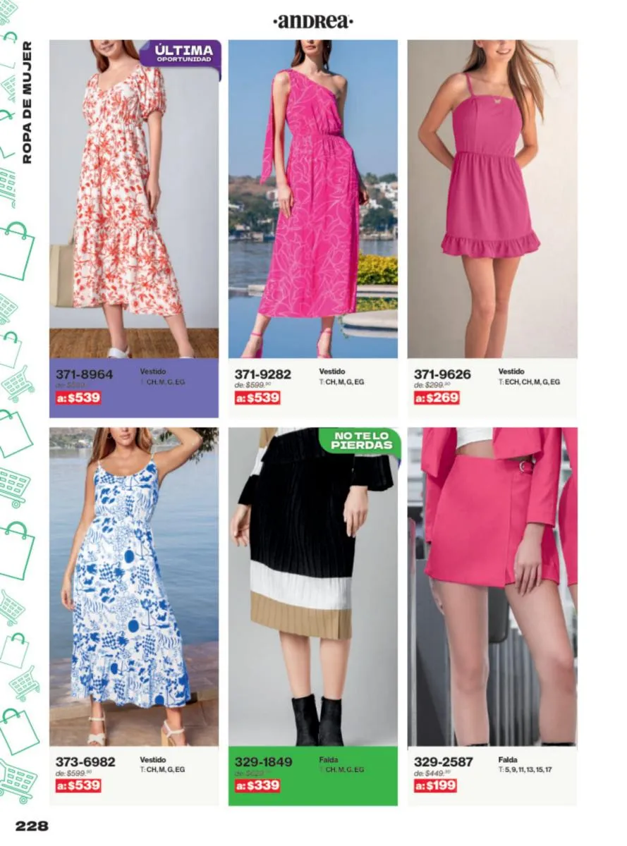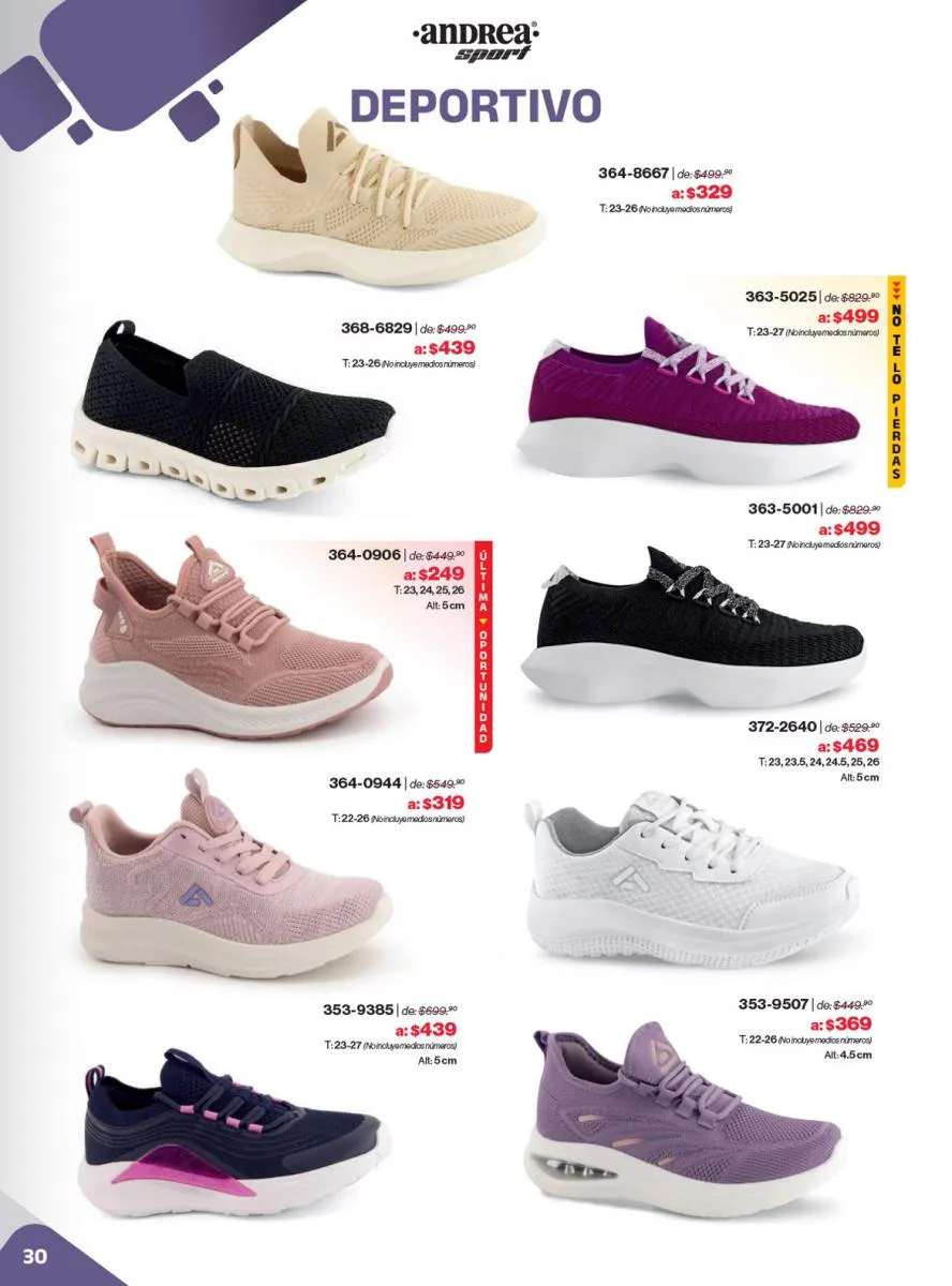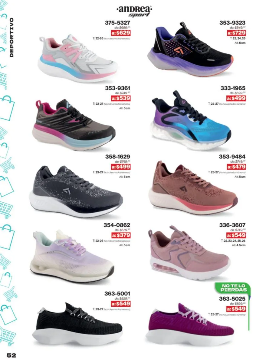 Las sandalias son un elemento esencial en cualquier guardarropa, y Andrea lo sabe muy bien. Este catálogo presenta una selección de sandalias con tacón que combinan comodidad y estilo. Destacan las sandalias en tonos vibrantes como el fucsia y el verde limón, perfectas para darle un toque de color a tus outfits veraniegos. Con detalles de correas ajustables y tacones de diferentes alturas, estas sandalias aseguran un ajuste perfecto y un look sofisticado.