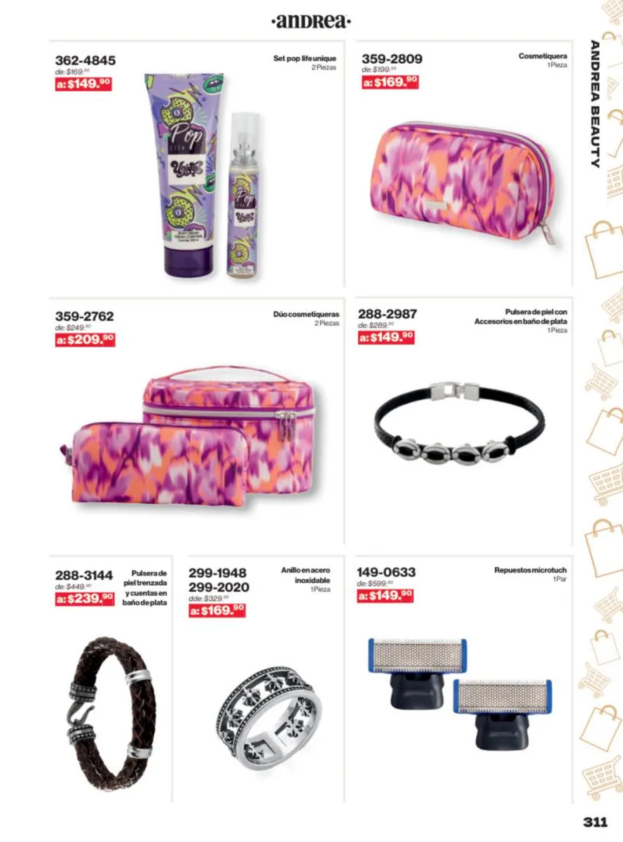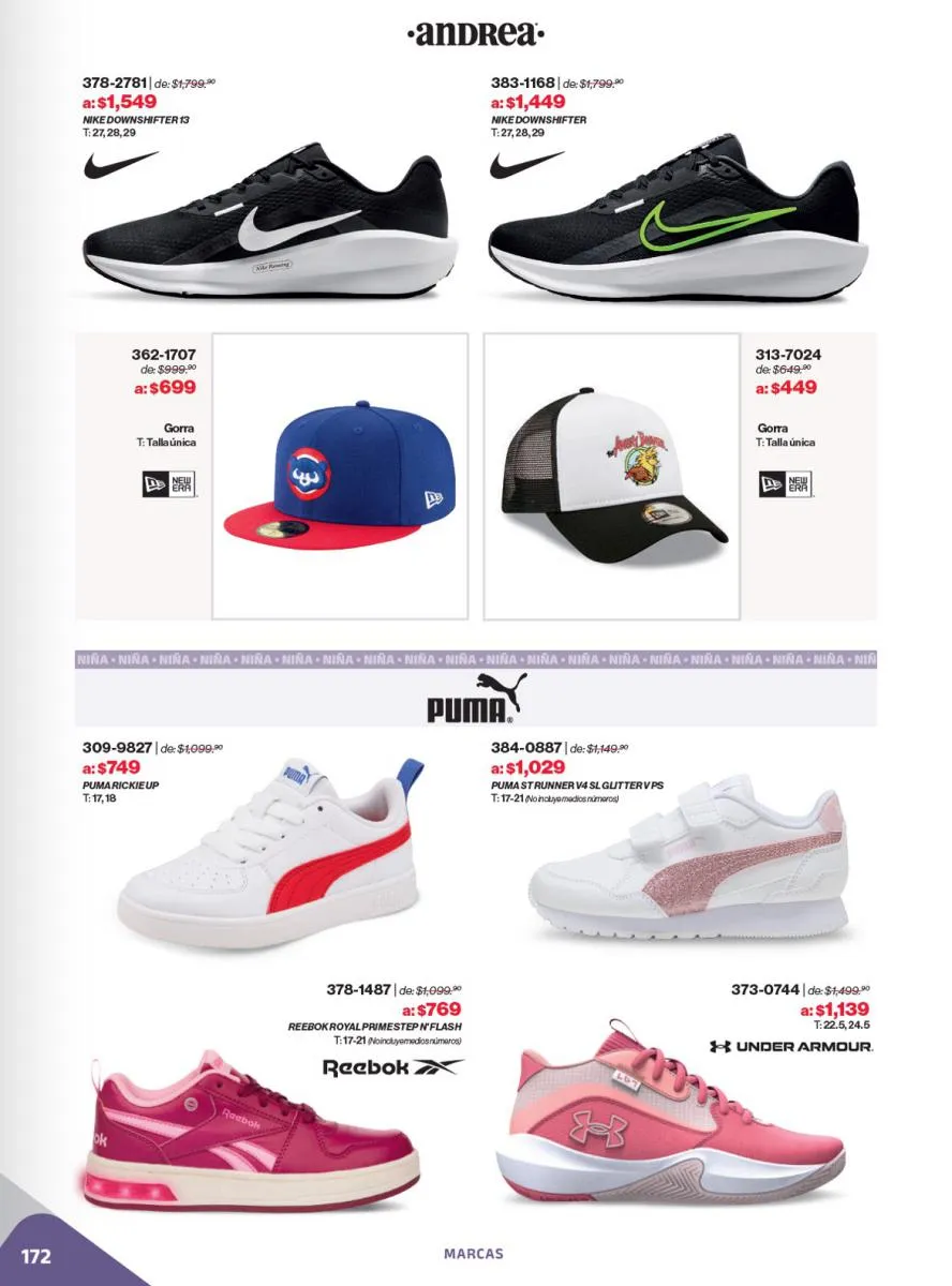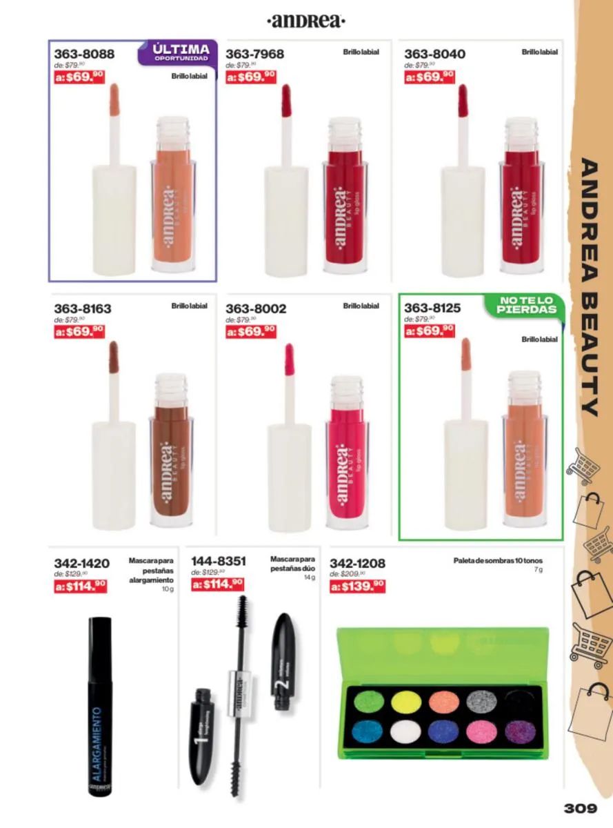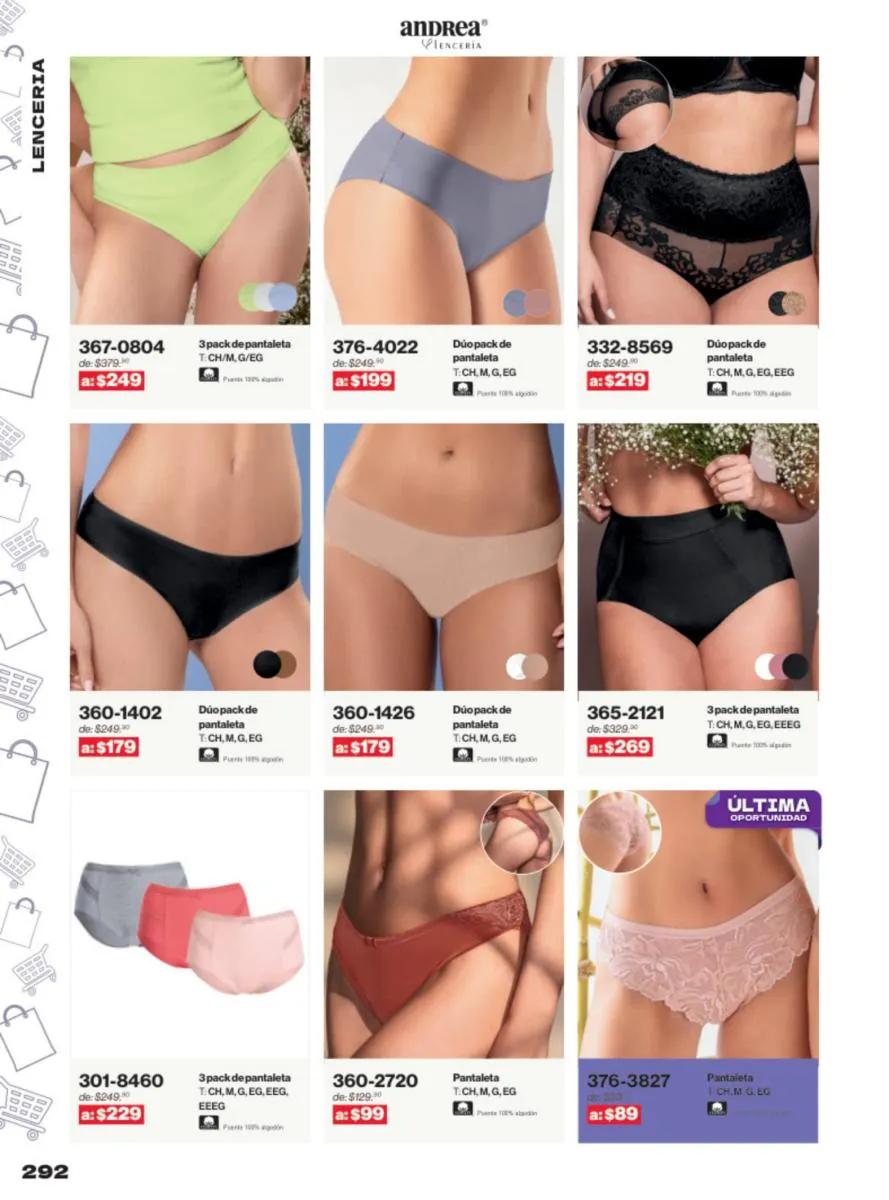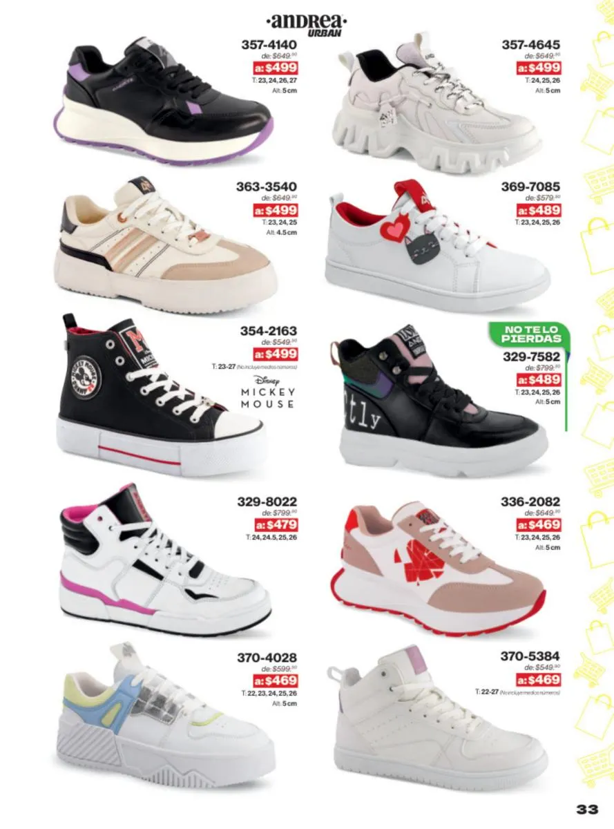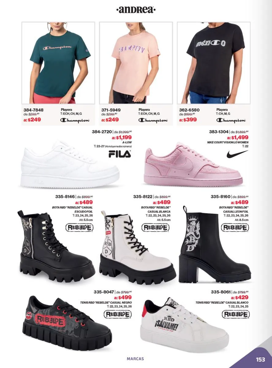 Las sandalias son un elemento esencial en cualquier guardarropa, y Andrea lo sabe muy bien. Este catálogo presenta una selección de sandalias con tacón que combinan comodidad y estilo. Destacan las sandalias en tonos vibrantes como el fucsia y el verde limón, perfectas para darle un toque de color a tus outfits veraniegos. Con detalles de correas ajustables y tacones de diferentes alturas, estas sandalias aseguran un ajuste perfecto y un look sofisticado.