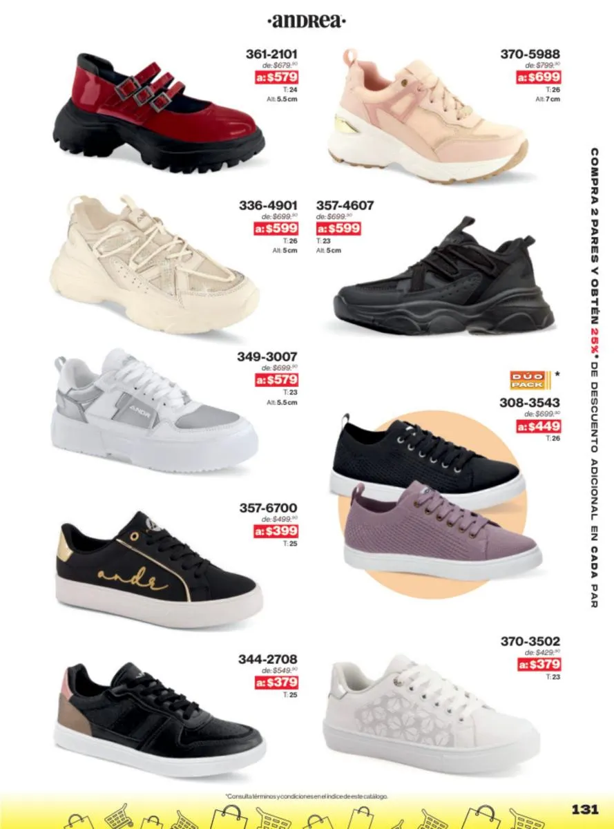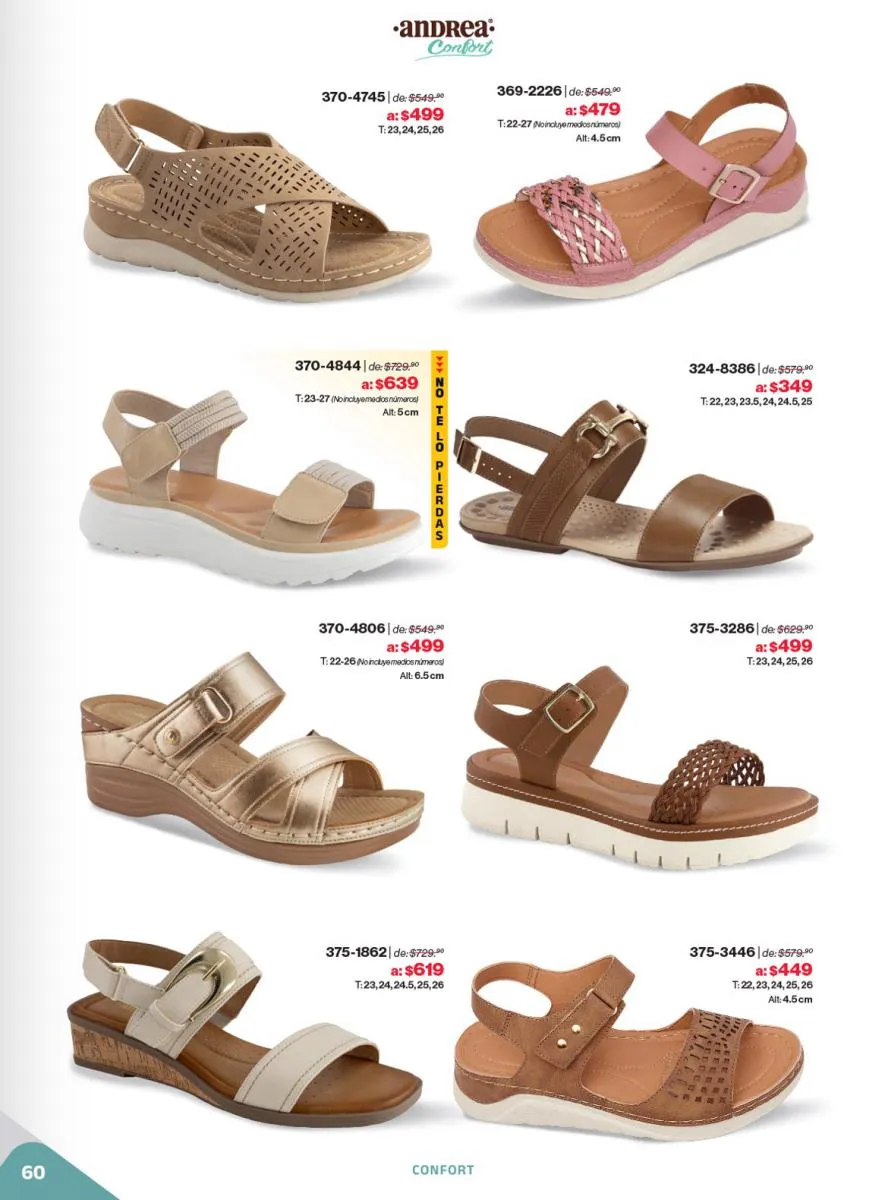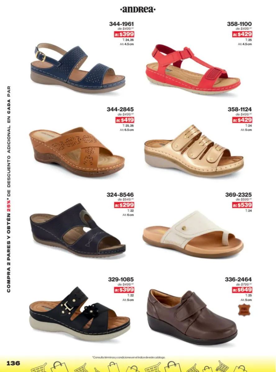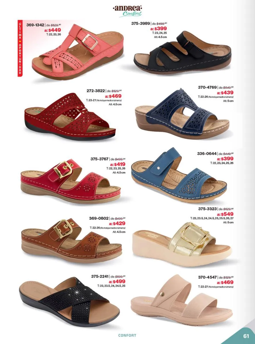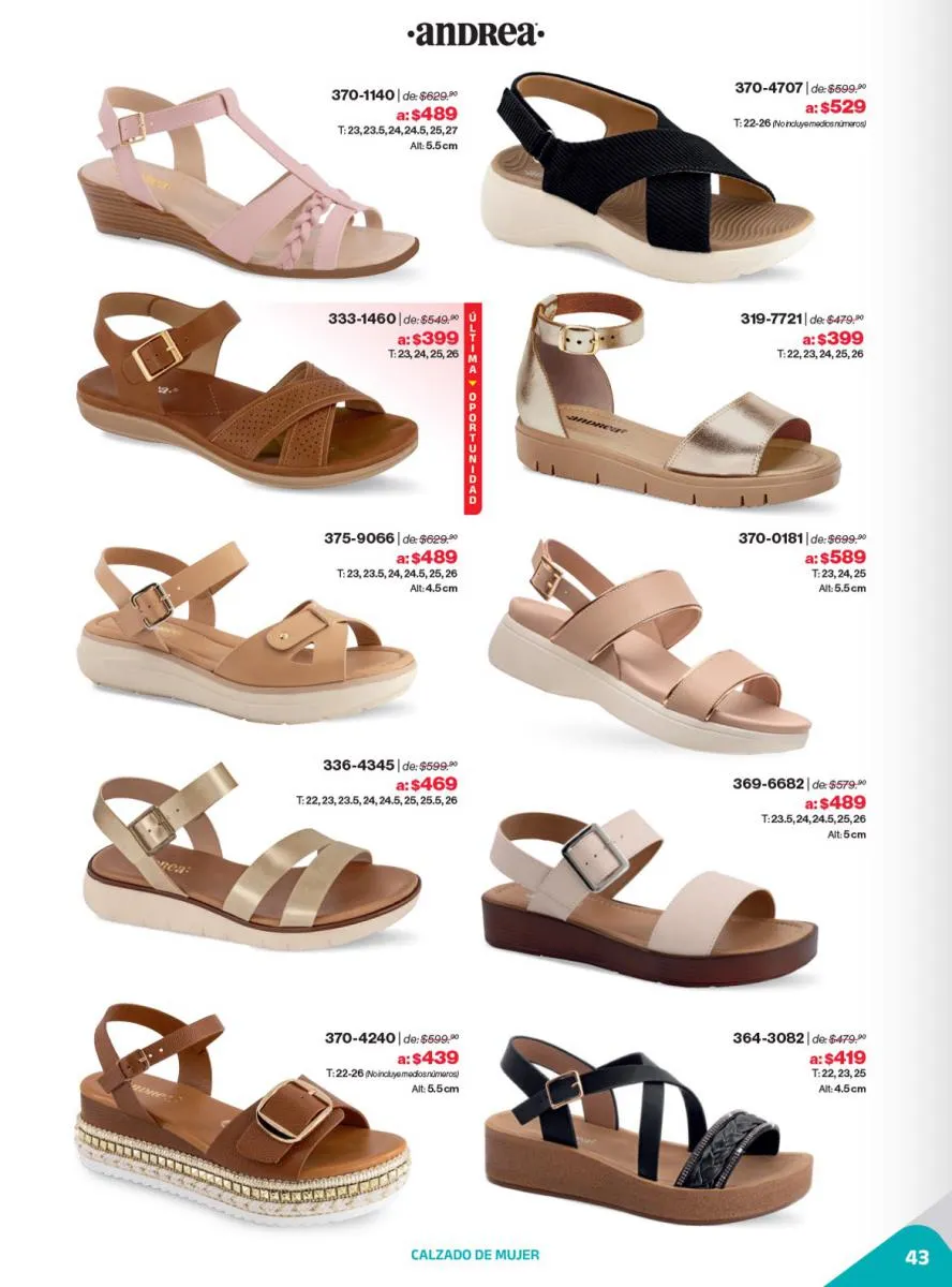 Una de las mayores ventajas del catálogo Andrea Outlet 2025 son las ofertas increíbles que presenta. Con descuentos significativos en una amplia gama de productos, este es el momento perfecto para renovar tu colección de calzado sin gastar una fortuna. Las ofertas incluyen desde sandalias casuales hasta zapatos de tacón alto, asegurando que haya algo para todos.