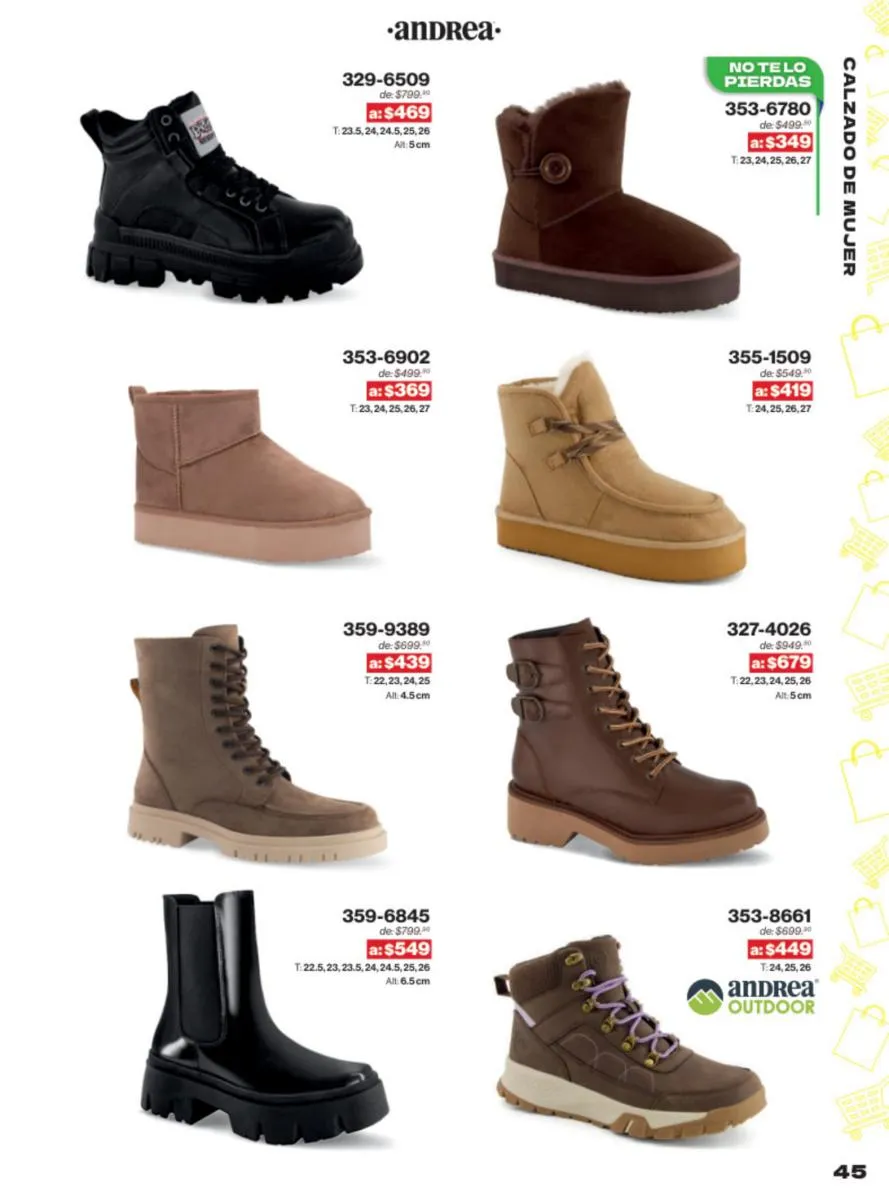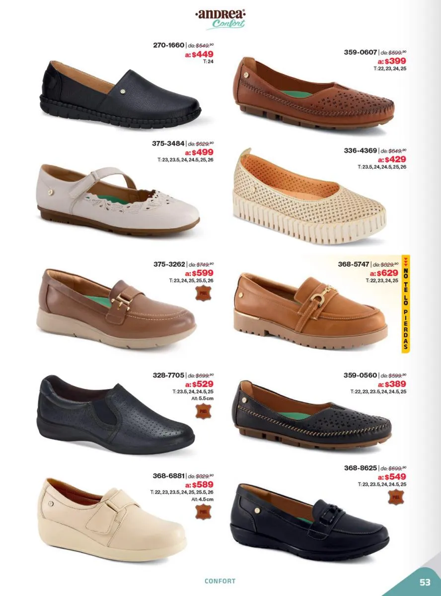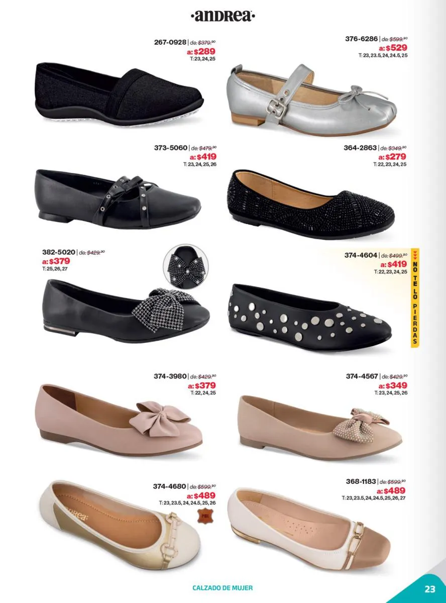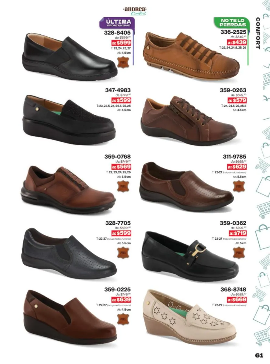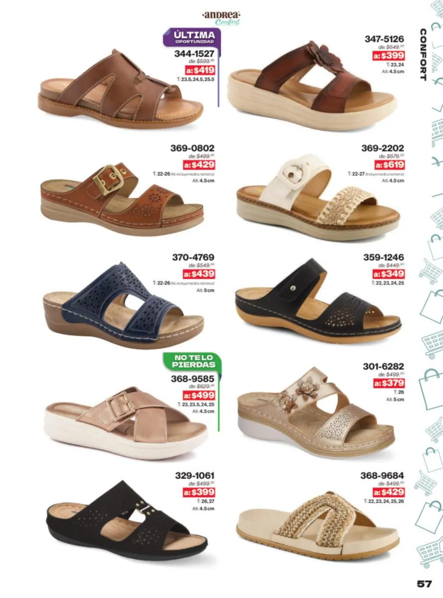 Una de las mayores ventajas del catálogo Andrea Outlet 2025 son las ofertas increíbles que presenta. Con descuentos significativos en una amplia gama de productos, este es el momento perfecto para renovar tu colección de calzado sin gastar una fortuna. Las ofertas incluyen desde sandalias casuales hasta zapatos de tacón alto, asegurando que haya algo para todos.