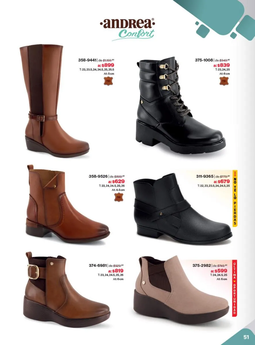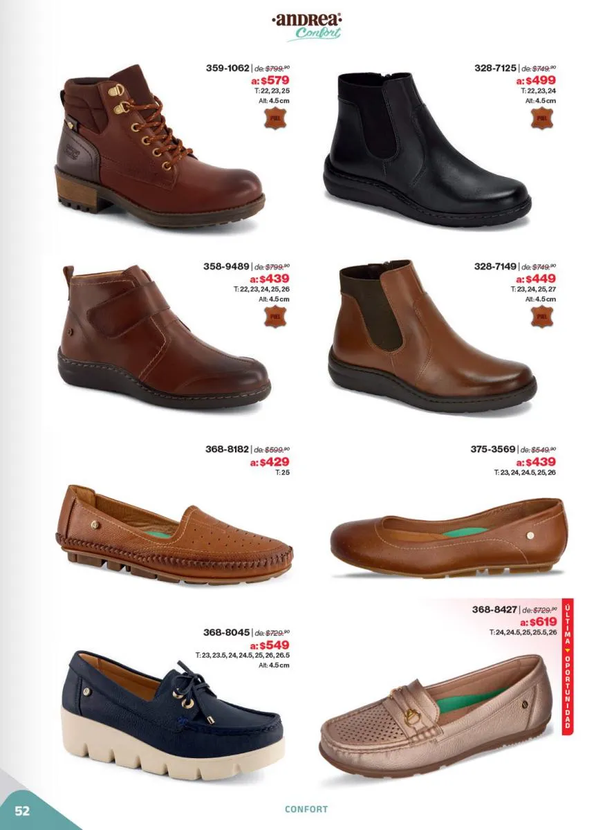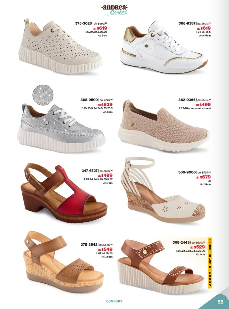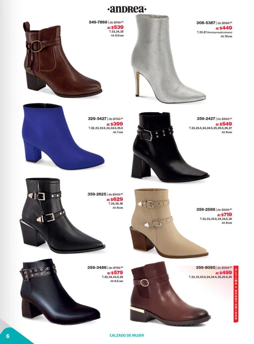 Además de su atractivo diseño, los productos del catálogo Andrea se destacan por su alta calidad y comodidad. Utilizando materiales de primera y una confección meticulosa, Andrea garantiza que cada par de zapatos no solo se vea bien, sino que también se sienta bien al usarlo. Esto es crucial para aquellas que buscan un calzado que puedan usar todo el día sin sacrificar el estilo.