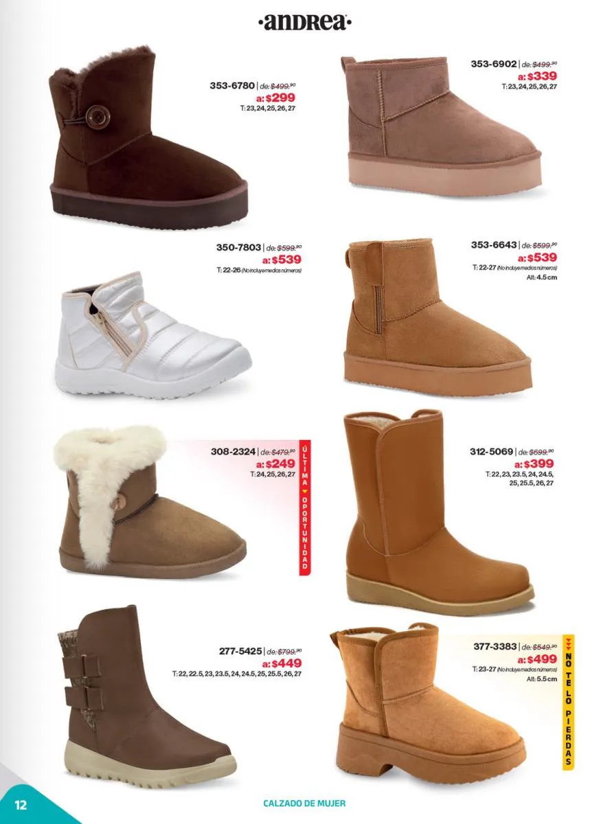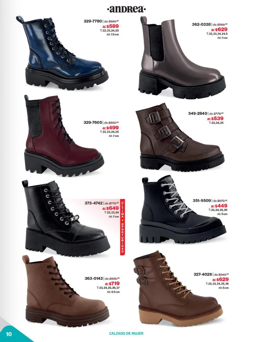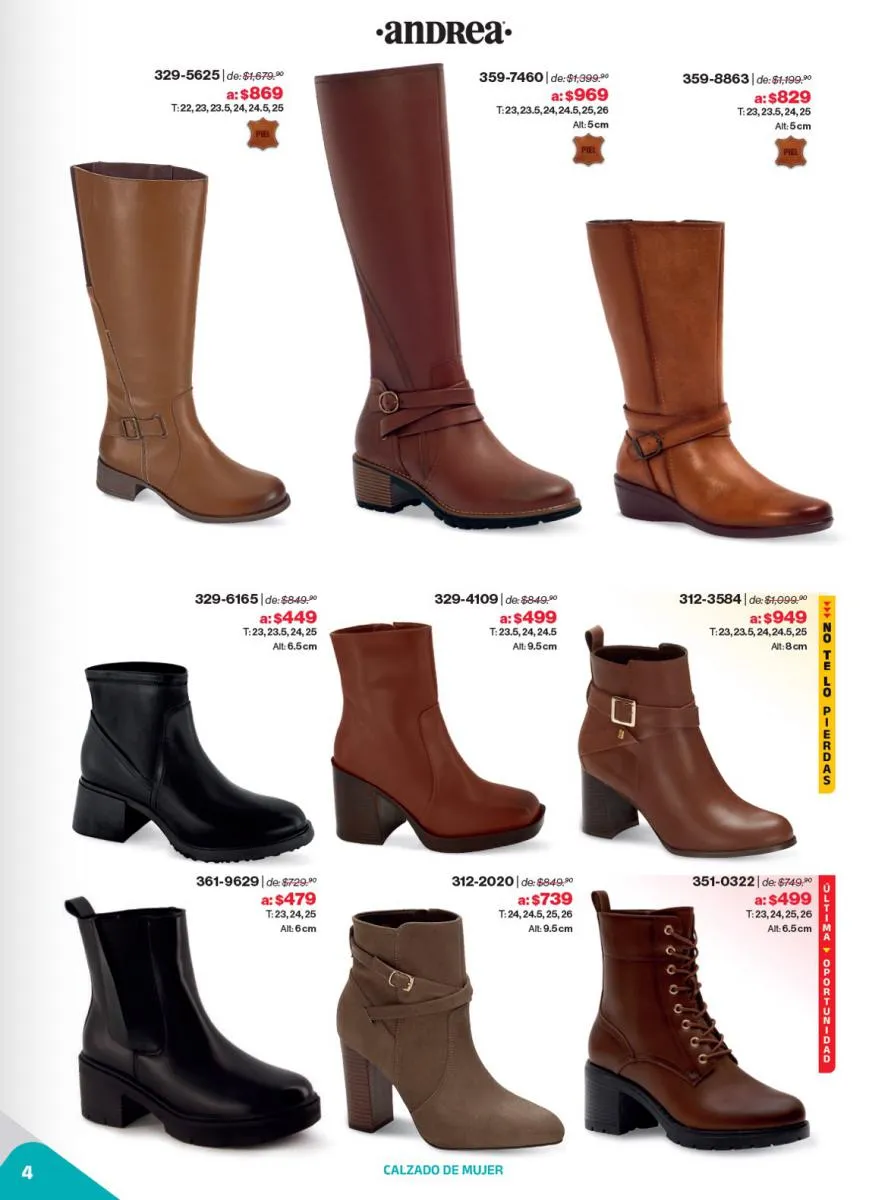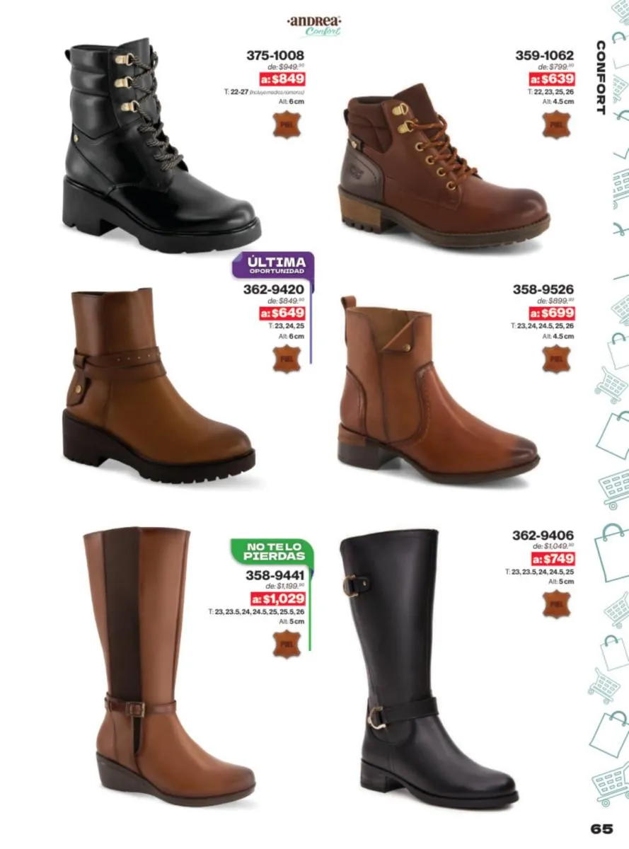 Además de su atractivo diseño, los productos del catálogo Andrea se destacan por su alta calidad y comodidad. Utilizando materiales de primera y una confección meticulosa, Andrea garantiza que cada par de zapatos no solo se vea bien, sino que también se sienta bien al usarlo. Esto es crucial para aquellas que buscan un calzado que puedan usar todo el día sin sacrificar el estilo.