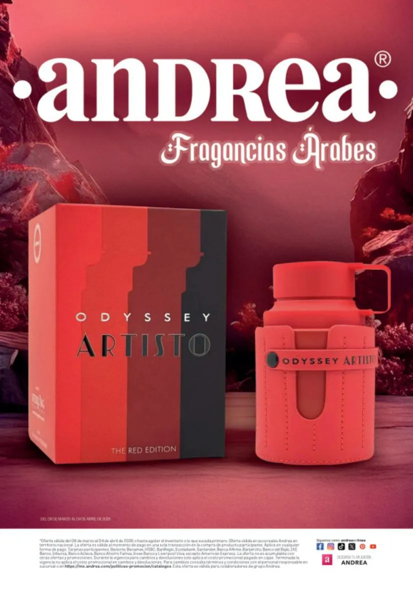Andrea, a través de su catálogo Perfumes 2026, nos invita a aprovechar estas ofertas exclusivas que combinan diseño, confort y economía. No dejes pasar la oportunidad de renovar tu guardarropa con estas increíbles promociones que Andrea ha preparado especialmente para ti.