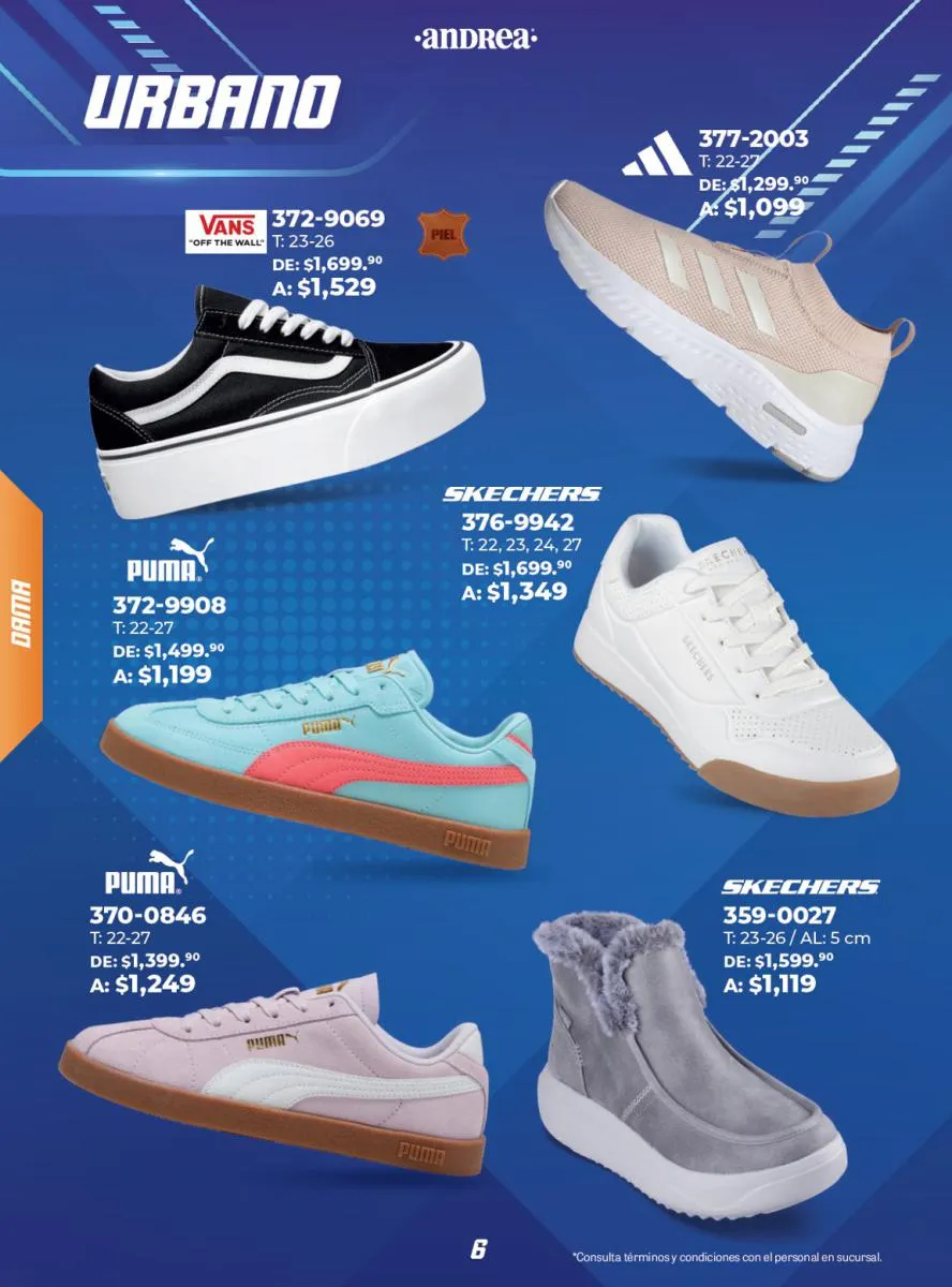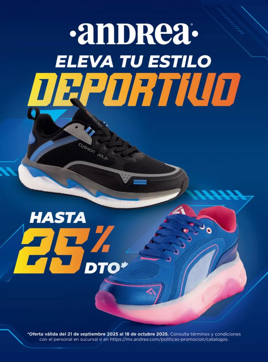 Nada más apropiado para esos pasos decisivos hacia tus objetivos que los botines que esta catálogo Andrea Eleva tu Estilo Deportivo 2025 trae para ti. Atractivo, con mucho encanto y personalidad, tal y como eres tú.