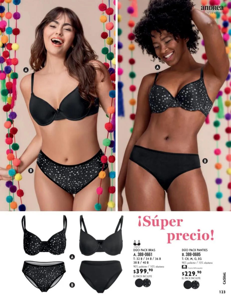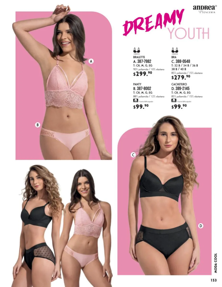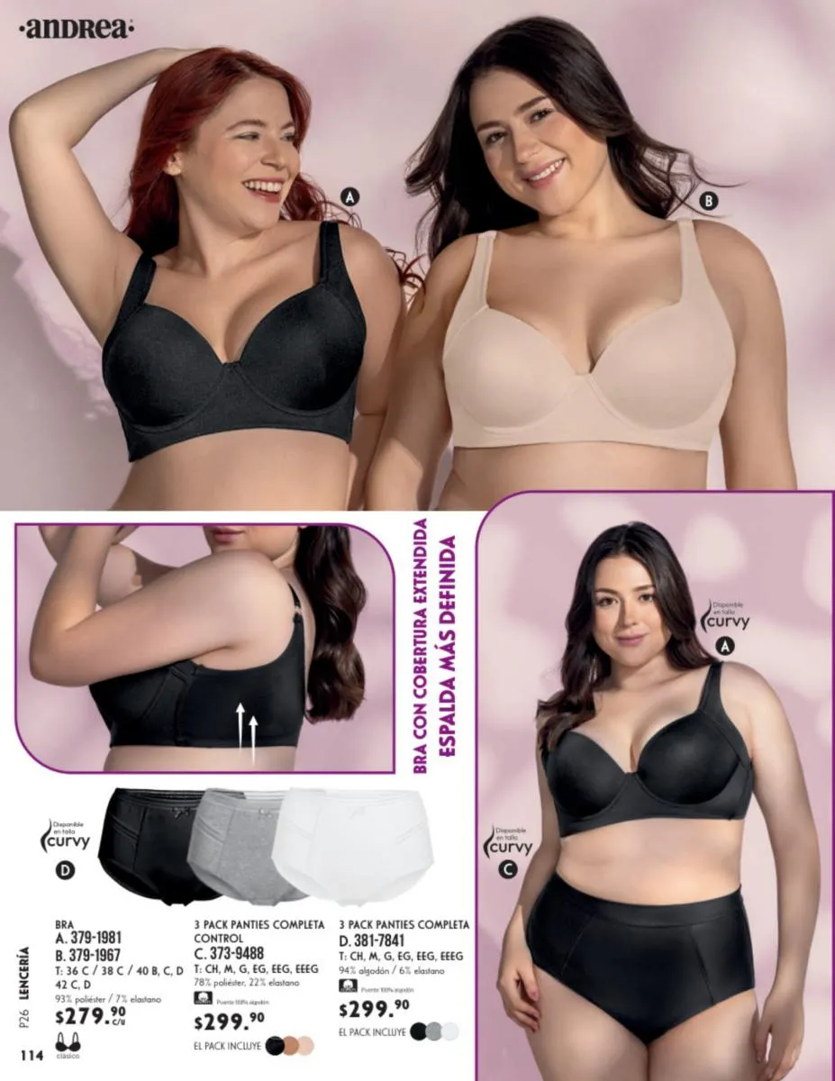 También consigue cacheteros y blackettes para cualquier tipo de cuerpo y disfruta al máximo de este Primavera. Los mejores set e ideales para todas los puedes obtener en este catálogo Andrea Vestir Interior Primavera 2026.