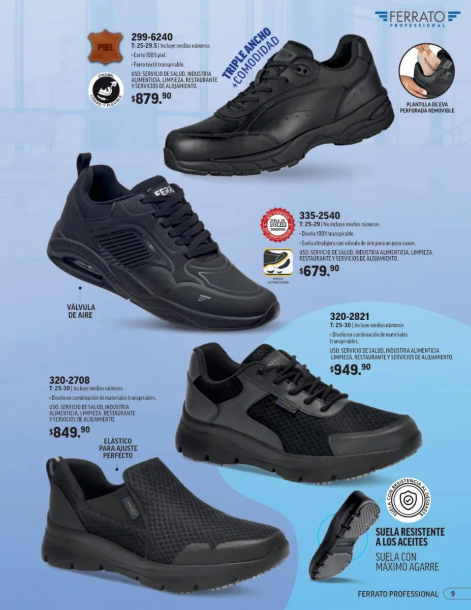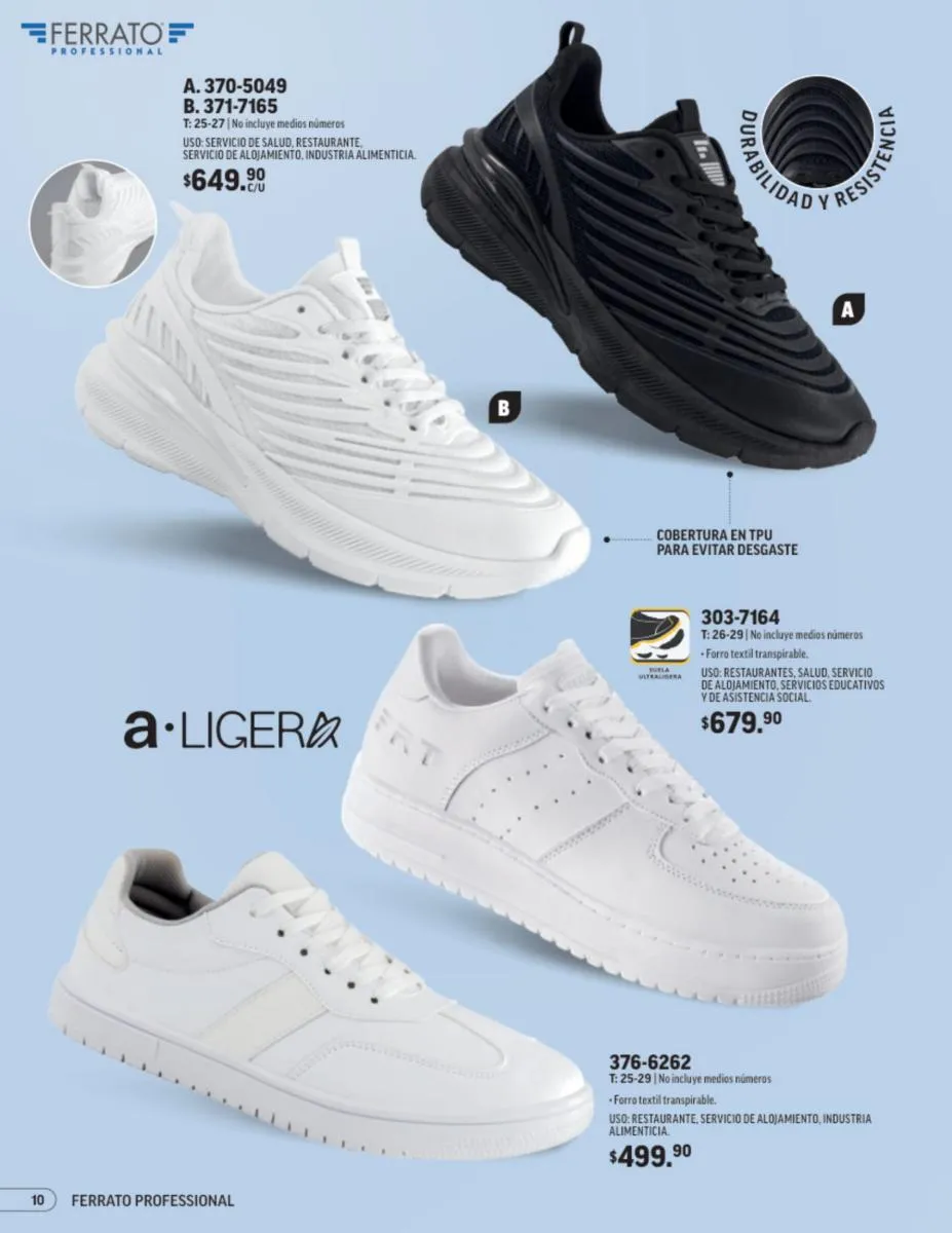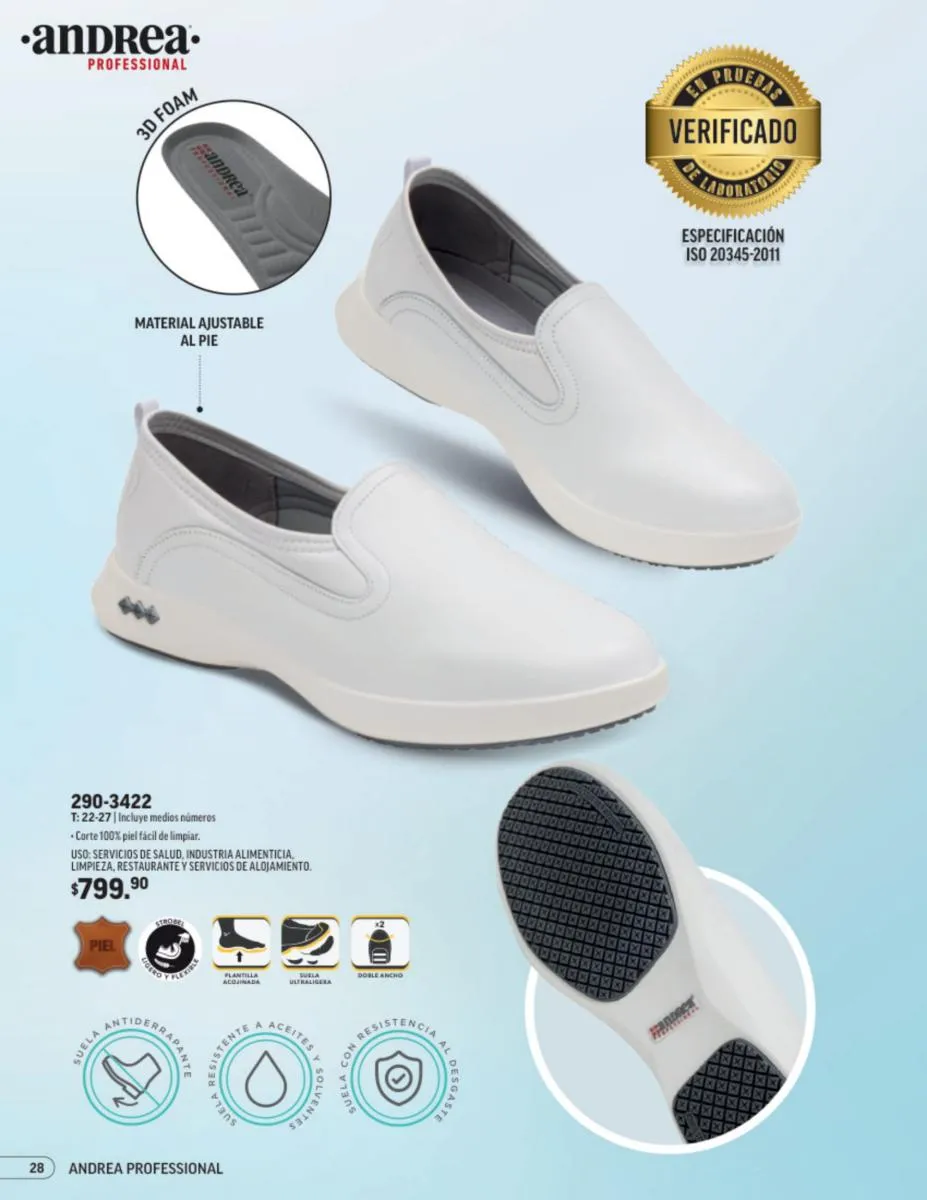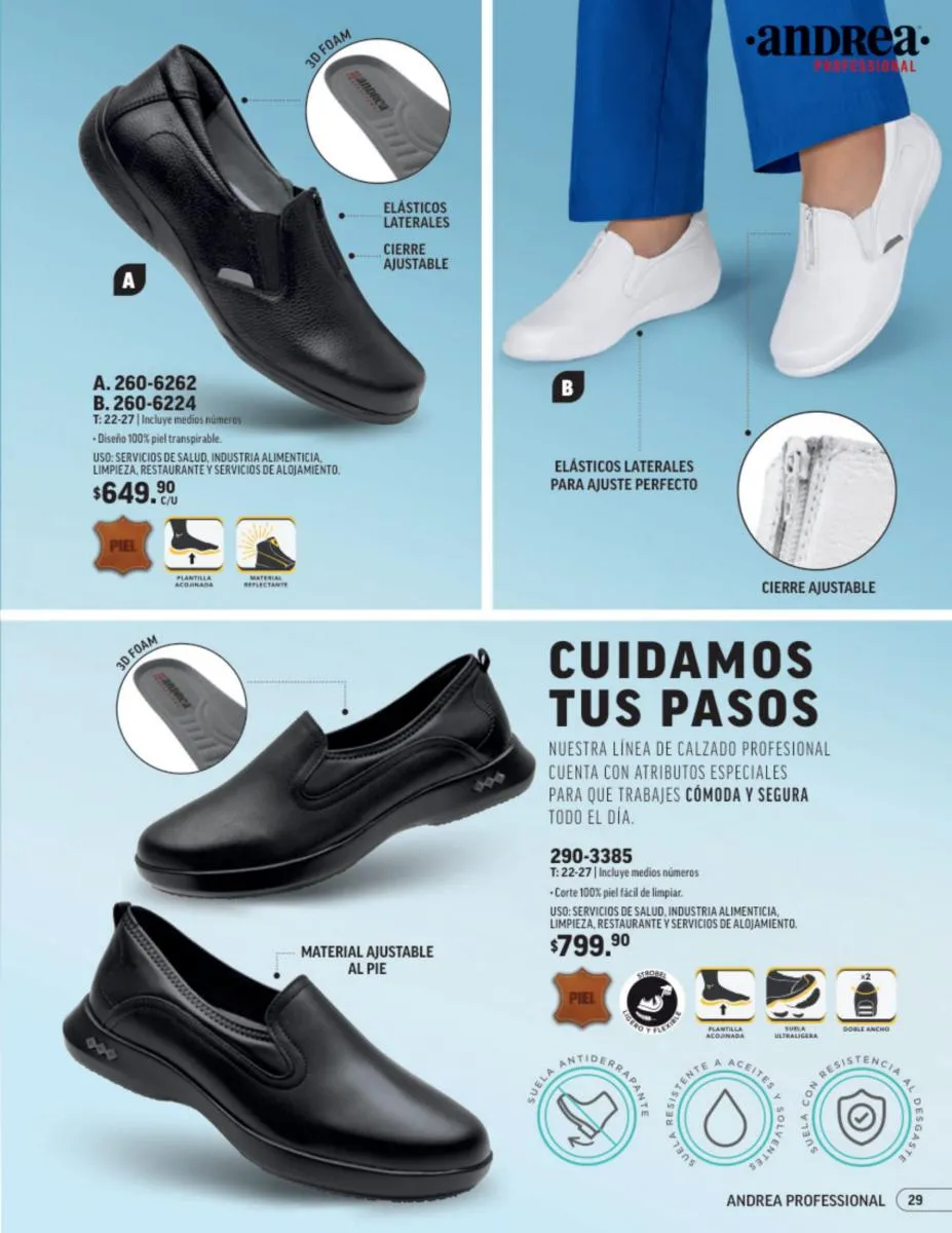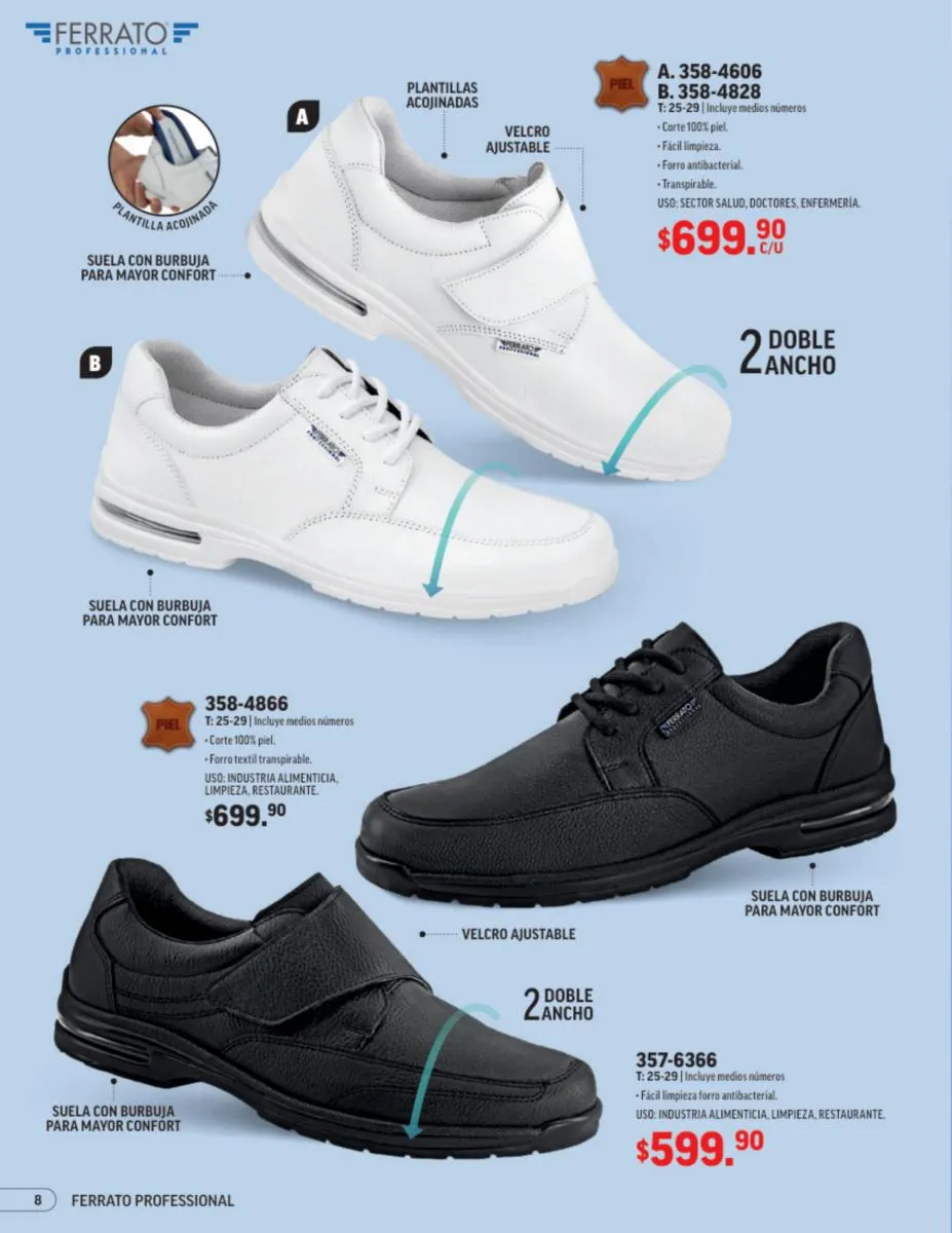 Cada producto del catálogo ha sido meticulosamente diseñado para ofrecer el máximo confort, con plantillas acolchadas y removibles que se adaptan a la forma del pie, proporcionando un soporte duradero y una sensación de bienestar durante todo el día. La durabilidad de los materiales y la calidad de la construcción aseguran que estos zapatos sean una inversión inteligente para cualquier profesional.