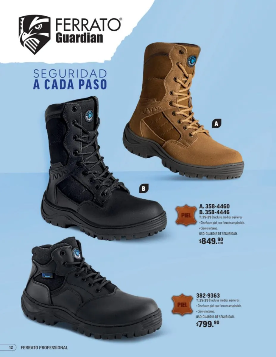 La serie Ferrato Guardian combina materiales transpirables y resistentes para brindar una protección óptima sin sacrificar la comodidad. Los diseños, como las botas de seguridad reflectantes, son perfectos para guardias y personal de seguridad, ofreciendo visibilidad y una suela anti-lodo que asegura un paso firme en cualquier superficie.