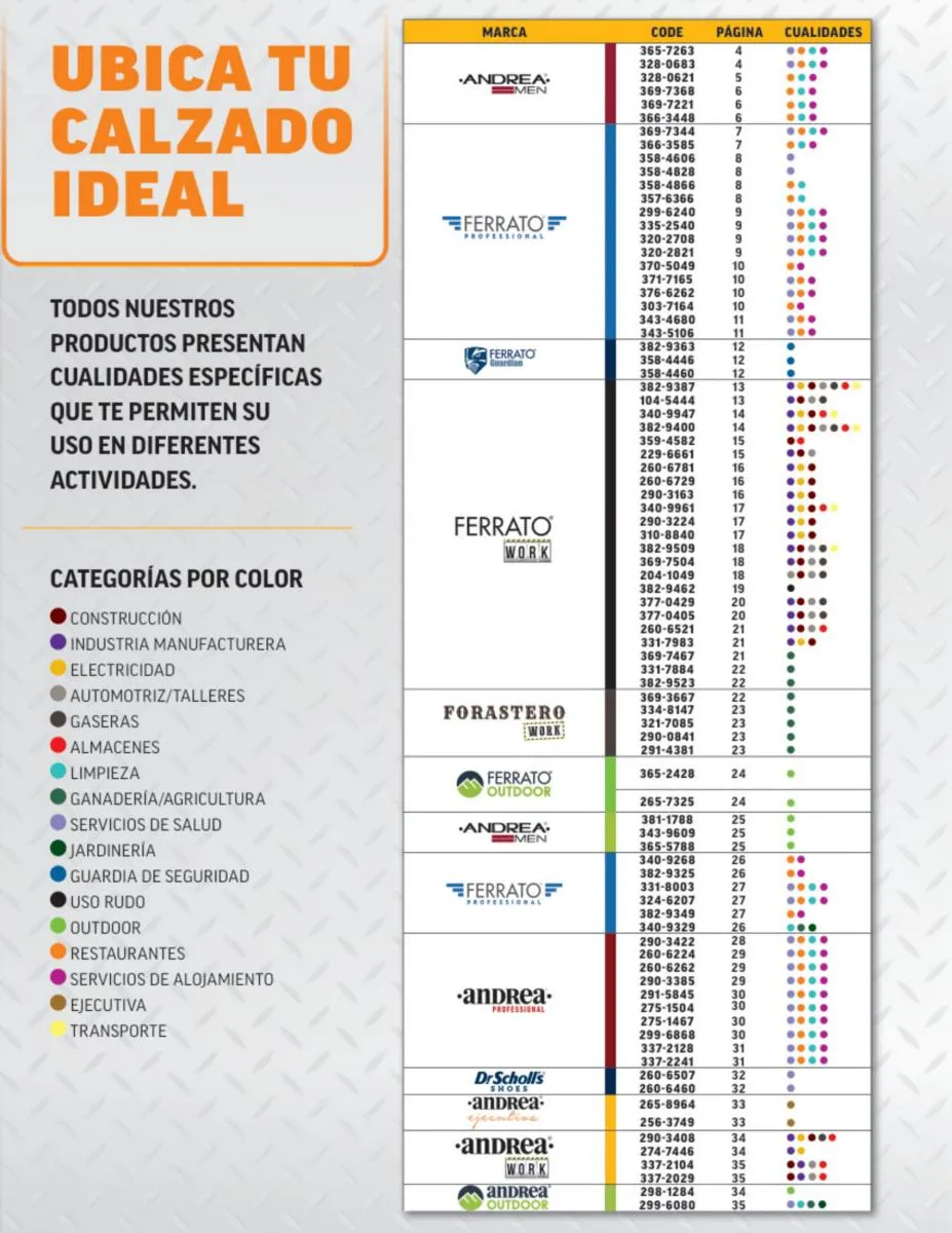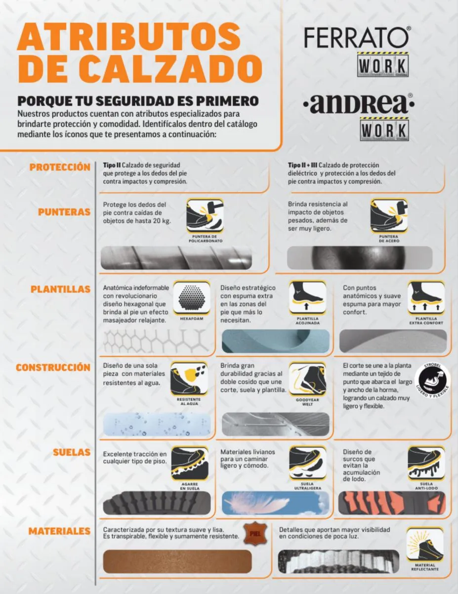 El catálogo Andrea de Zapatos de Seguridad Profesional e Industrial 2025 México es una muestra de compromiso con la excelencia y la protección en el trabajo. Cada modelo está diseñado para enfrentar los desafíos más exigentes, asegurando que cada paso sea seguro, cómodo y estilizado. Ya sea en la construcción, manufactura o seguridad, Andrea tiene el calzado perfecto para cada profesional, combinando tecnología, protección y diseño en cada par de zapatos.