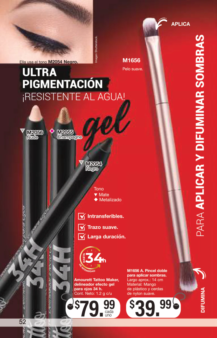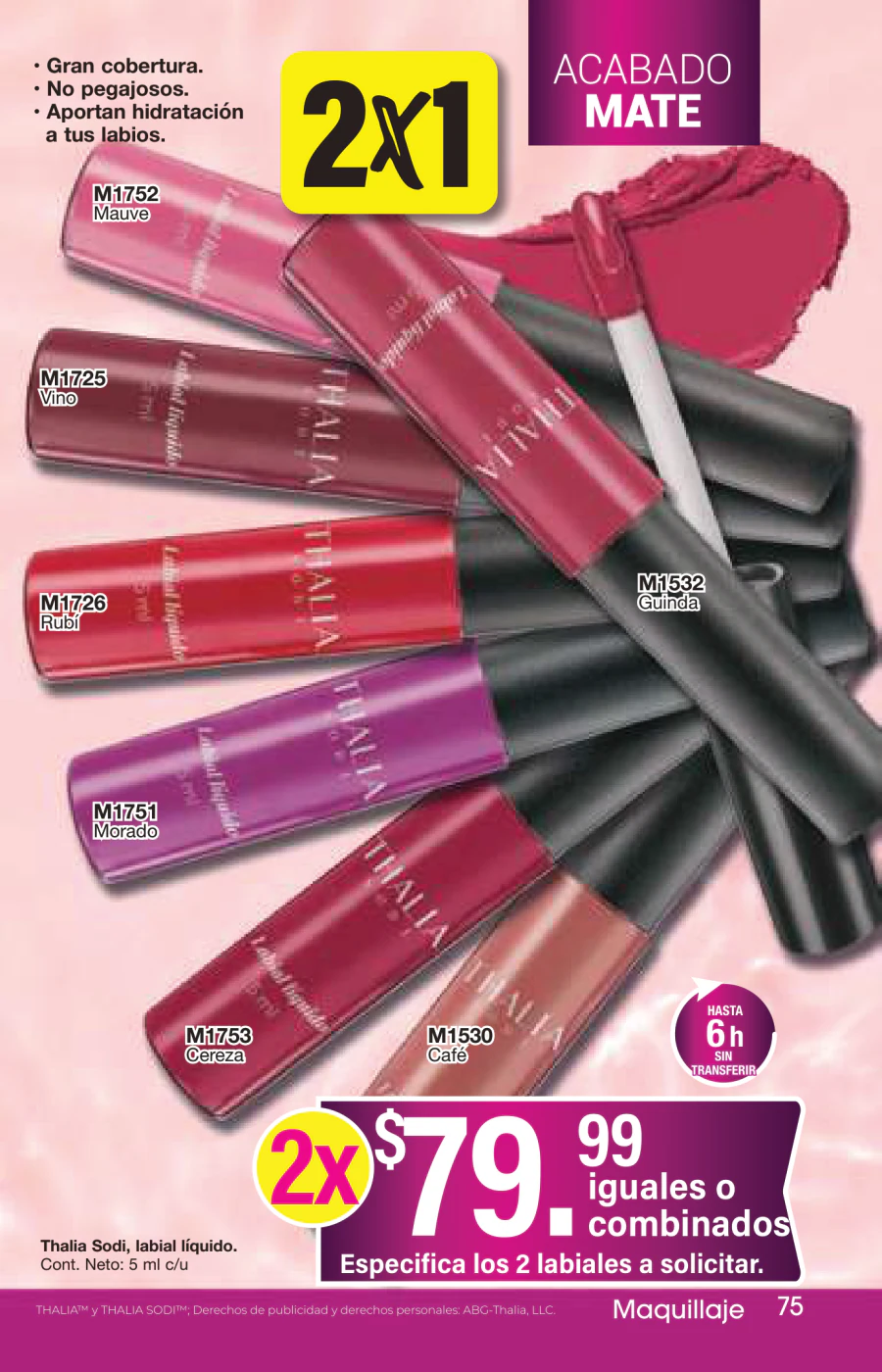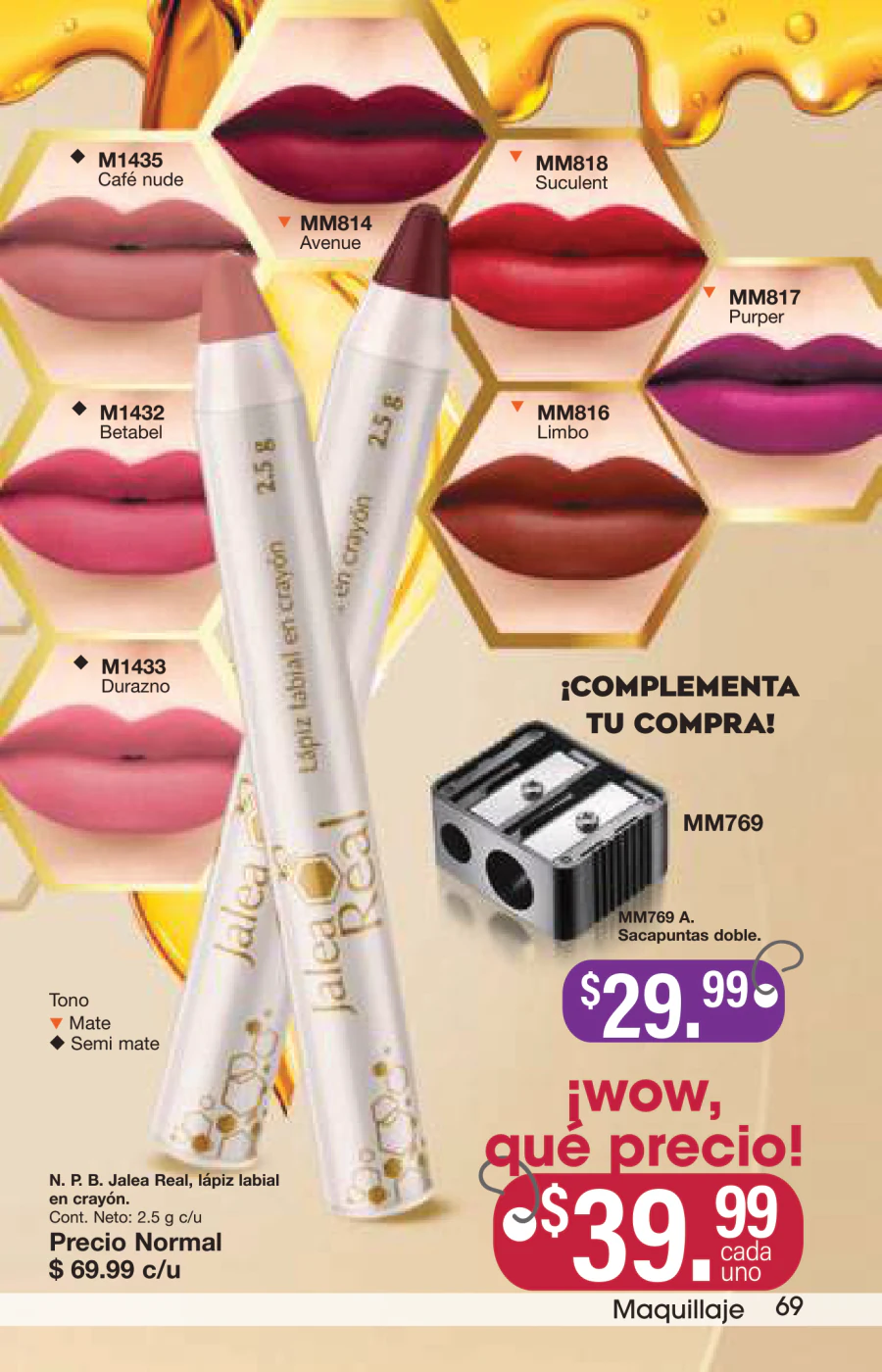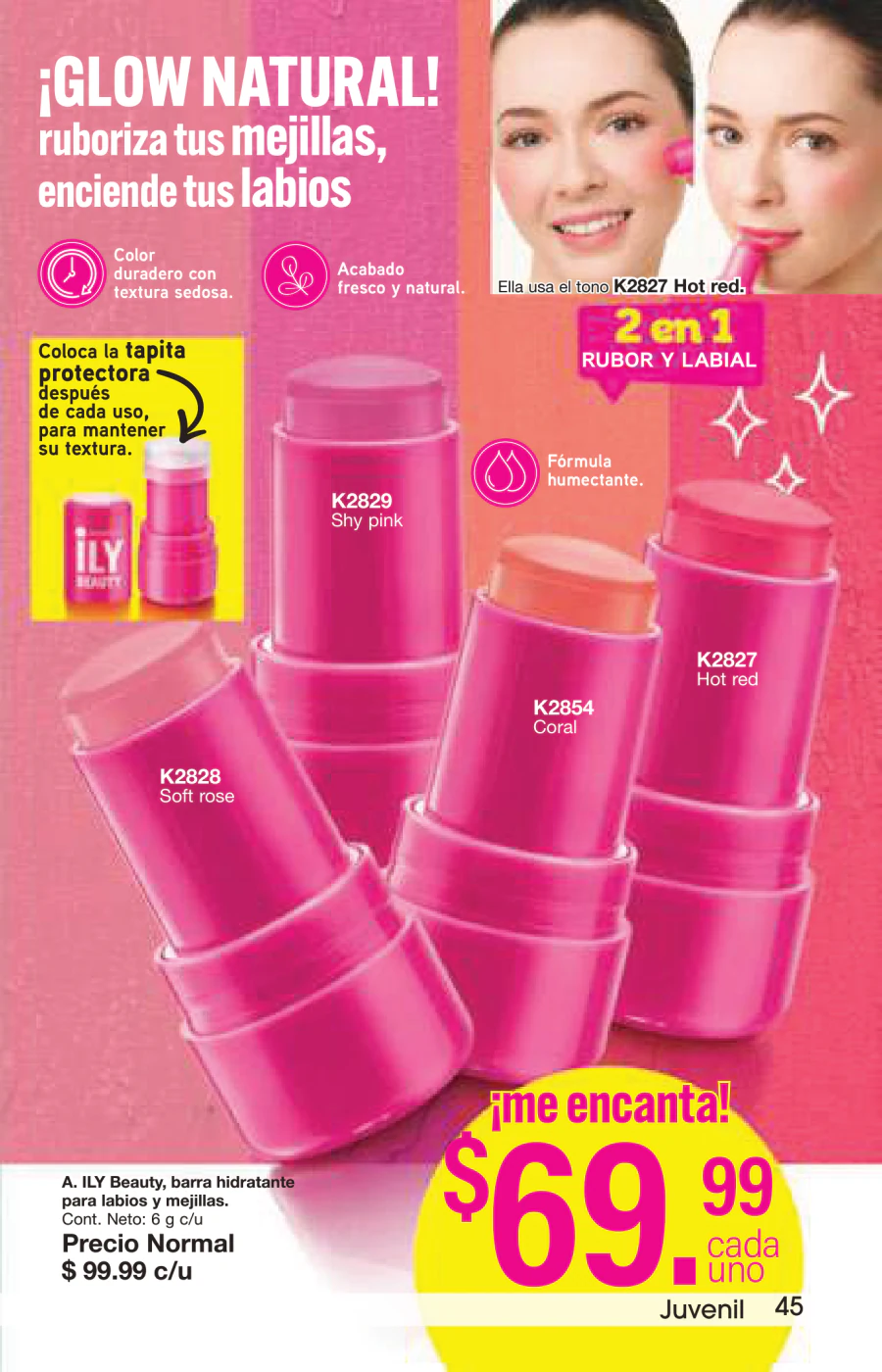 - Lápiz labial para nutrir tus labios; duración hasta 8 horas; labios resecos; labial mate; “peel off” etc. (Págs. 6, 7, 13, 15, 22, 23, 32, 39.)