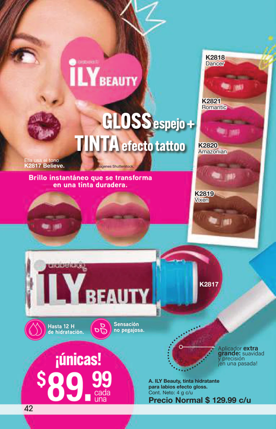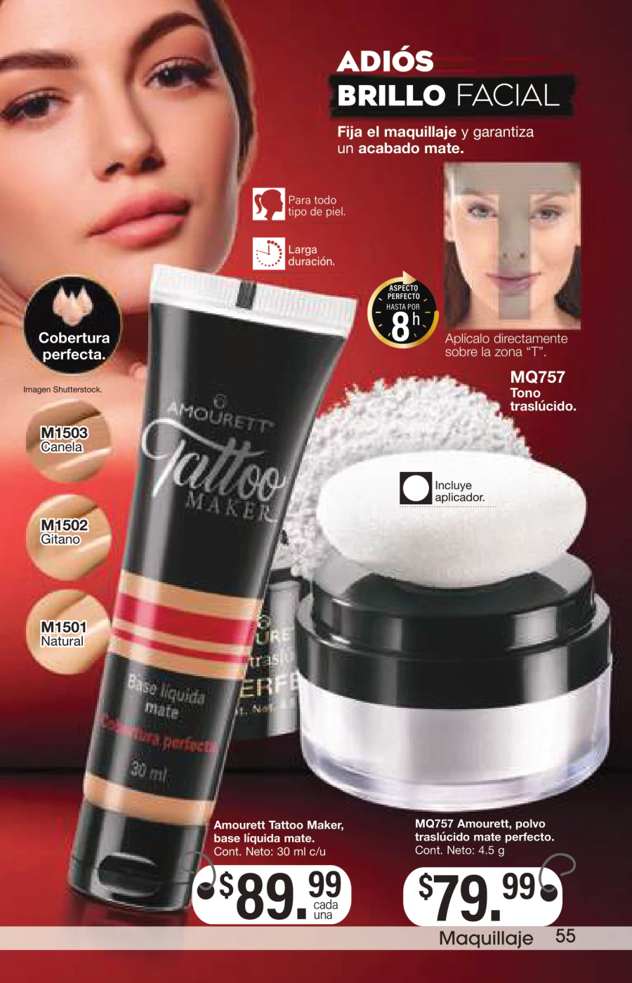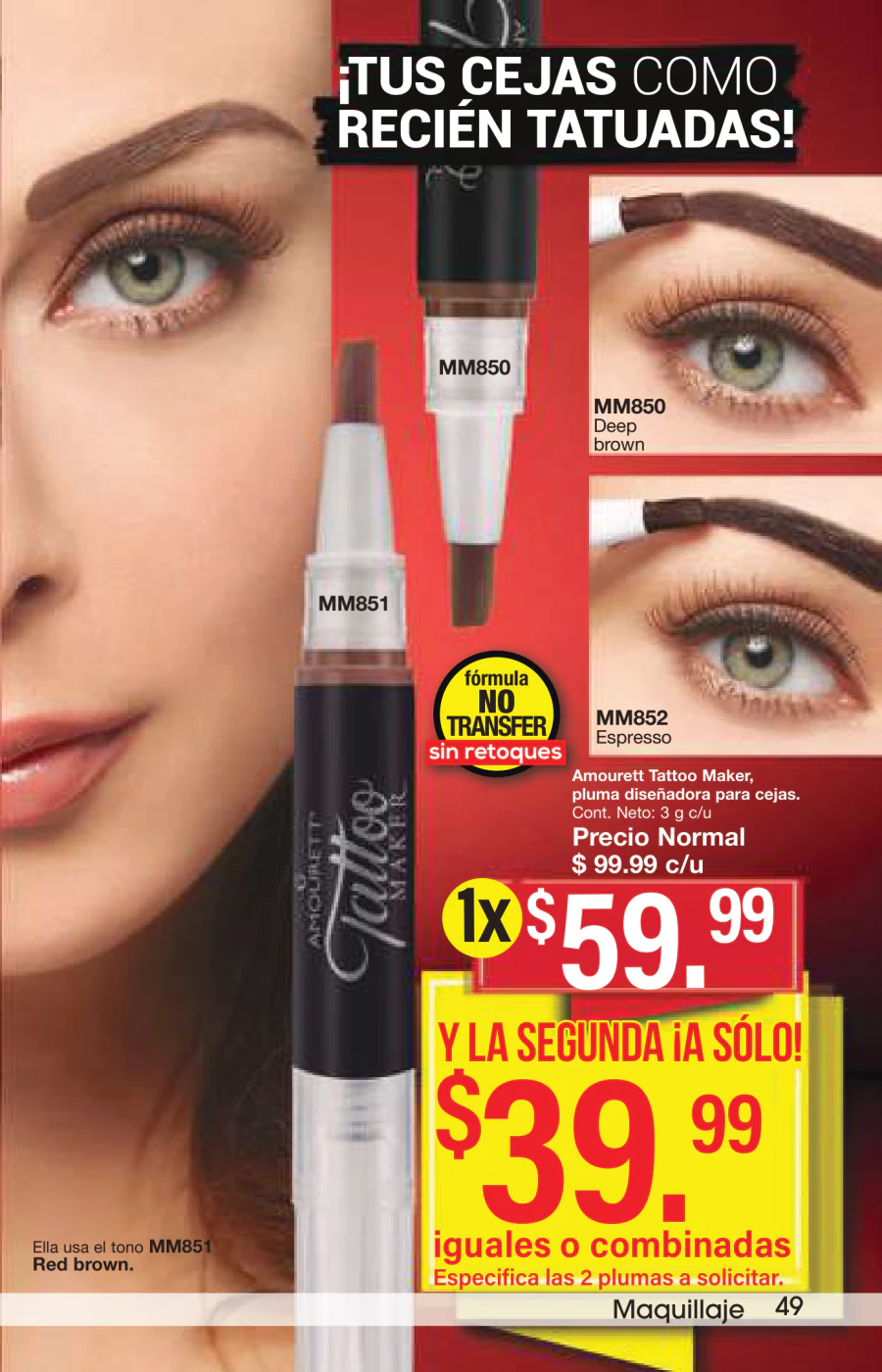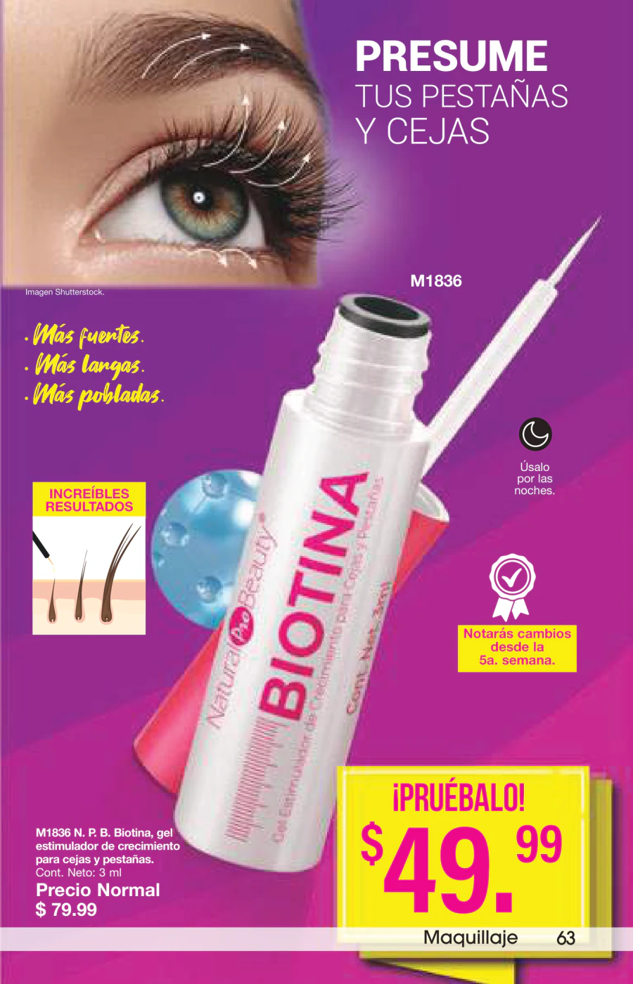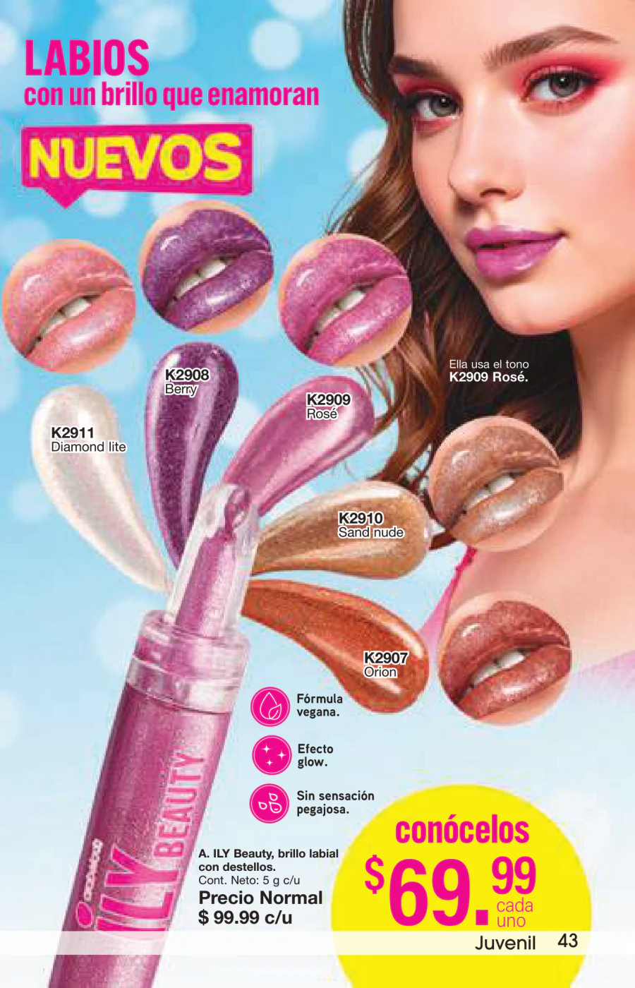 - Lápiz labial para nutrir tus labios; duración hasta 8 horas; labios resecos; labial mate; “peel off” etc. (Págs. 6, 7, 13, 15, 22, 23, 32, 39.)