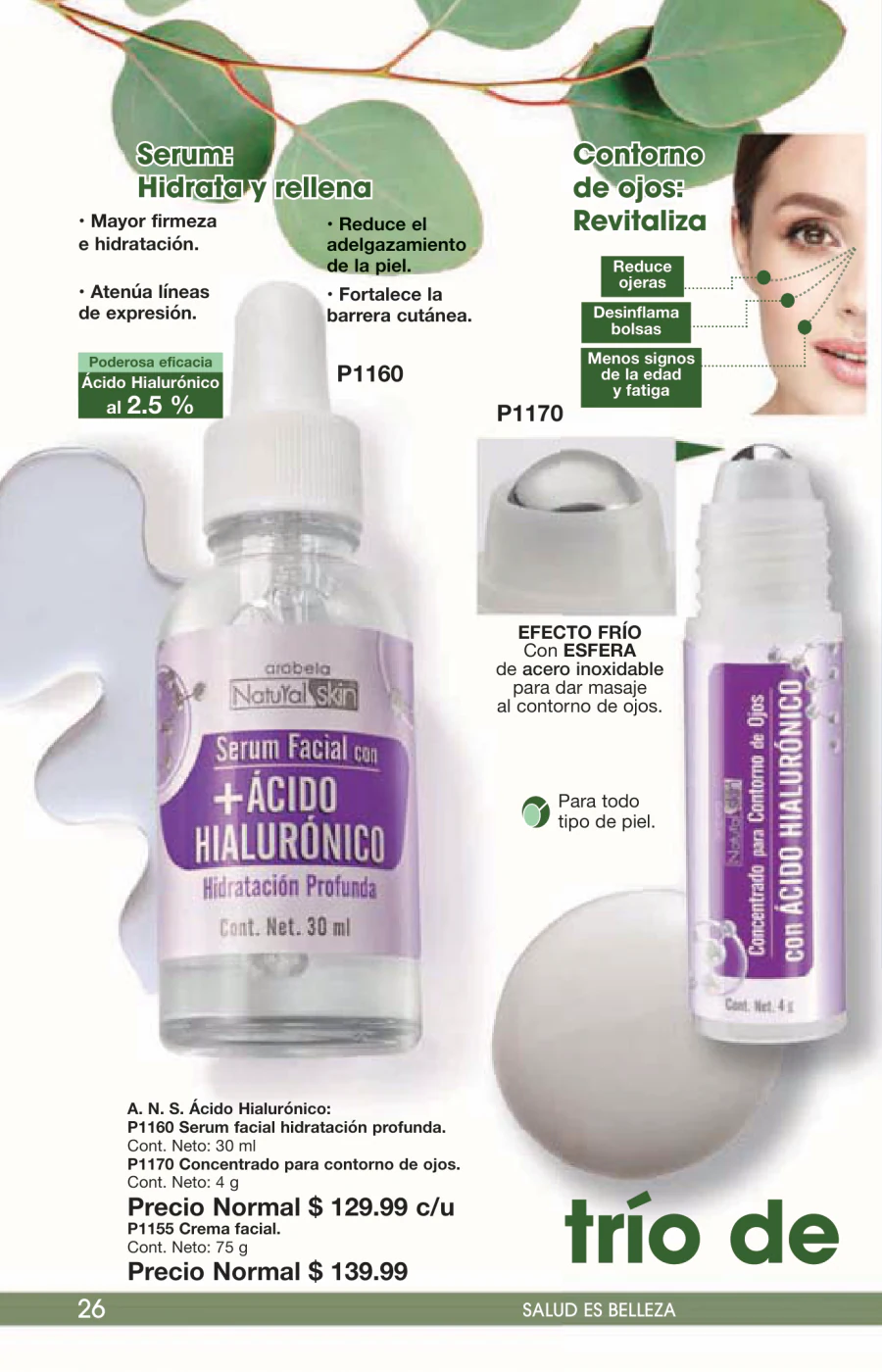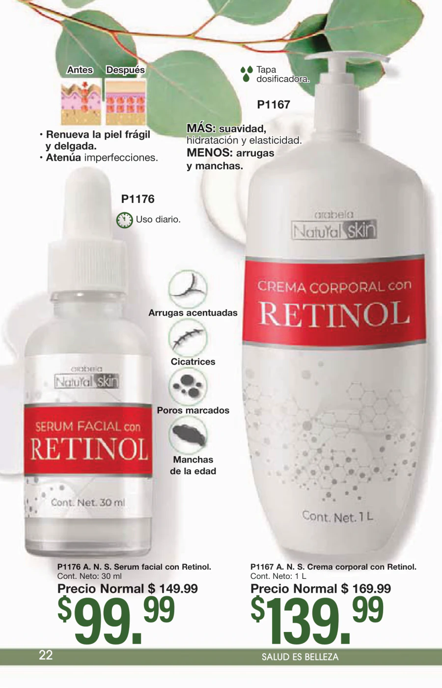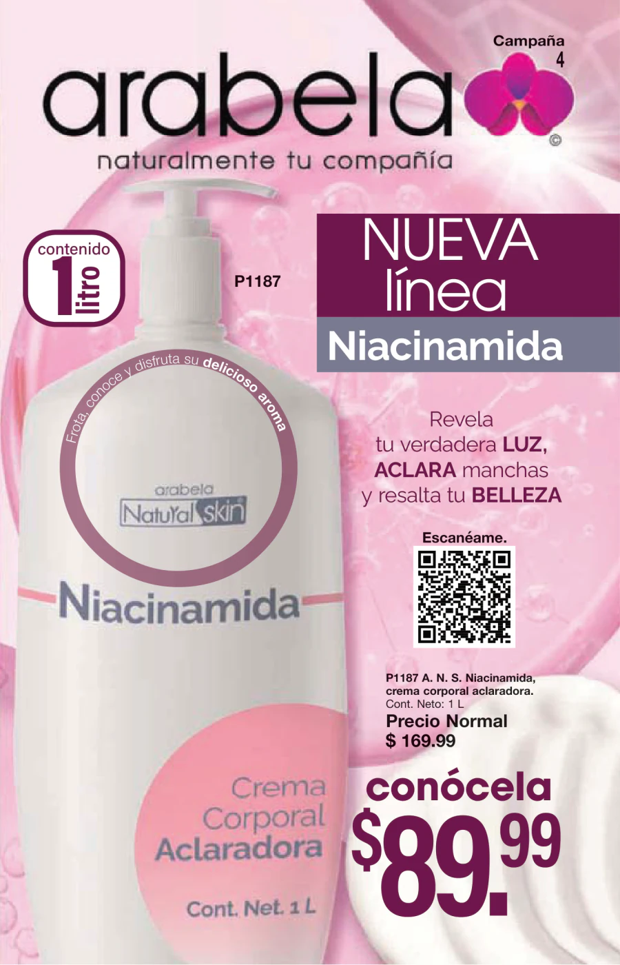 ¿Cómo quieres llegar a tu vejez? Si es con tu piel hidratada, sin marcas de expresión o manchas, Arabela en esta nueva propuesta de campaña 4 2026 México, te trae nuevos productos para mejorar el aspecto de tu piel (cuerpo y rostro). En este nuevo catálogo, podrás observar los productos; sus distintas propiedades, beneficios, para lo que tú realmente necesitas. Arabela no sólo piensa en tu bienestar físico, sino que también piensa en tu bolsillo, por este motivo, los productos que ofrece están a un precio sumamente accesible, desde incluso los $49,99. Algunos de estos productos incluyen: