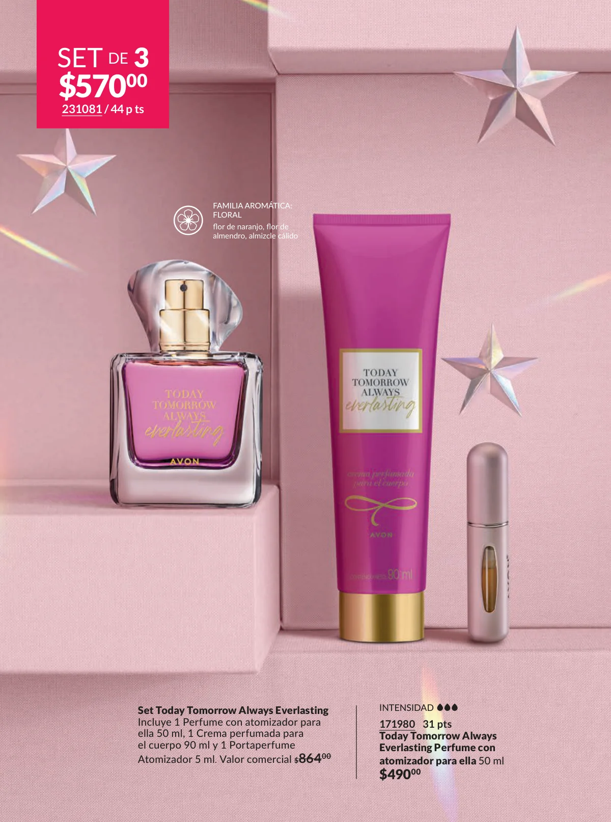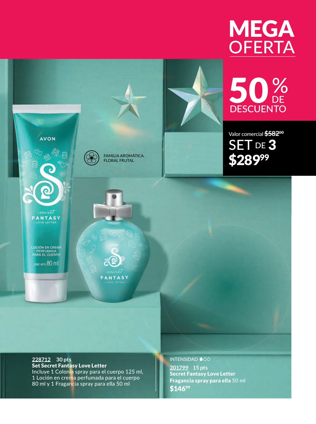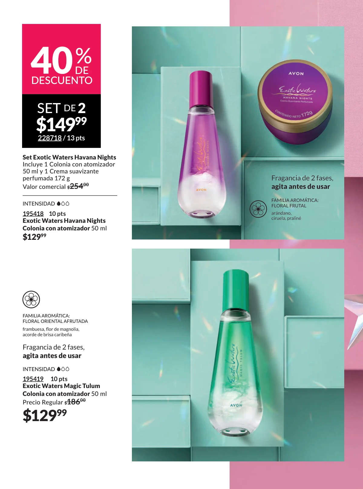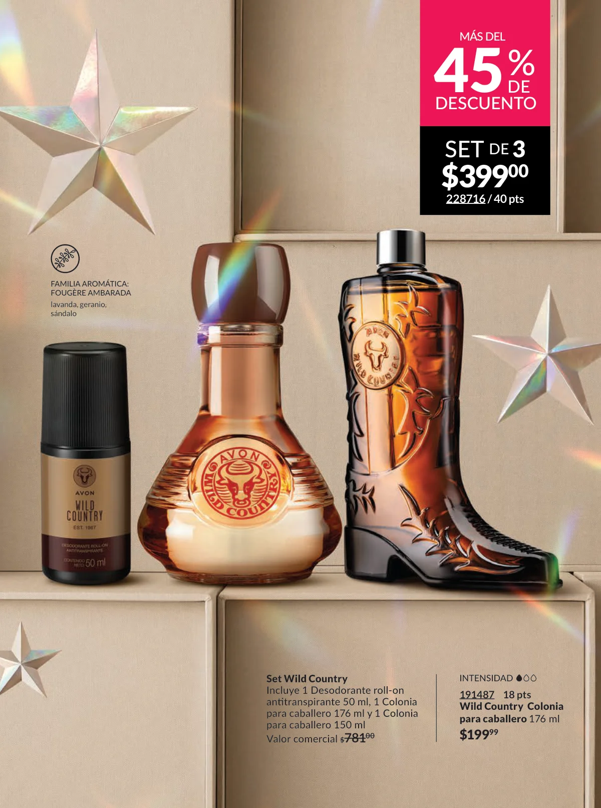 Algo imperdible en este catálogo Avon campaña 17 2025 México es las promociones de sets de 3 productos. No puedes dejar de incluir en tu pedido alguna de las maravillosas muestras de colonias, sprays, cremas perfumadas o labiales de las mejores marcas de la casa: Sweet Honesty, Exotics Waters o Courage para ellos.