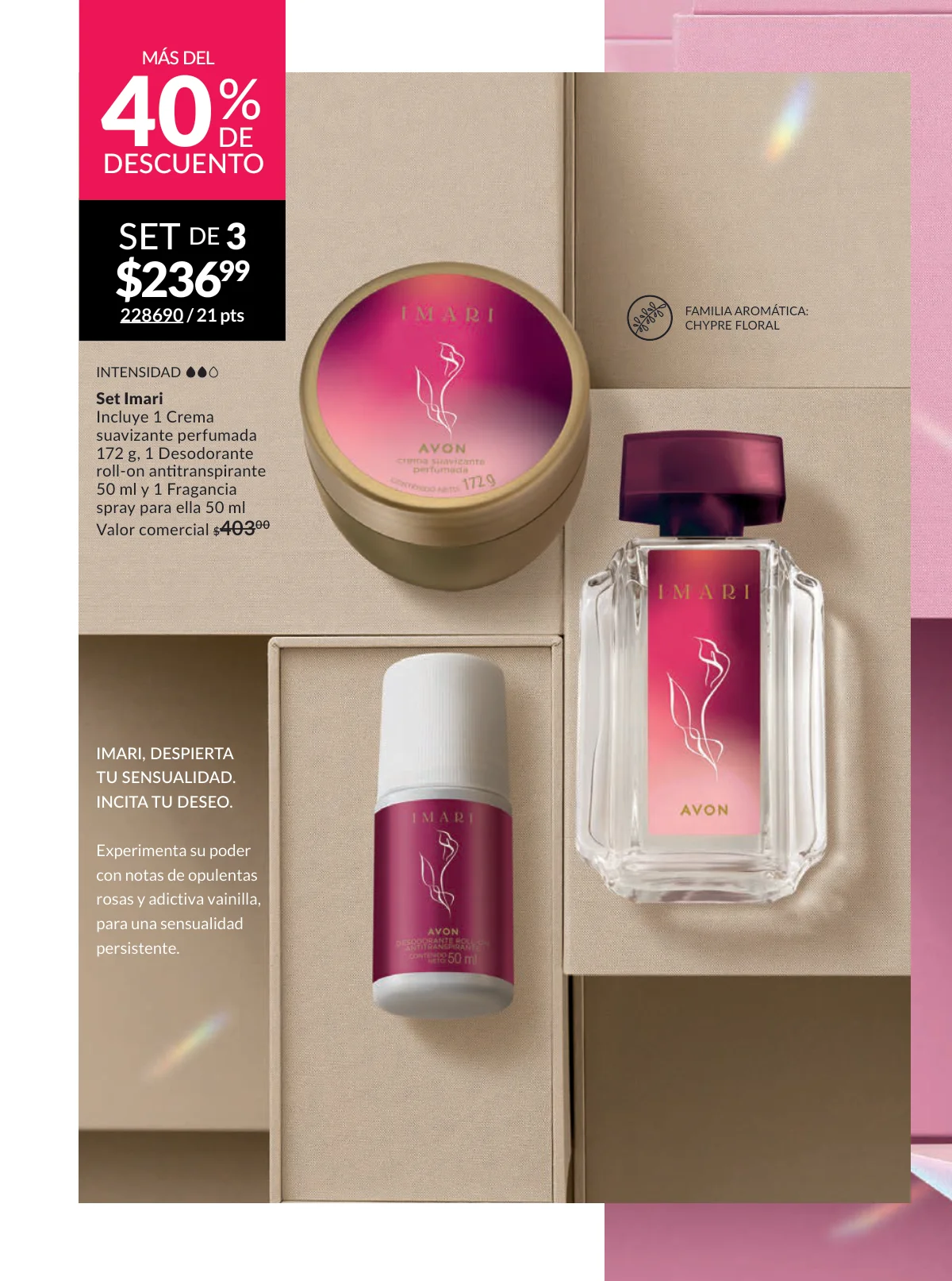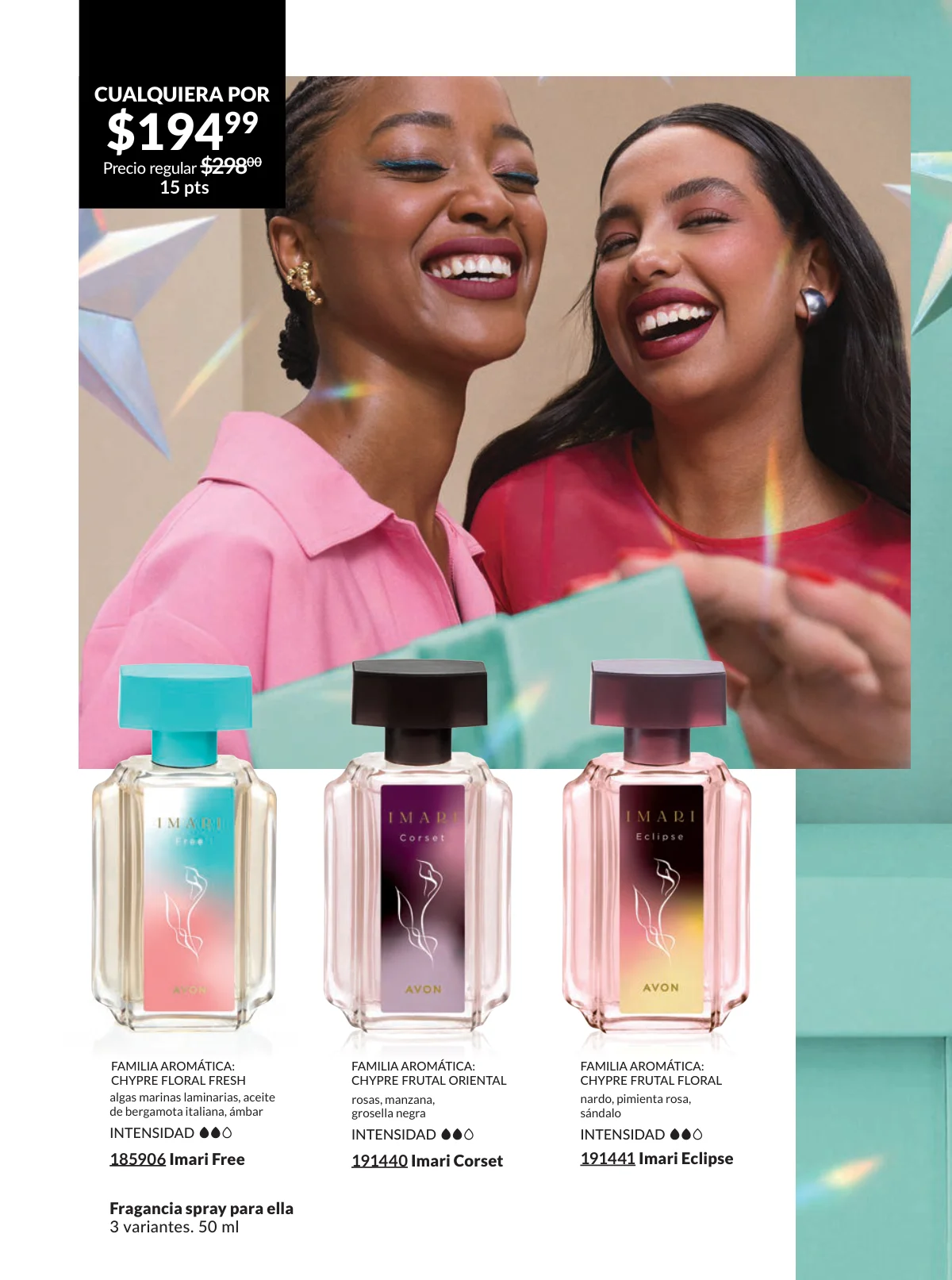 Absolute en su coqueta botella cuadrada está a un precio único para esta campaña 17 2025, al igual que Imari que viene en su presentación fragancia en rollete y colonia con atomizador.