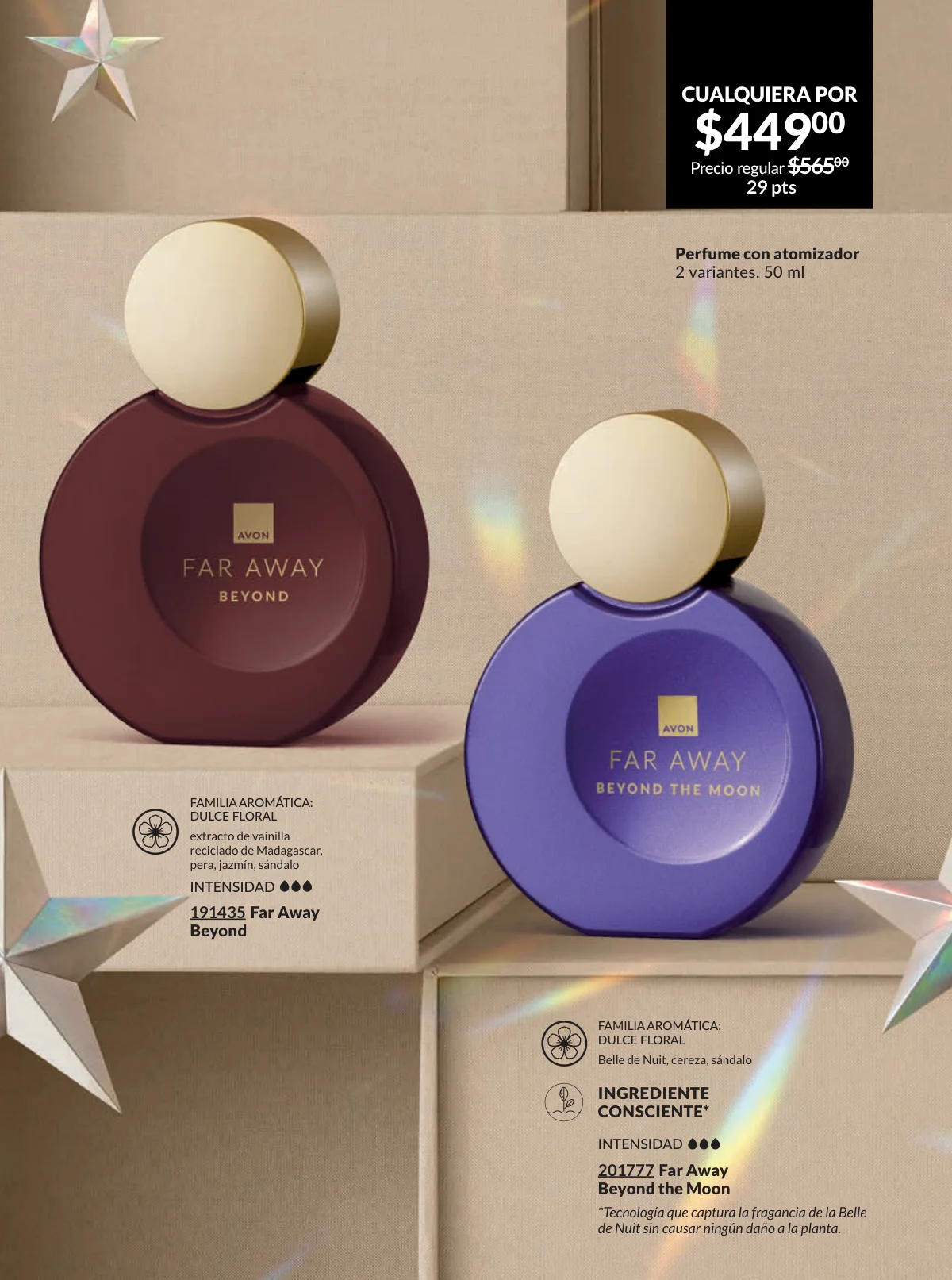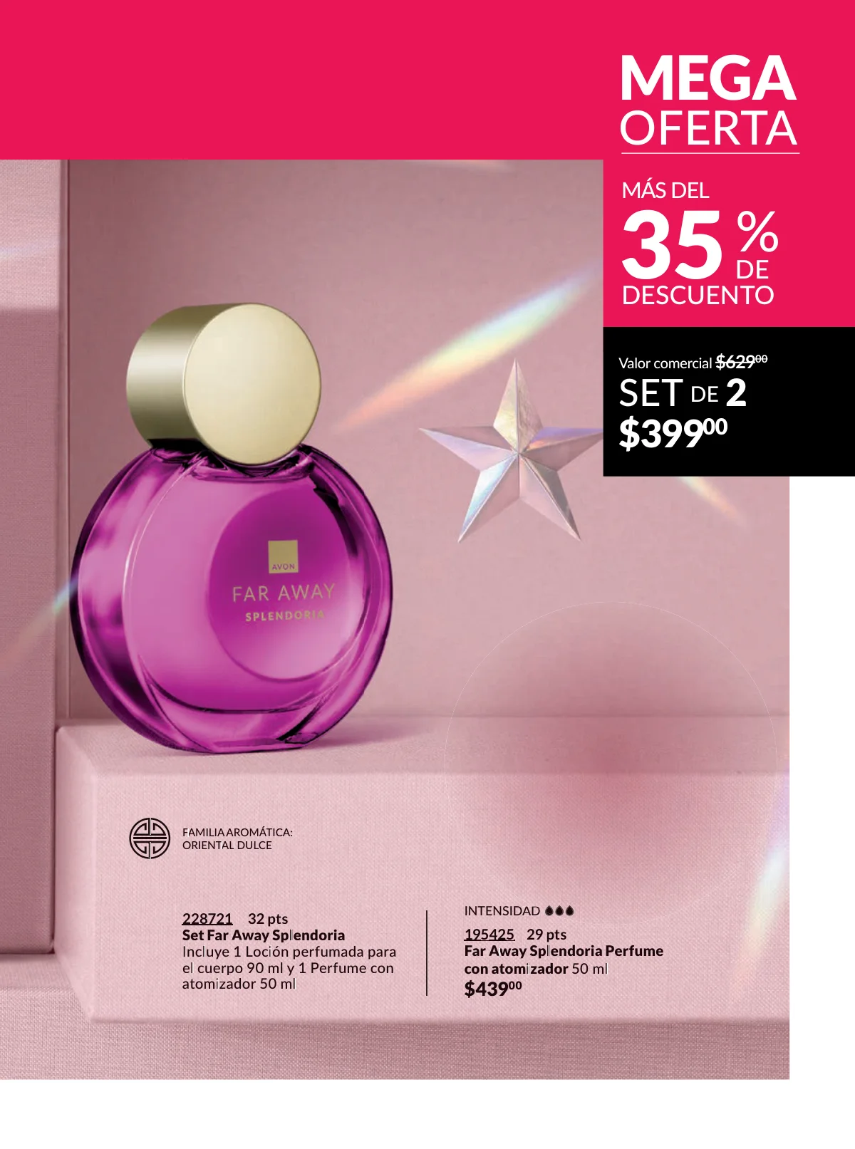 Las fragancias de Avon son una verdadera joya. Este mes las mejores están presentes, pero nos enfocamos en una principalmente “Far Away” de Splendoria. Una de las mezclas más exóticas que ahora también puedes llevar a un precio espectacular y en presentaciones de eau de parfum, spray o crema perfumada.