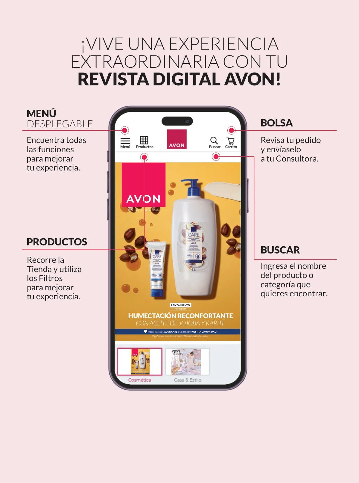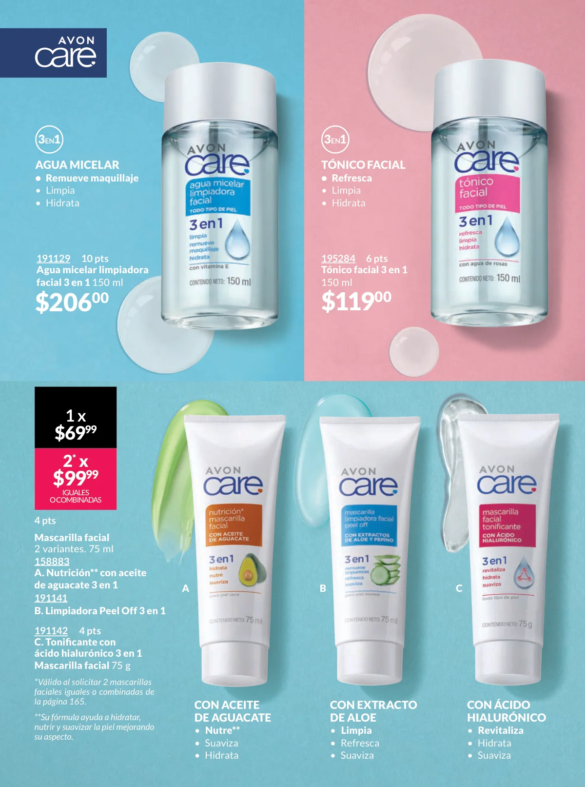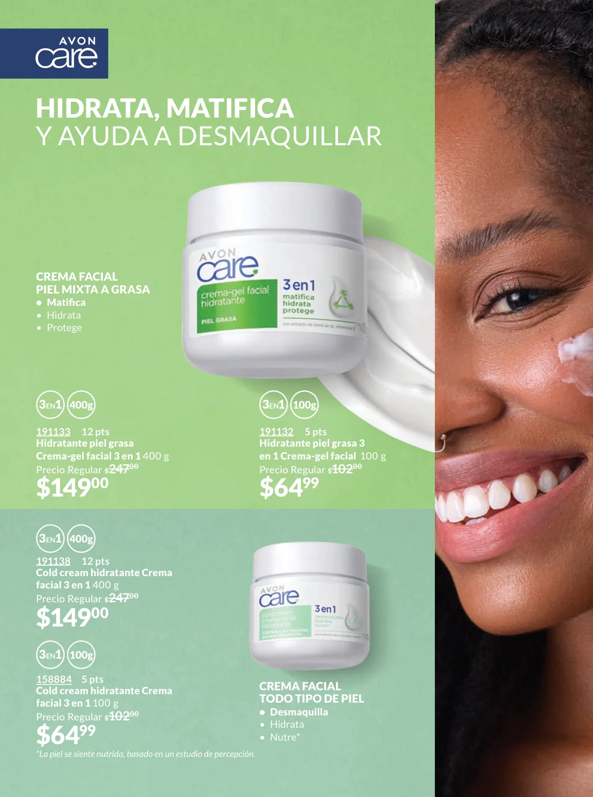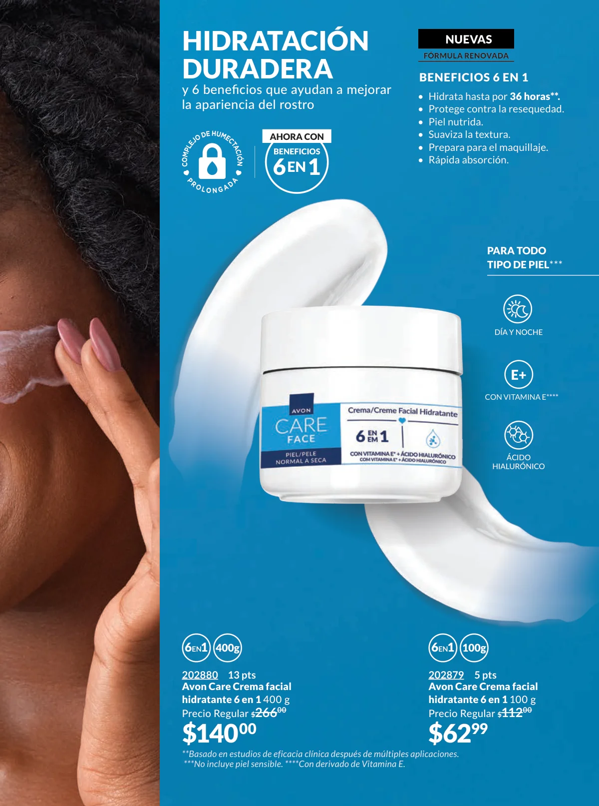El cuidado de la piel es algo que nos resulta imprescindible. En esta catálogo Avon campaña 3 2026 México te ofrece los mejores tratamientos para el cuidado de la piel del rostro. Cremas hidratantes, reafirmantes o para reducir las líneas de expresión. Queremos que des lo mejor de ti y tu aspecto renovado te ayudará siempre a ello.