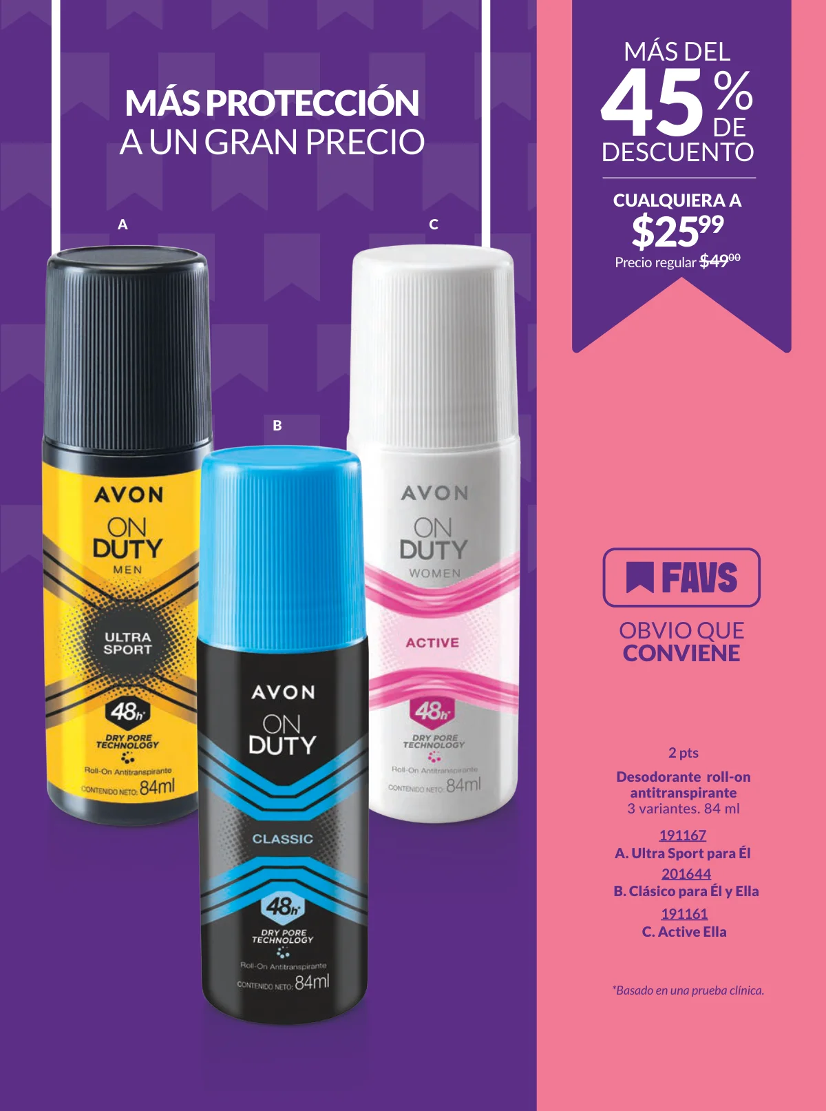 No puedes perderte disfrutar de toda una línea de productos, con colonias, cremas y desodorantes, que te hará sentir fresco y con la mejor actitud para enfrentar la vida. Para grandes y chicos Avon es siempre tu mejor elección.