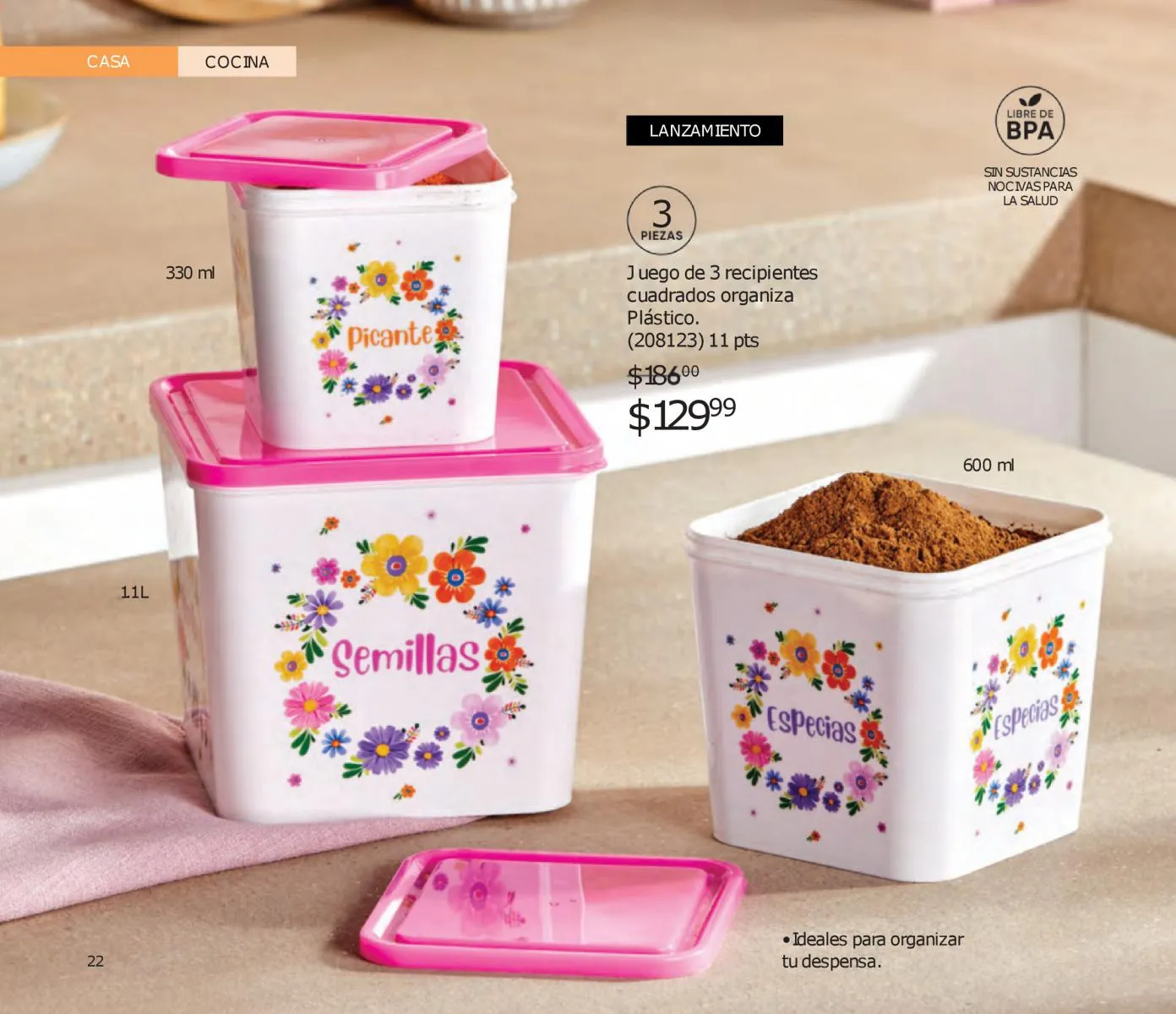 Empezamos a explorar este catálogo Avon Fashion & Home y lo hacemos con este hermoso producto para tu cocina. La nueva línea de flores de “Vision Tec” viene con productos fabulosos elaborados en un material con efecto metálico que nos permite mirar el contenido a través de su atractivo estampado floral.