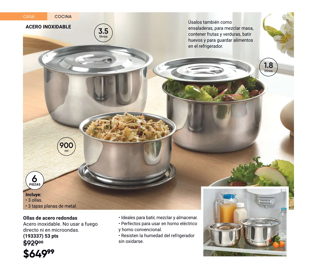 Las baterías de peltre son una de las más útiles incorporaciones de este catálogo. También encontrarás esta temporada recipientes para el horno de la línea Innova Ceramic, perfecta para hornear y servir, todo en la misma cacerola que, por cierto, son de un diseño espectacular.