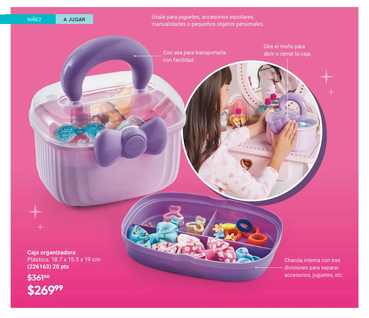 No podemos dejar pasar esta oportunidad para resaltar todo lo que Avon trae para tus niños. Hay una variedad de vasos con tapa de personajes, contenedores para su merienda, tazones con cubiertos, toallas, colonias, juguetes, juegos de arte y mucho más para consentir a tus hijos.