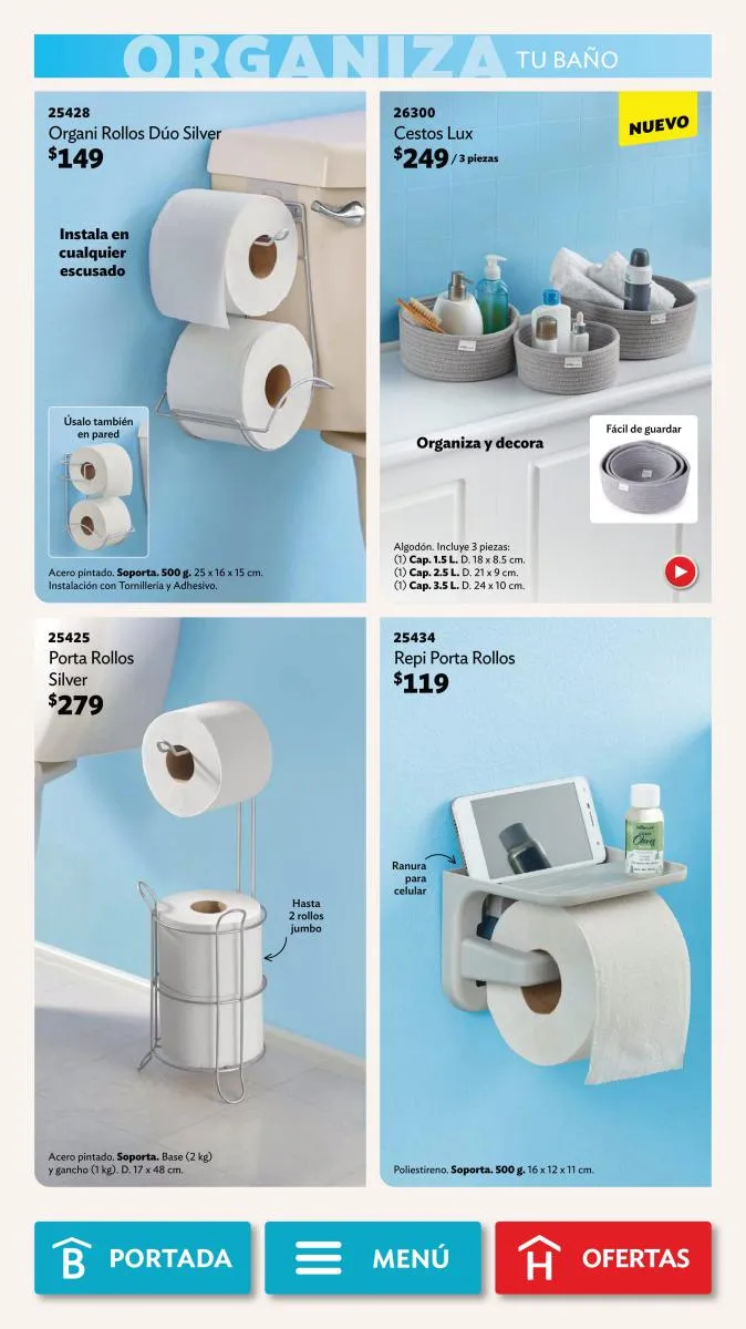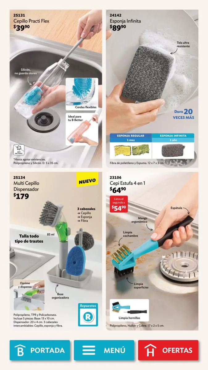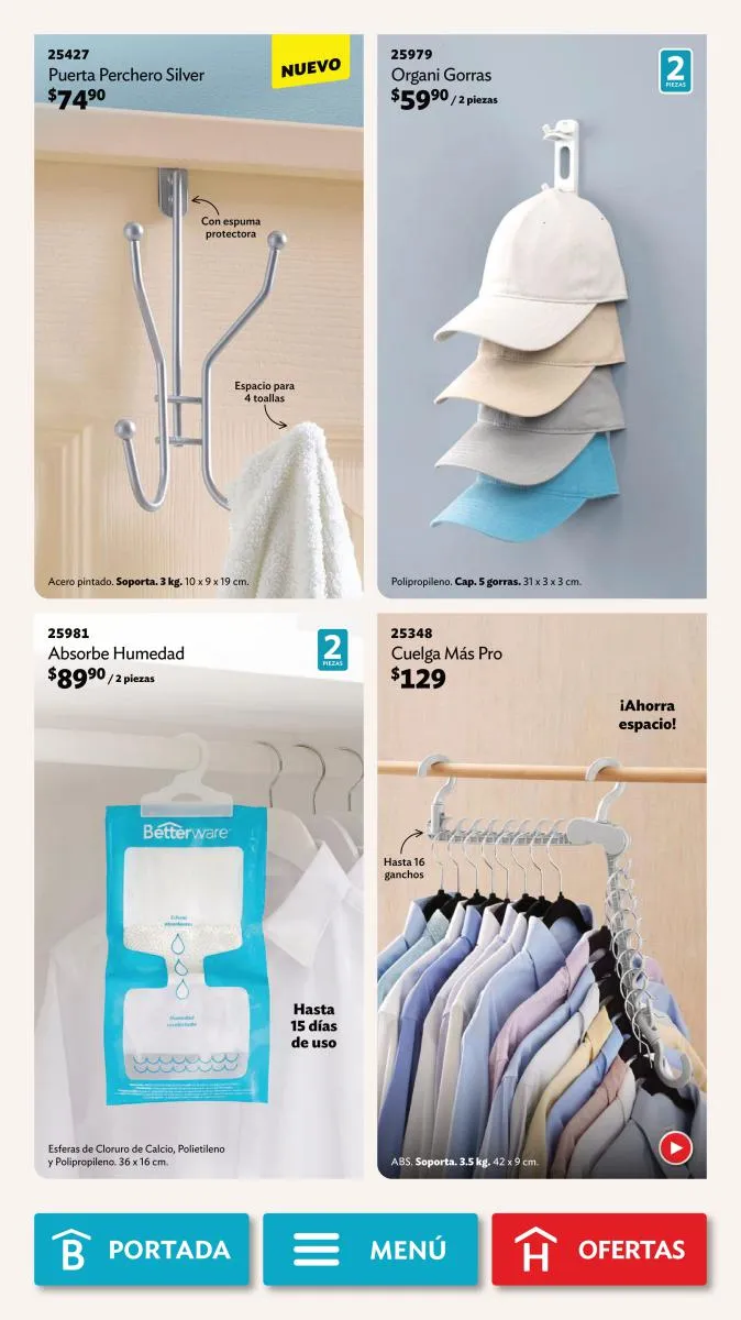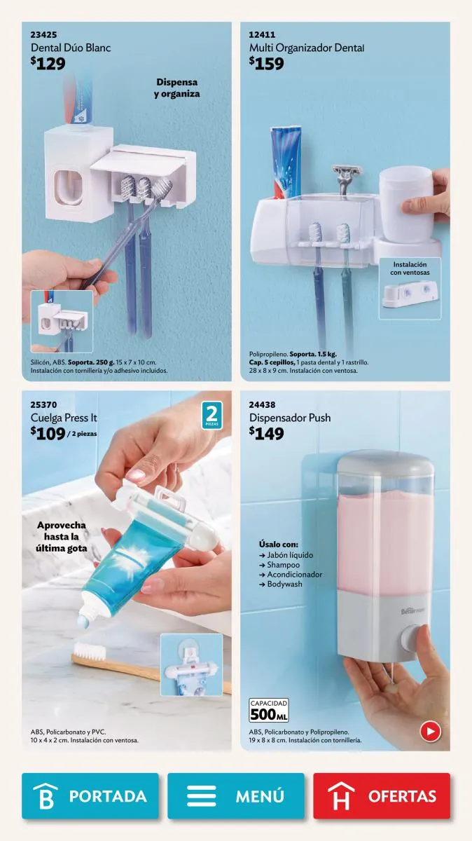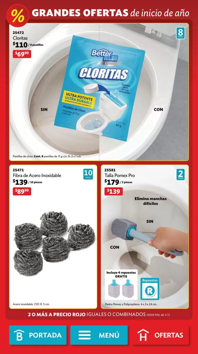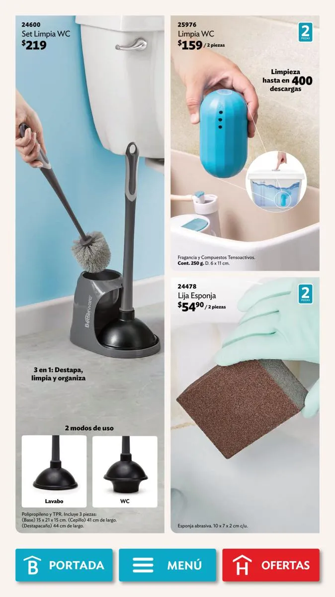 Desde la página 102 puedes encontrar productos de todas las categorías a precios realmente bajos. No te pierdas la diversidad de productos (toallero, spray para el baño, limpialentes y muchos más) a un 40%, 35% o hasta 25% de descuento.