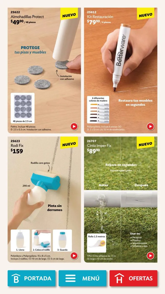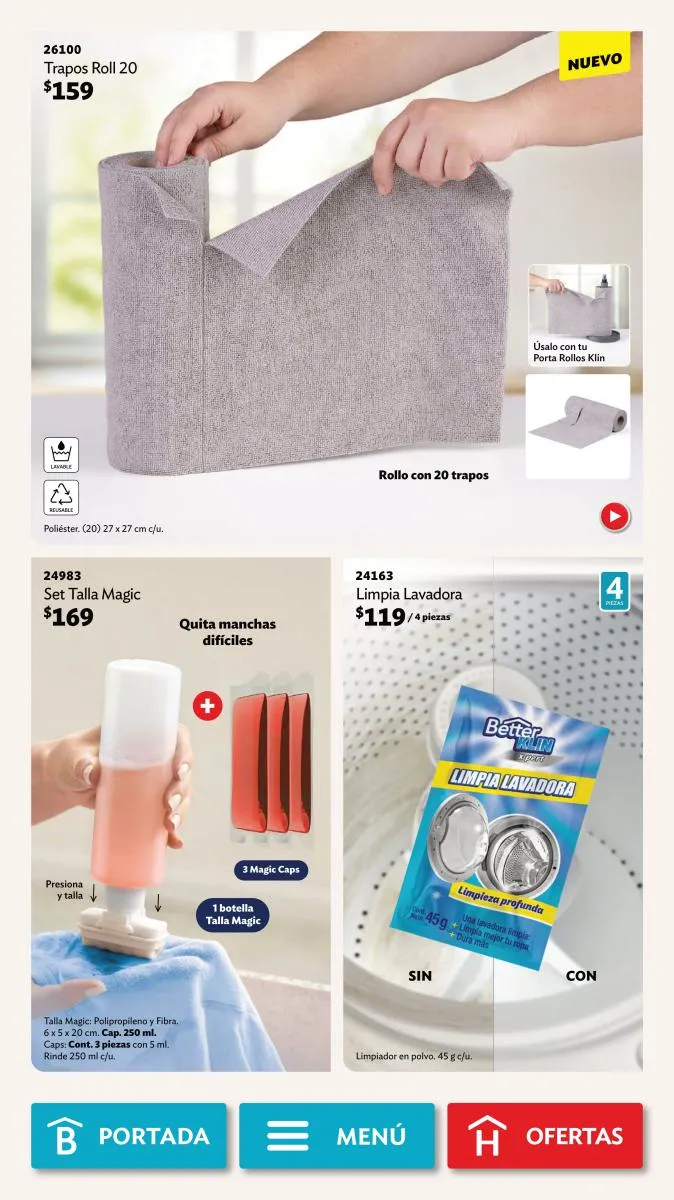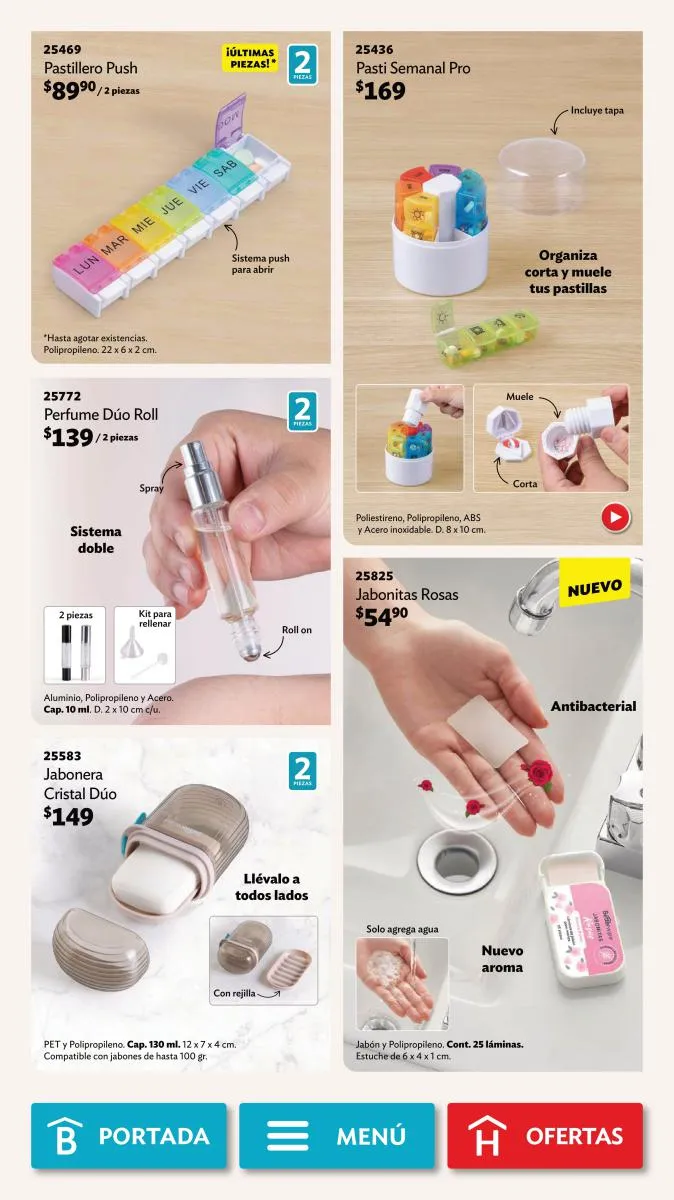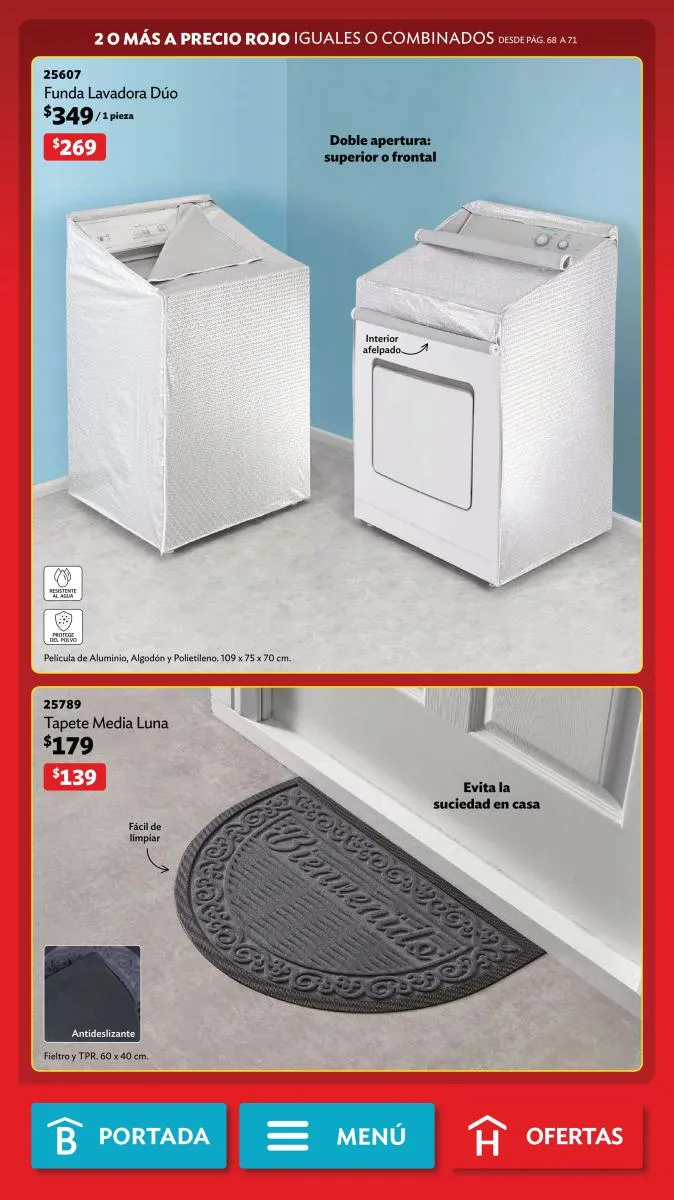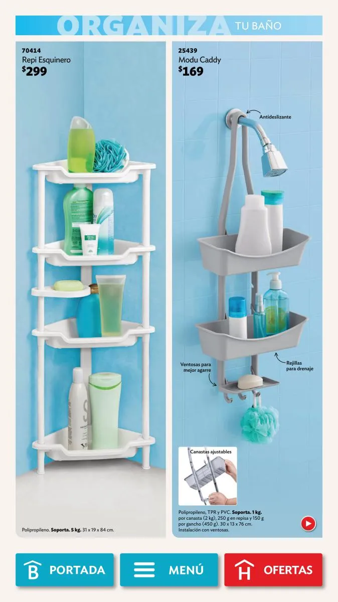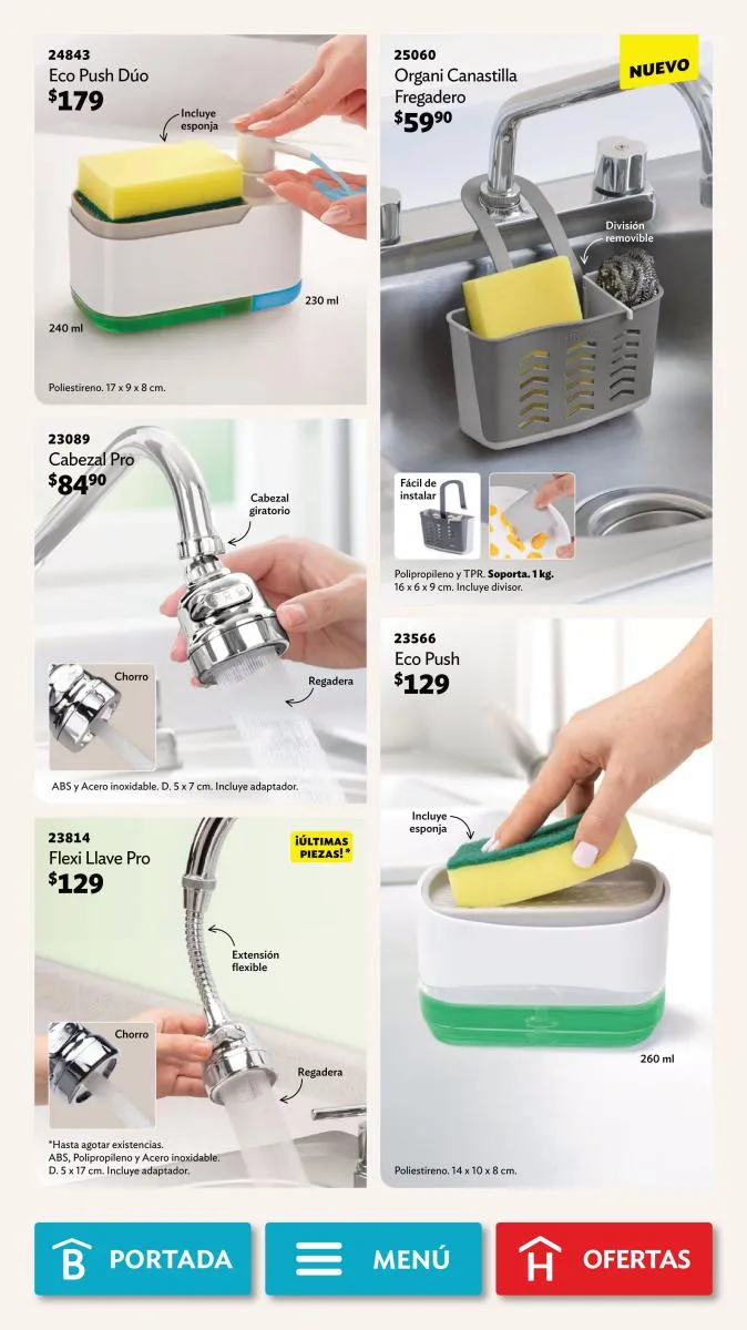 Desde la página 102 puedes encontrar productos de todas las categorías a precios realmente bajos. No te pierdas la diversidad de productos (toallero, spray para el baño, limpialentes y muchos más) a un 40%, 35% o hasta 25% de descuento.