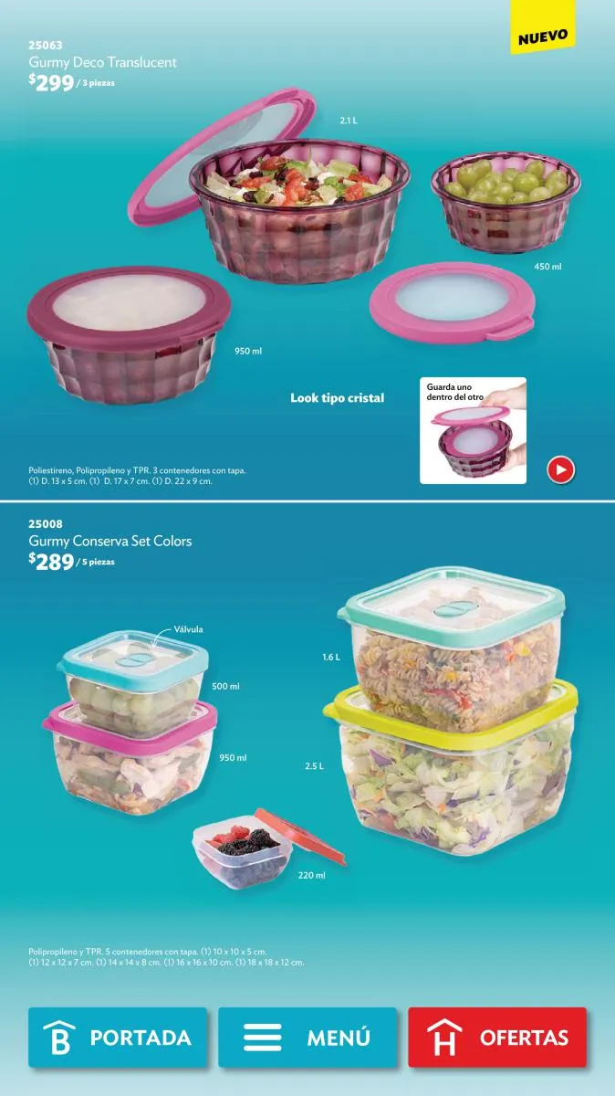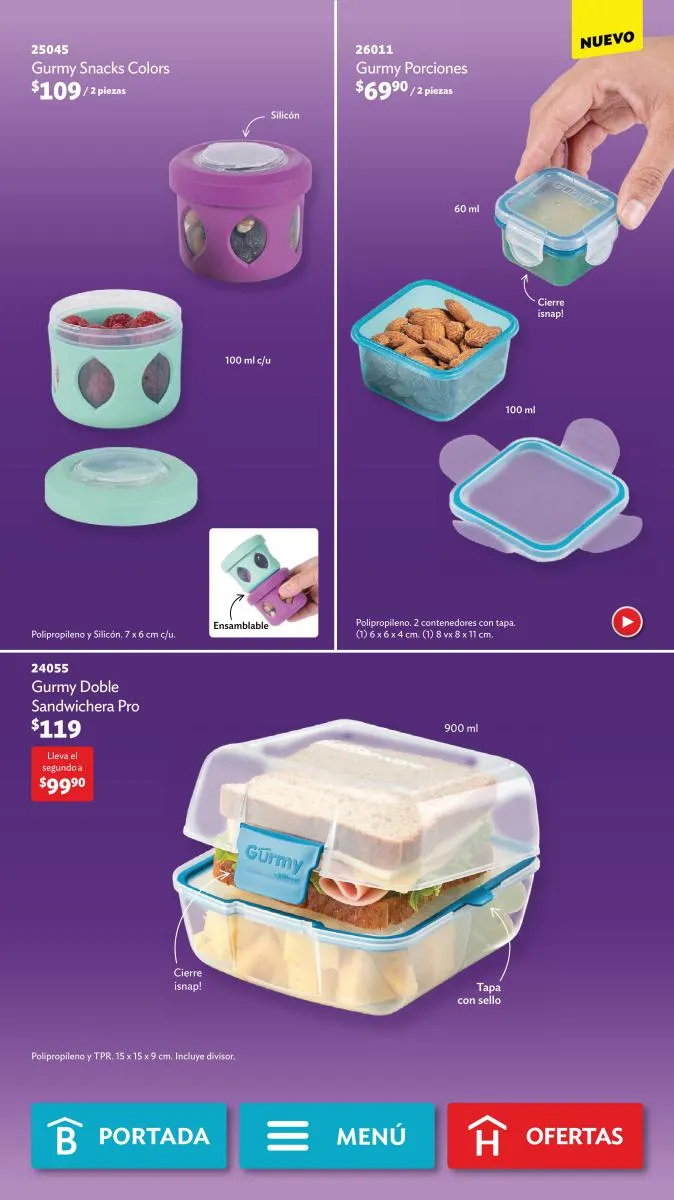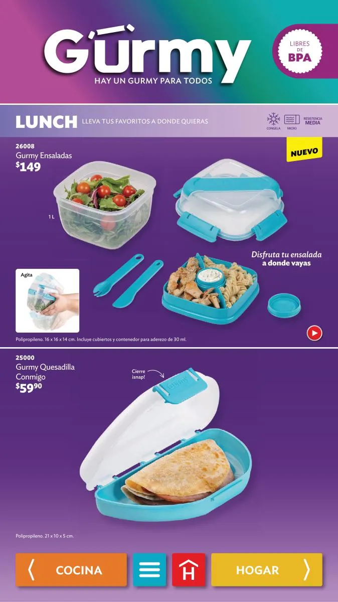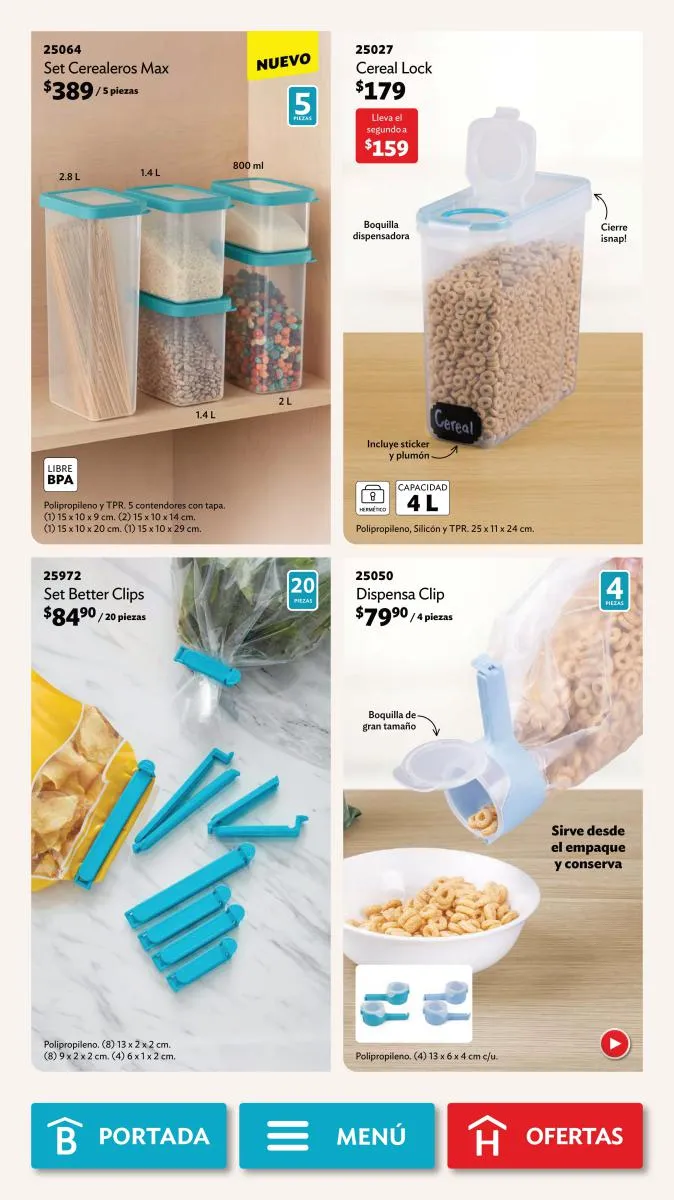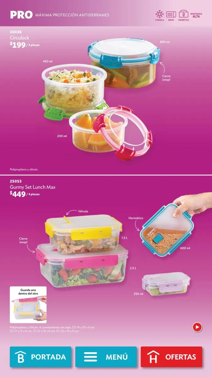 - Todos los contenedores plásticos para almacenar o llevar comida, como el Cereal Dúo o el Lunch Fresh.