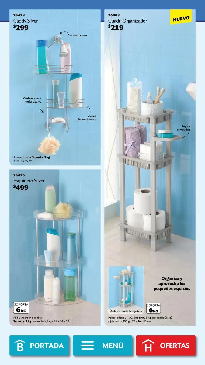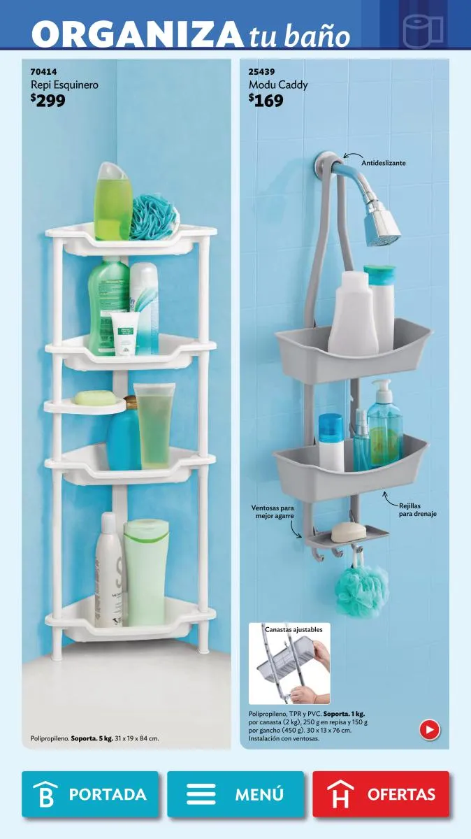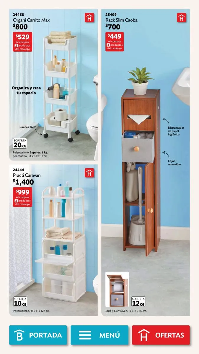Para otras áreas, como el baño, los Practimuebles resultan ideales para ubicar todo lo que allí necesitas. Esta selección de tu revista Betterware te da varias alternativas:
