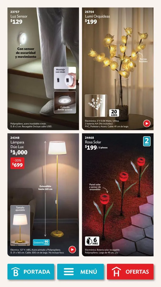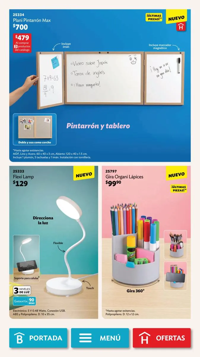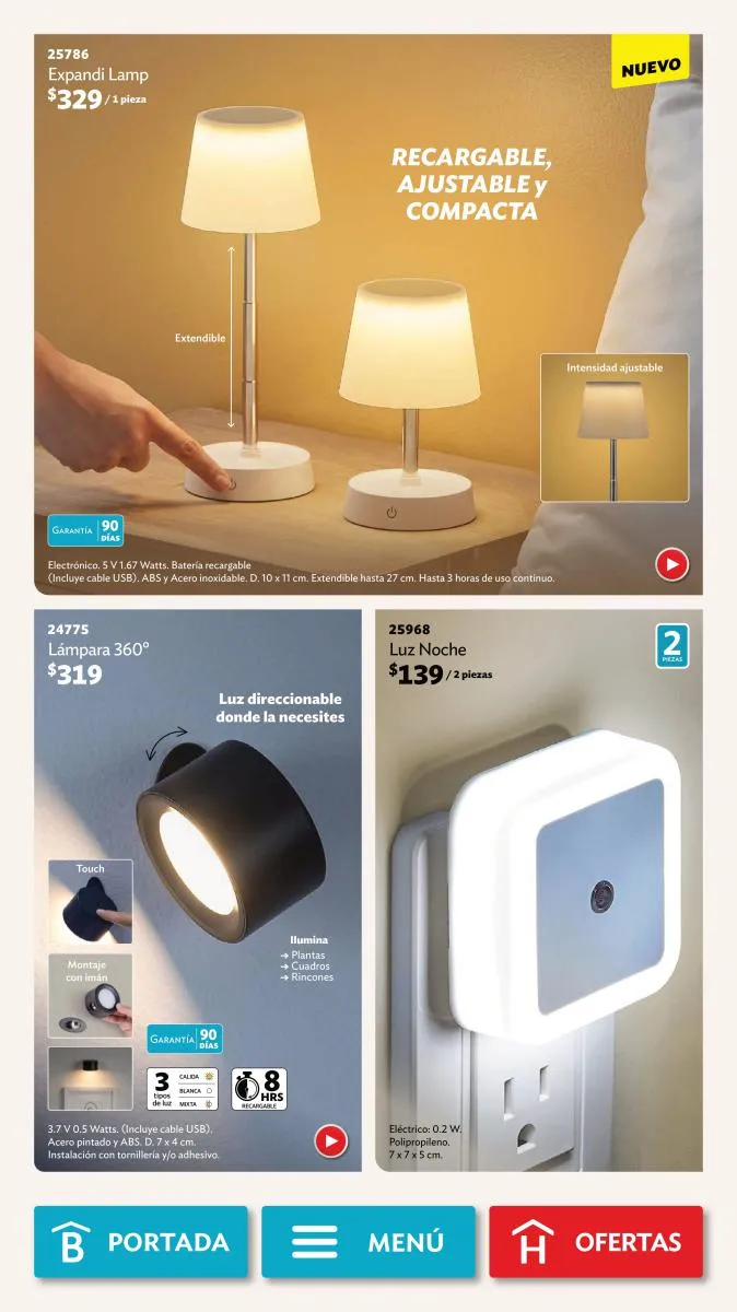 - Y, en luminarias, hay dos opciones, una “Clip Lamp” especial para el escritorio o mesita de noche y la “Lumi Varita” perfecta para decorar y dar luz a un rincón en casa.