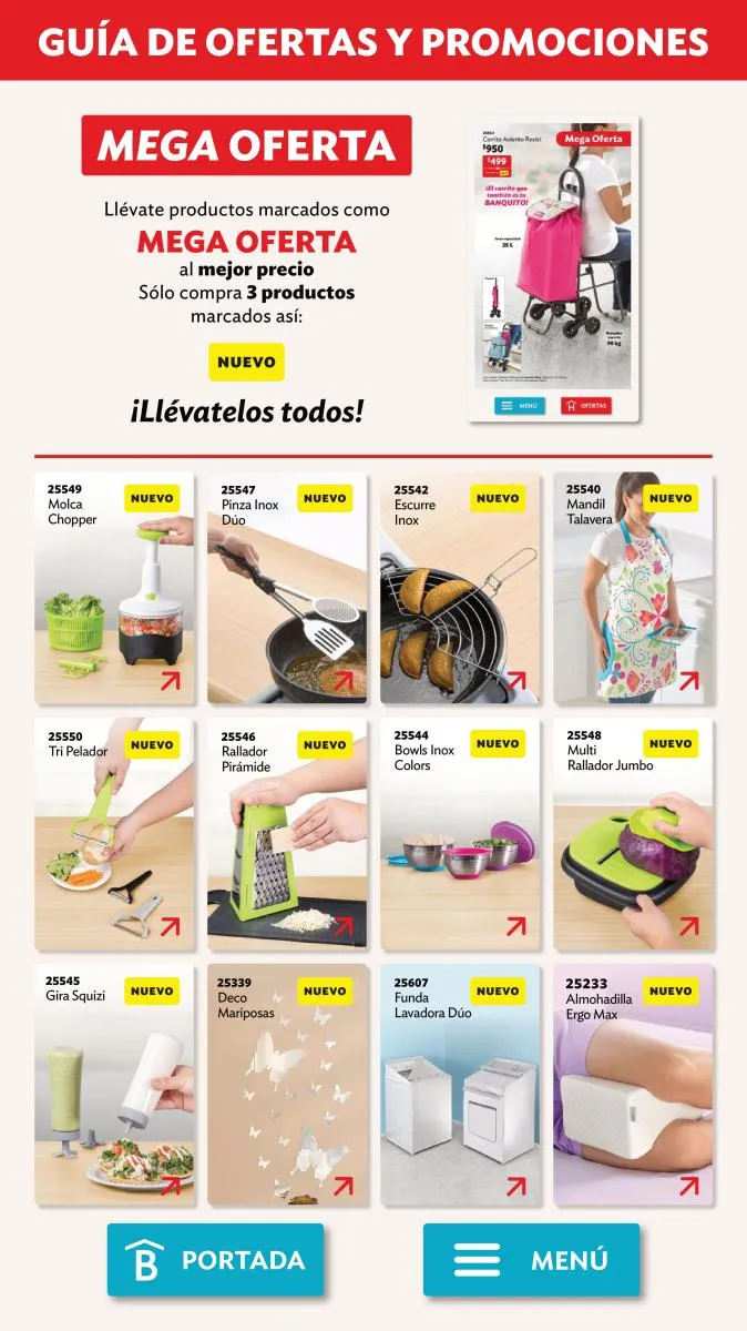 ¿Sabías que con la compra de tres productos de tu catálogo Betterware, puedes llevar algunos con un estupendo descuento? Descubre los precios de artículos como la “Mesita Smart”, el “Asiento Memory Confort” o los Practimuebles como el “Happy Carrito” o la “Eco Repisa Esquinera” desde la página 3 a la 8 de esta revista.