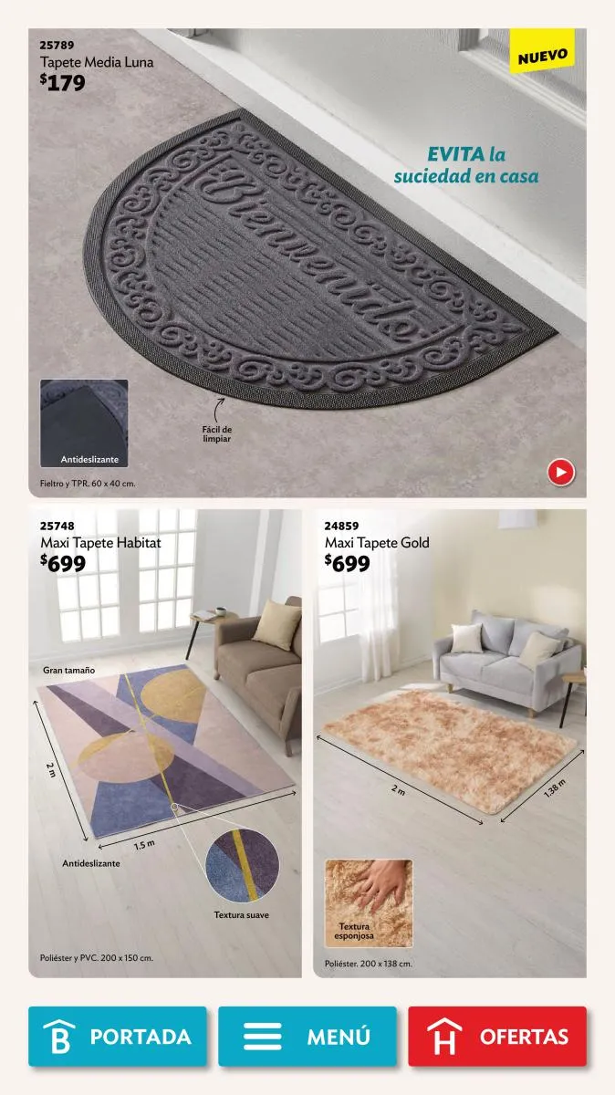 - El nuevo “Tapete Lux” de 1.5 x 1 m y textura suave.