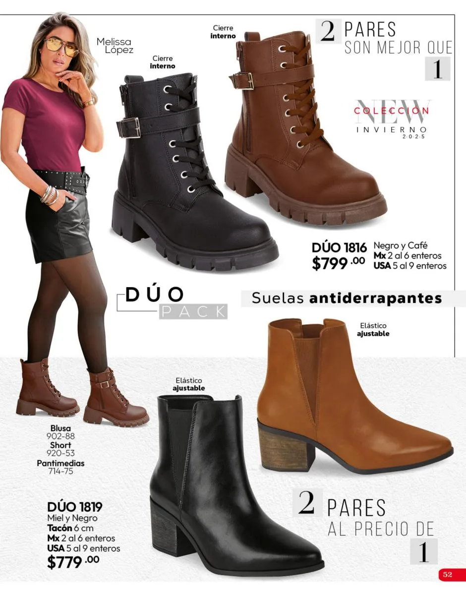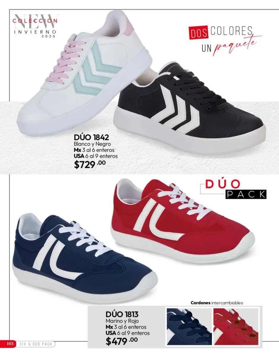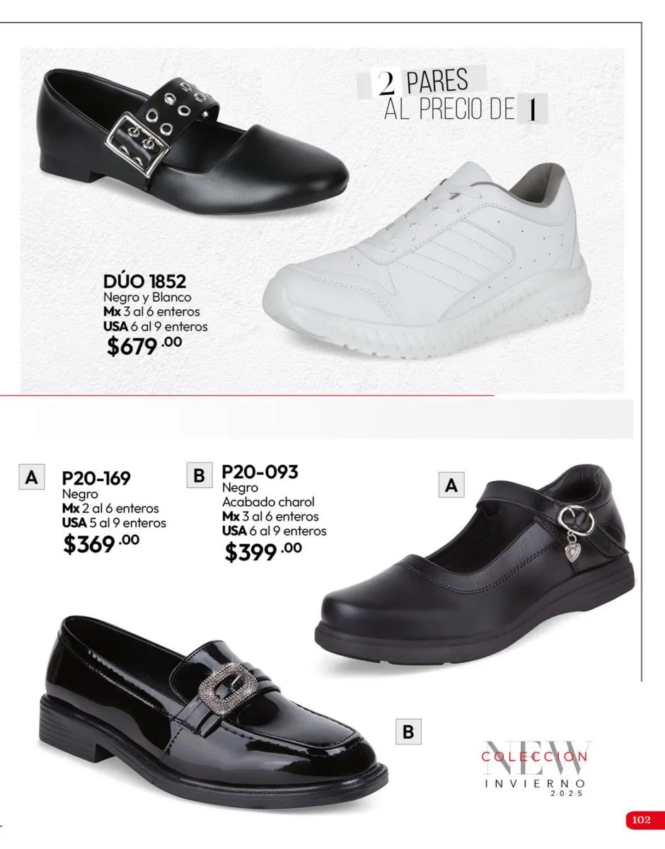 El calzado de esta temporada ofrece una combinación de estilo, colores vibrantes y modelos para todas las ocasiones de este Invierno 2025. Aprovecha los dúo packs, dos pares por el precio de uno, para tener siempre una opción y combinar tus prendas favoritas siempre.