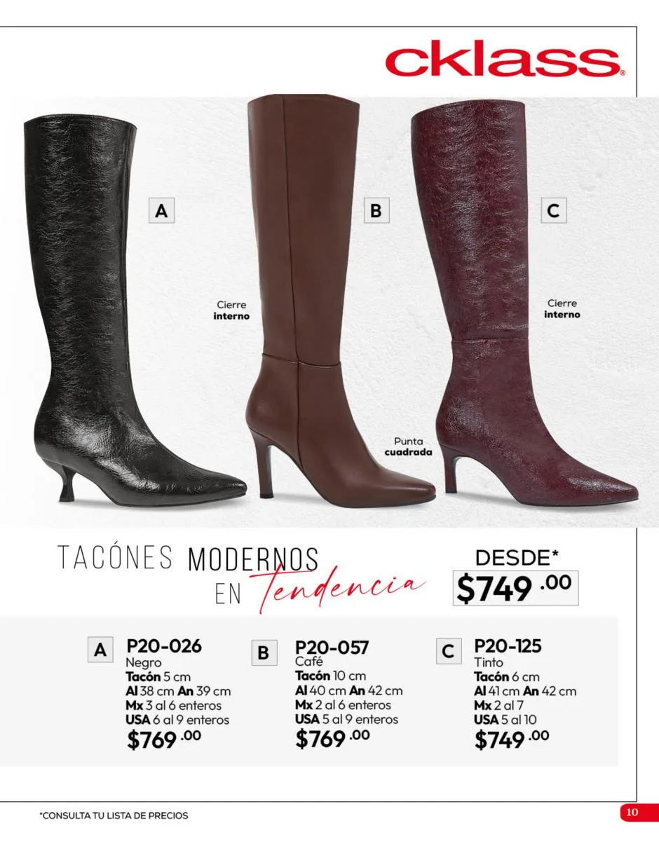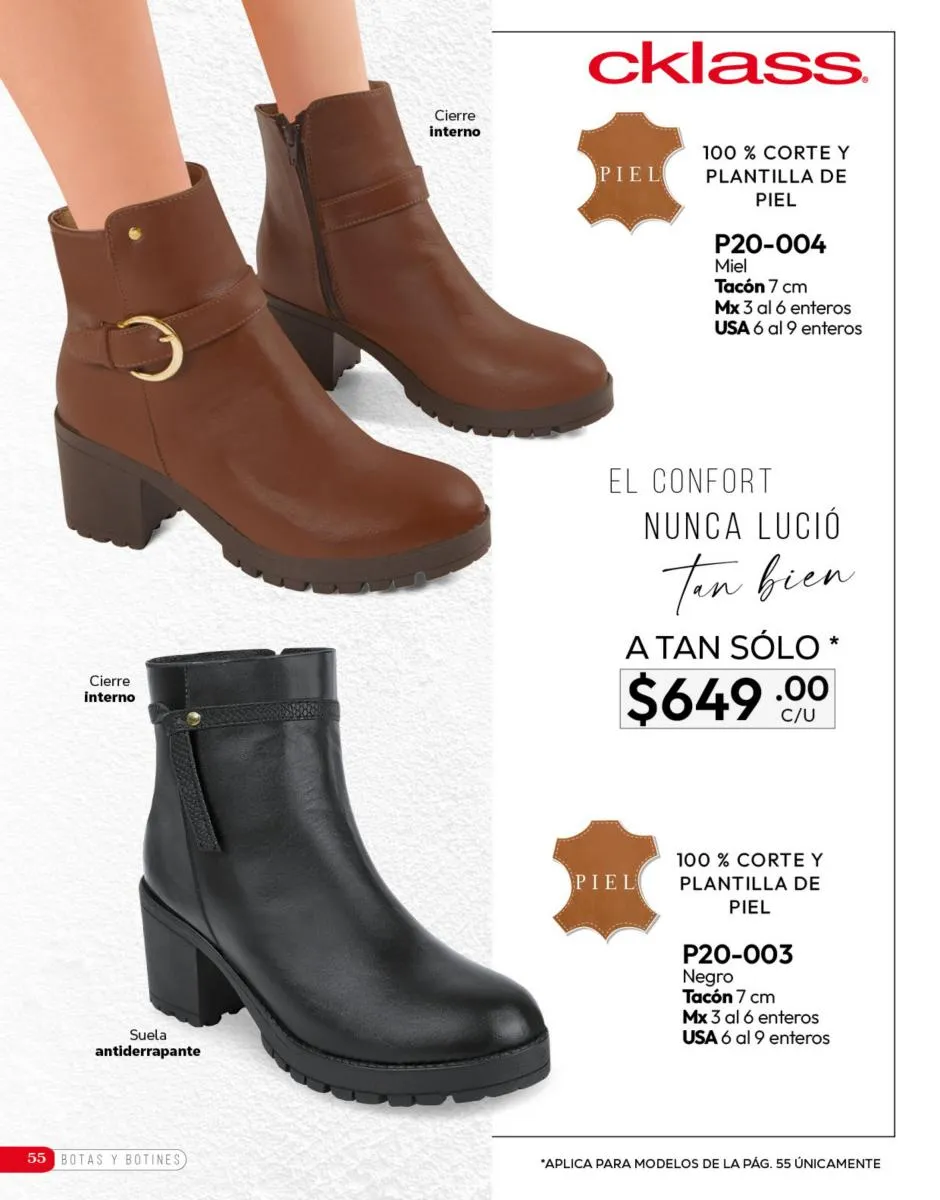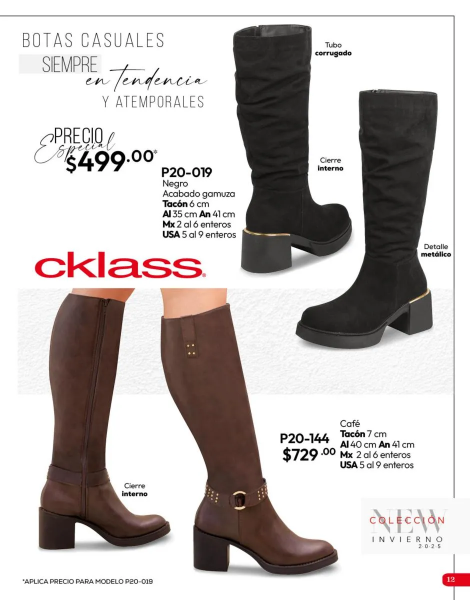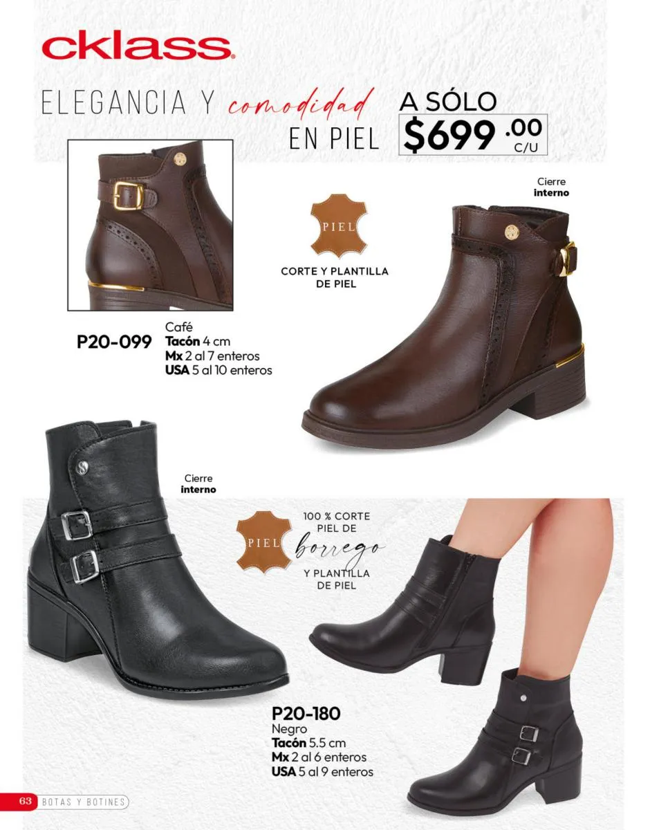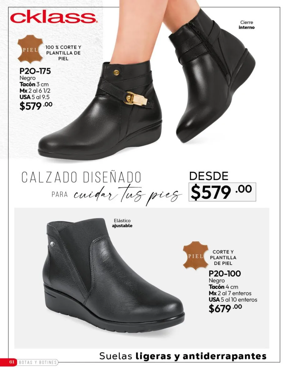 Tenemos una línea especial en esta temporada de un calzado de calidad superior, con forro 100% de piel, acojinamiento con soporte y suela confortable cosida a mano. Busca lo mejor para estar cómoda, está todo lo que necesitas en catálogo Cklass de Calzado Complemento de Invierno 2025 México.