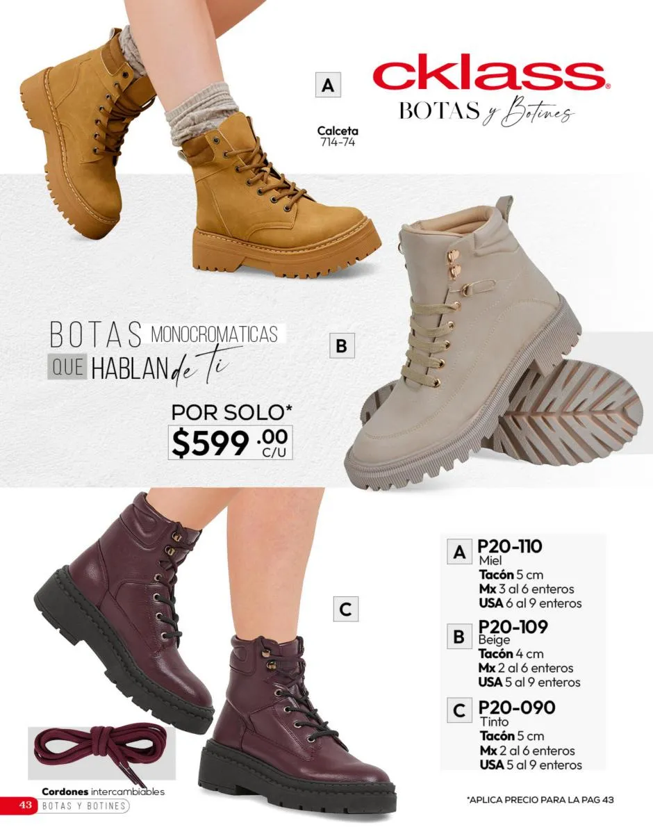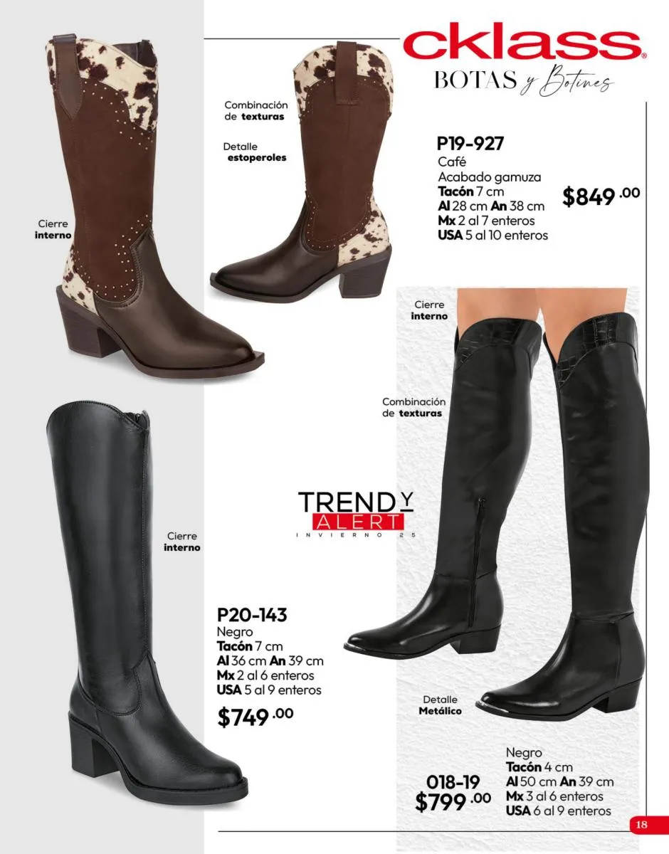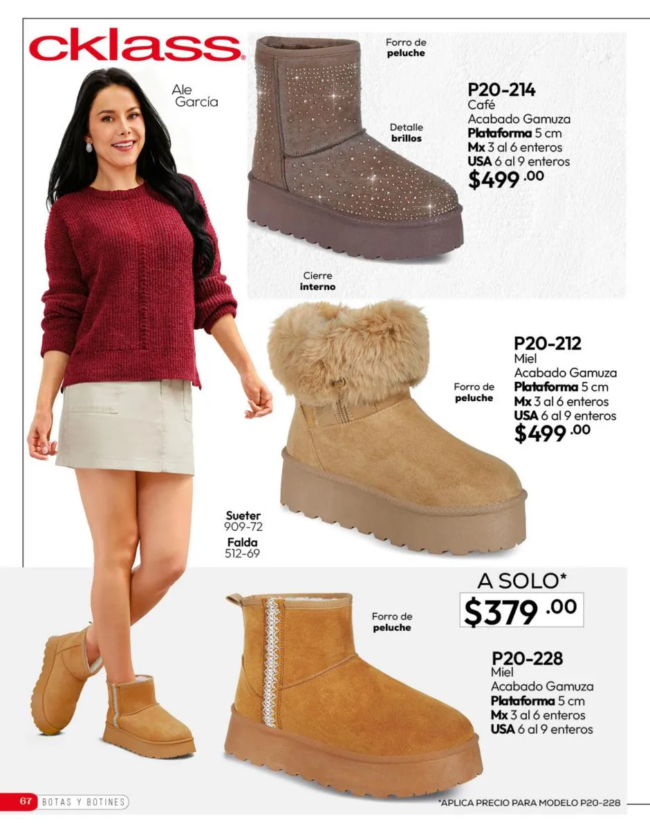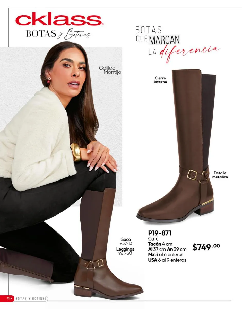 Tenemos una línea especial en esta temporada de un calzado de calidad superior, con forro 100% de piel, acojinamiento con soporte y suela confortable cosida a mano. Busca lo mejor para estar cómoda, está todo lo que necesitas en catálogo Cklass de Calzado Complemento de Invierno 2025 México.