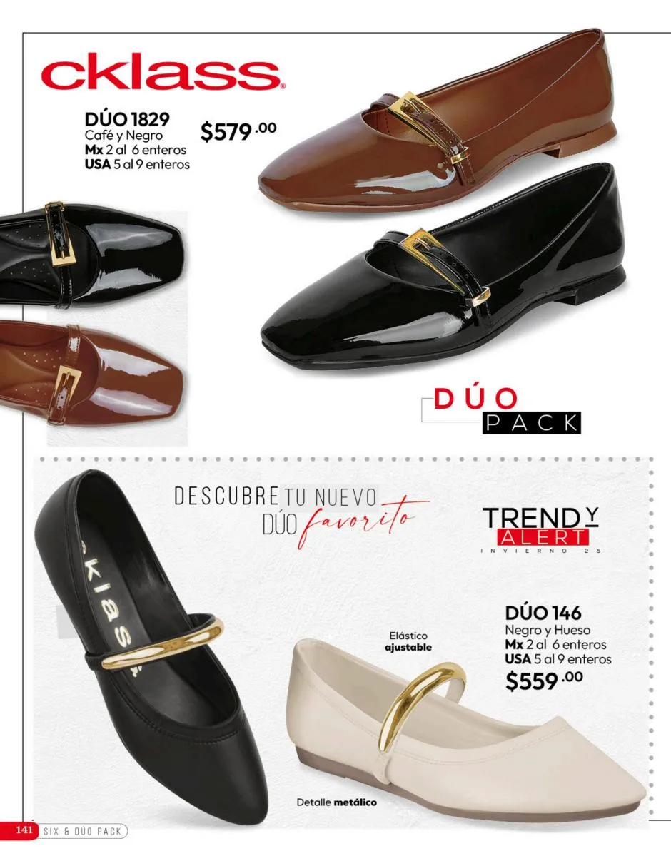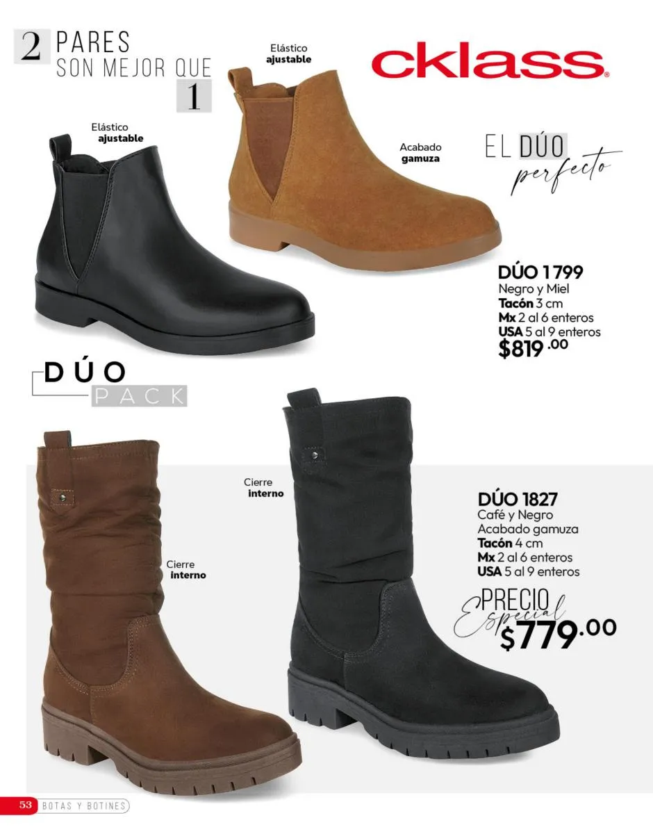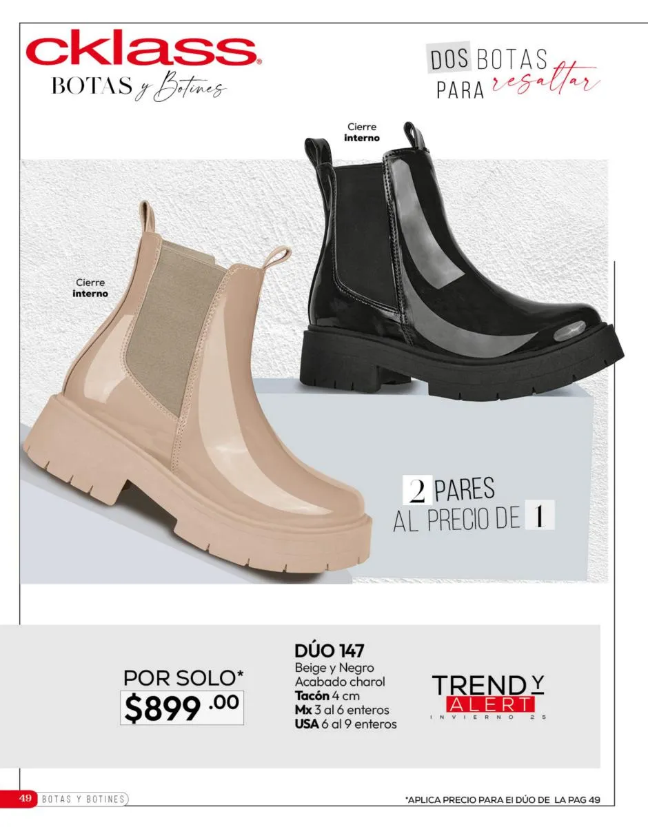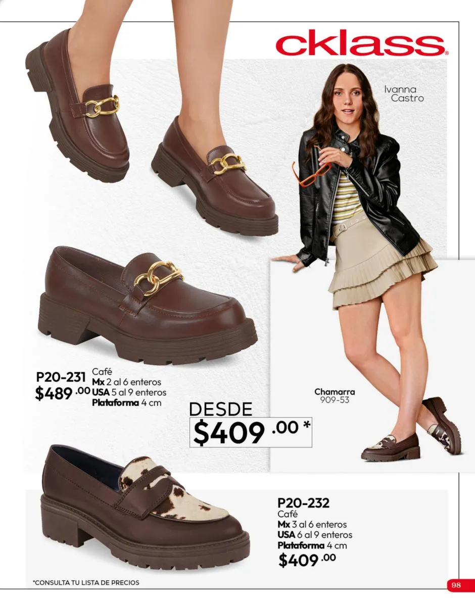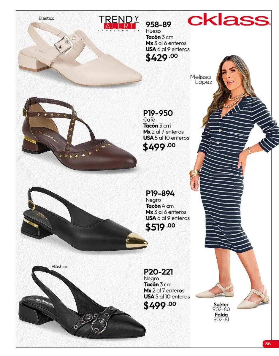 Tenemos una línea especial en esta temporada de un calzado de calidad superior, con forro 100% de piel, acojinamiento con soporte y suela confortable cosida a mano. Busca lo mejor para estar cómoda, está todo lo que necesitas en catálogo Cklass de Calzado Complemento de Invierno 2025 México.