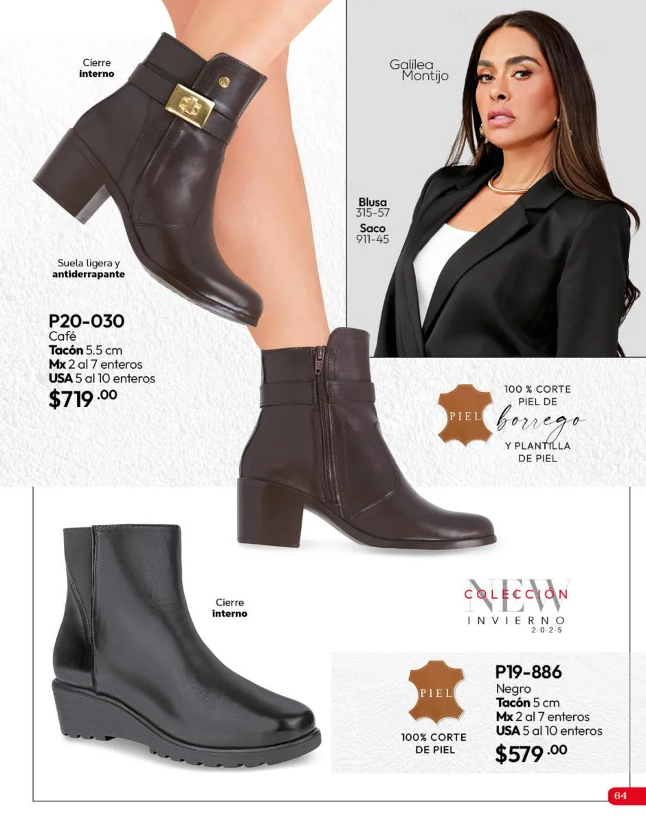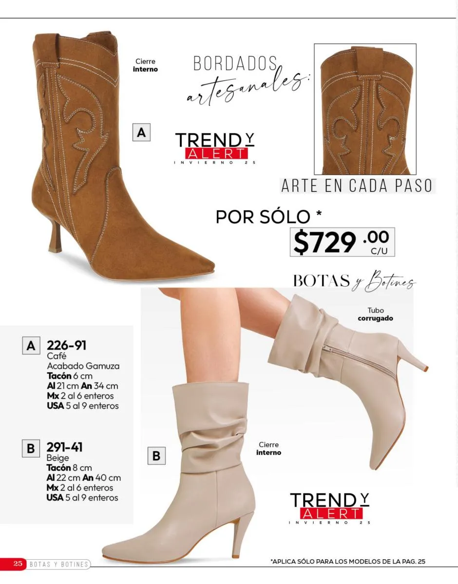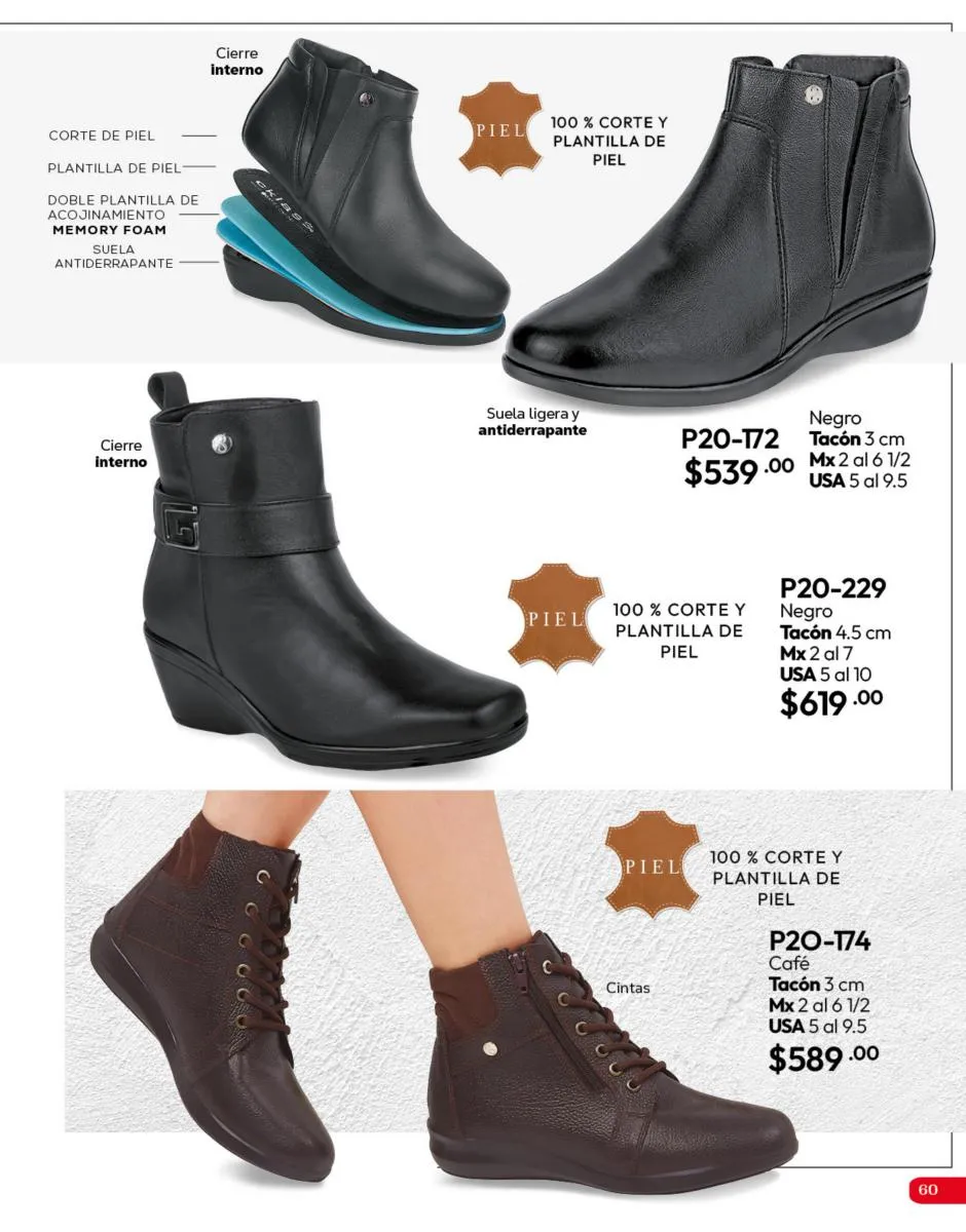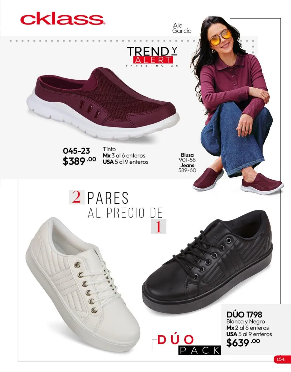 Tenemos una línea especial en esta temporada de un calzado de calidad superior, con forro 100% de piel, acojinamiento con soporte y suela confortable cosida a mano. Busca lo mejor para estar cómoda, está todo lo que necesitas en catálogo Cklass de Calzado Complemento de Invierno 2025 México.