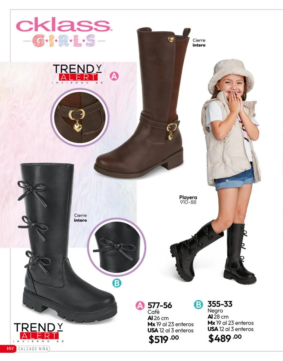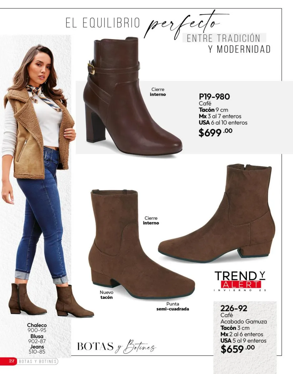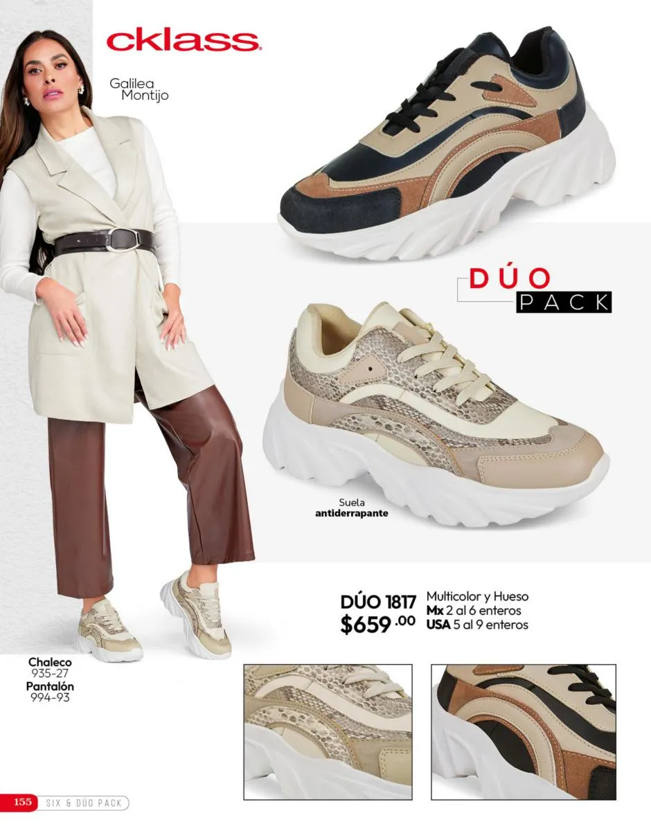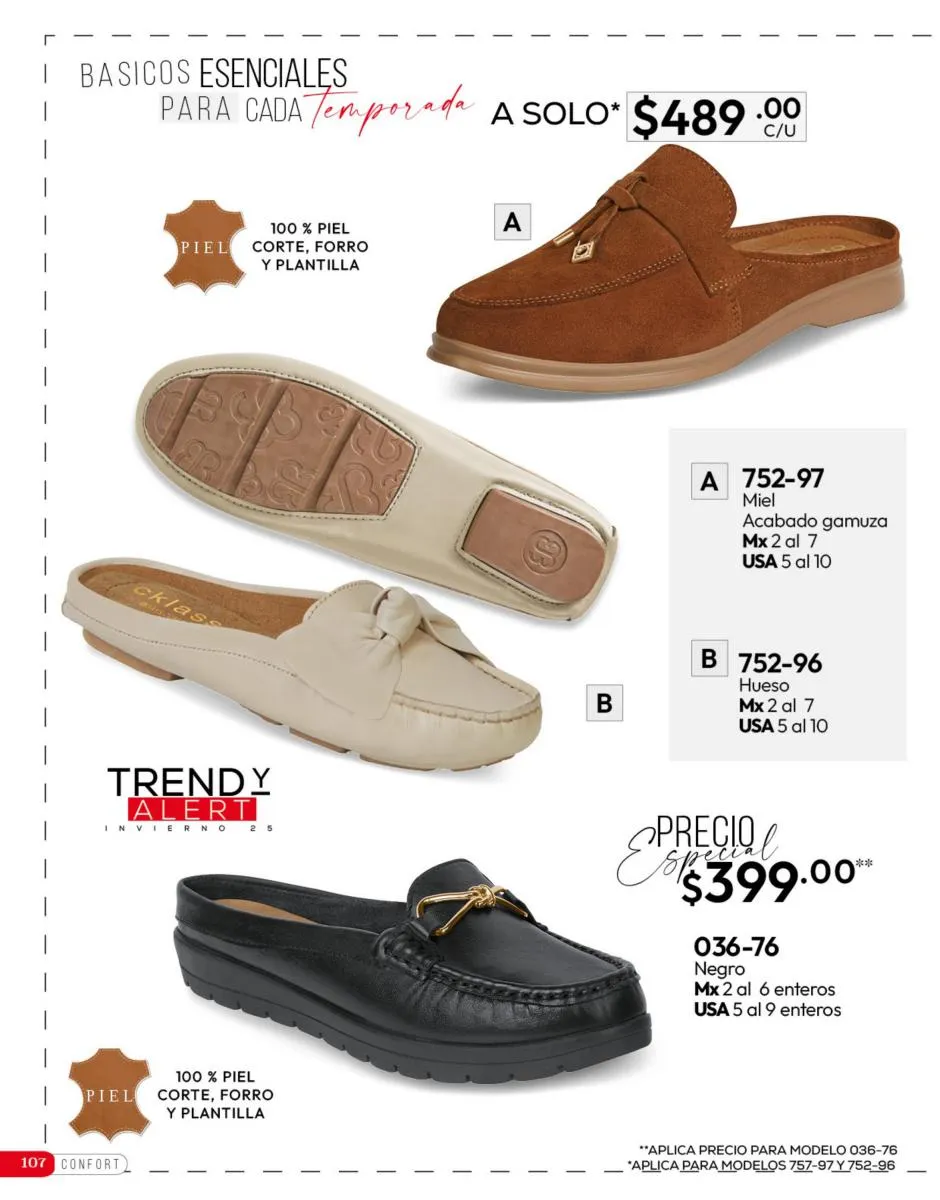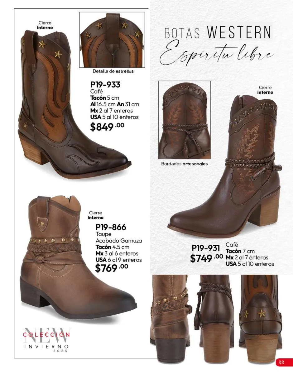 Tenemos una línea especial en esta temporada de un calzado de calidad superior, con forro 100% de piel, acojinamiento con soporte y suela confortable cosida a mano. Busca lo mejor para estar cómoda, está todo lo que necesitas en catálogo Cklass de Calzado Complemento de Invierno 2025 México.