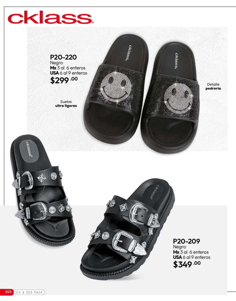 Tenemos una gran variedad de sandalias que puedes usar para la playa o para salidas en la tarde, todos los pares son versátiles y están pensados para que se usen con distintas prendas. Elige los acabados que más te gusten y sal a disfrutar de todas las aventuras que esta temporada 2025 tiene para ti. Además, puedes optar por todas las tendencias que te gusten y combinarlas con las prendas que Cklass tiene para ti. Crea looks completos con nuestros catálogos y nunca más tendrás que preocuparte por elegir modelos y estilos diferentes, todo en catálogo Cklass de Calzado Complemento de Invierno 2025 México está pensado para que lo puedas combinar de forma rápida y sencilla.