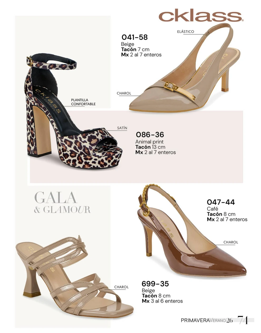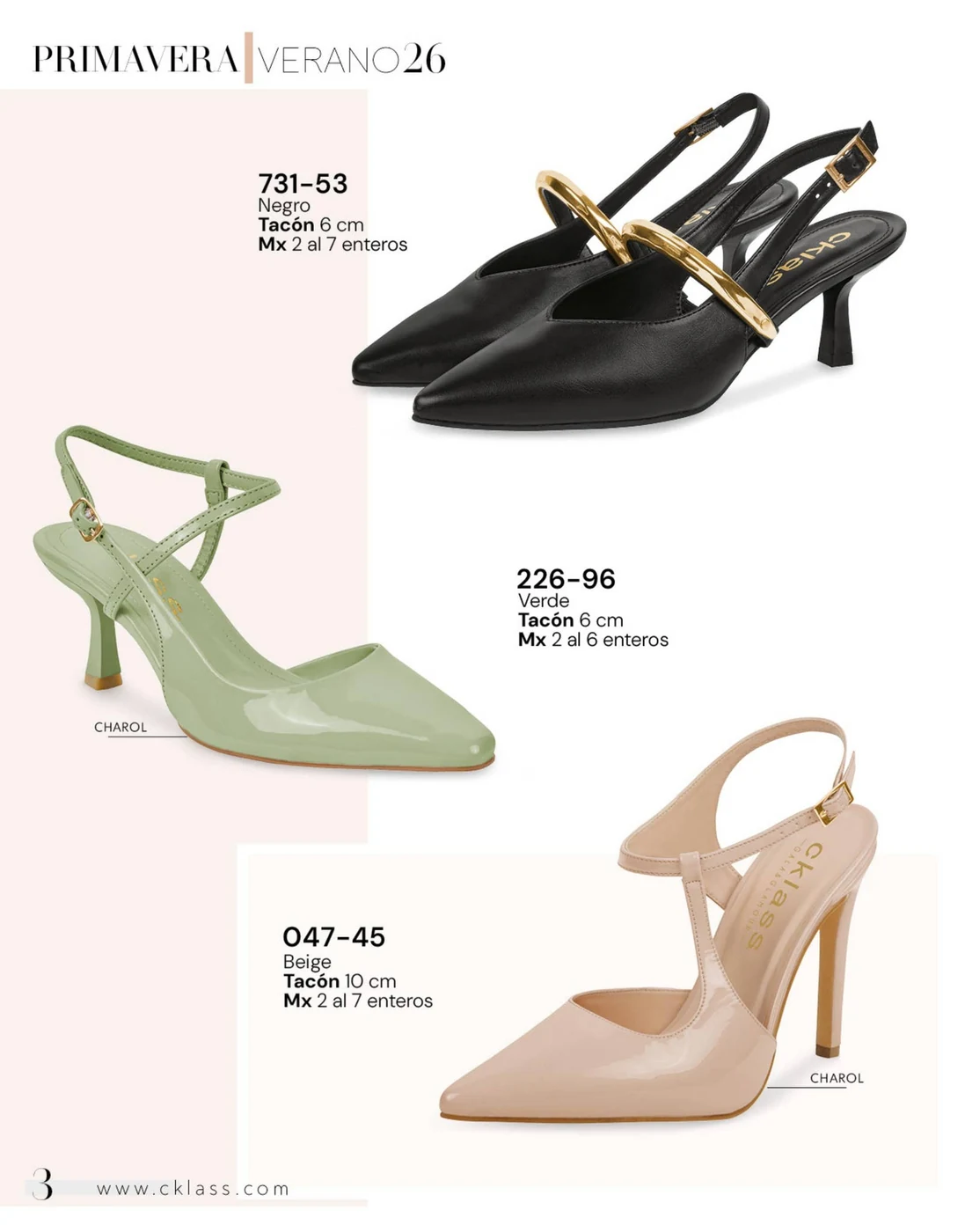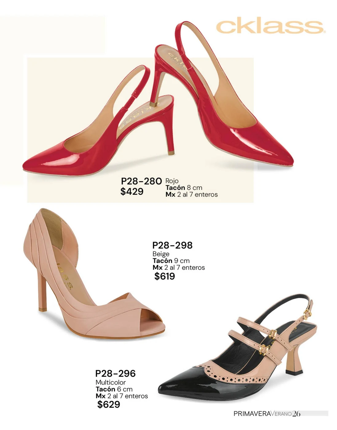 Si buscas modelos y colores clásicos, también tenemos opciones para ti. Varios modelos y alturas están en este catálogo. Además, puedes optar con tonos metalizados o mate, para que siempre puedas elegir el mejor modelo para disfrutar al máximo en todas las ocasiones especiales de esta catálogo Cklass Gala y Glamour primavera verano 2026 México.
