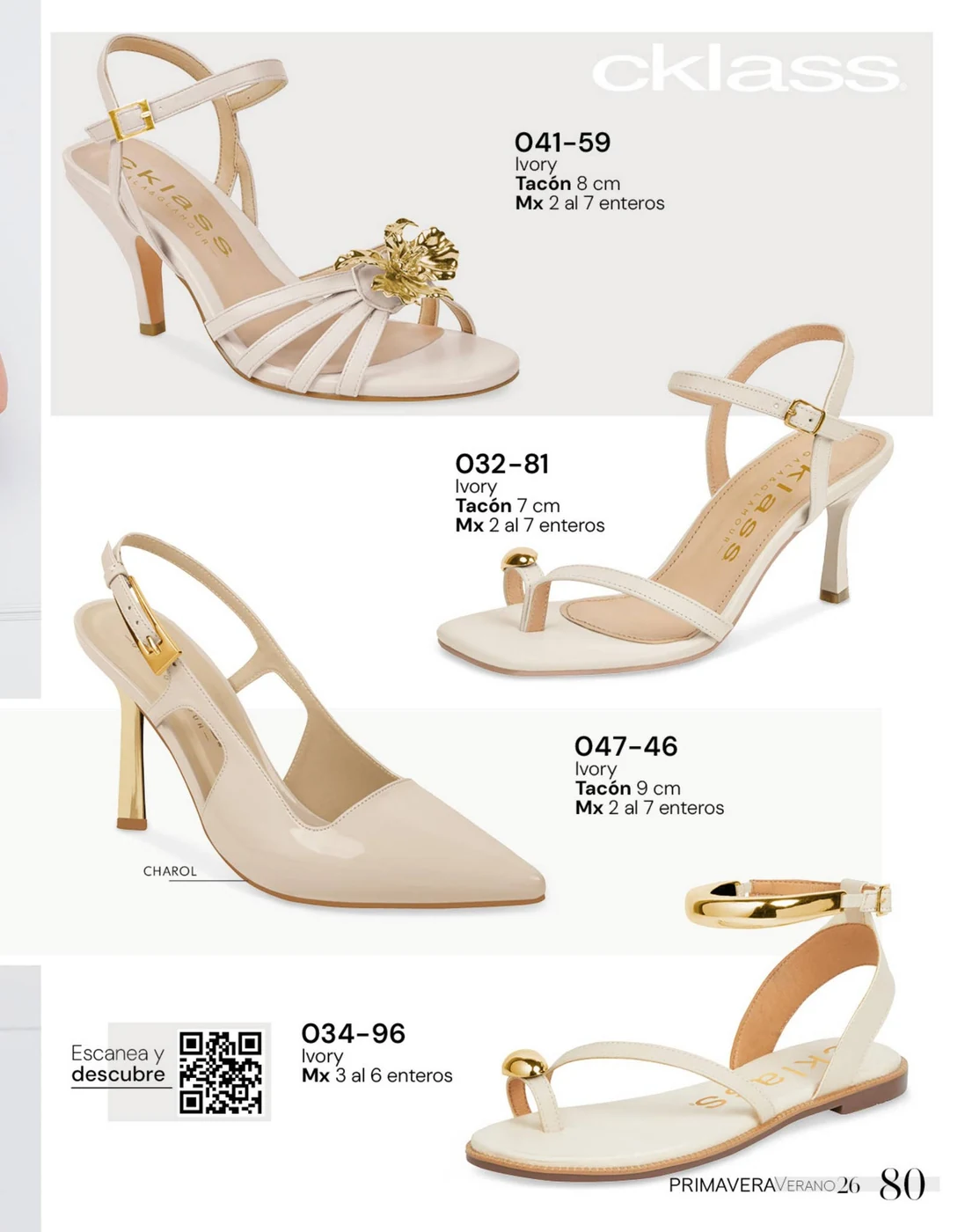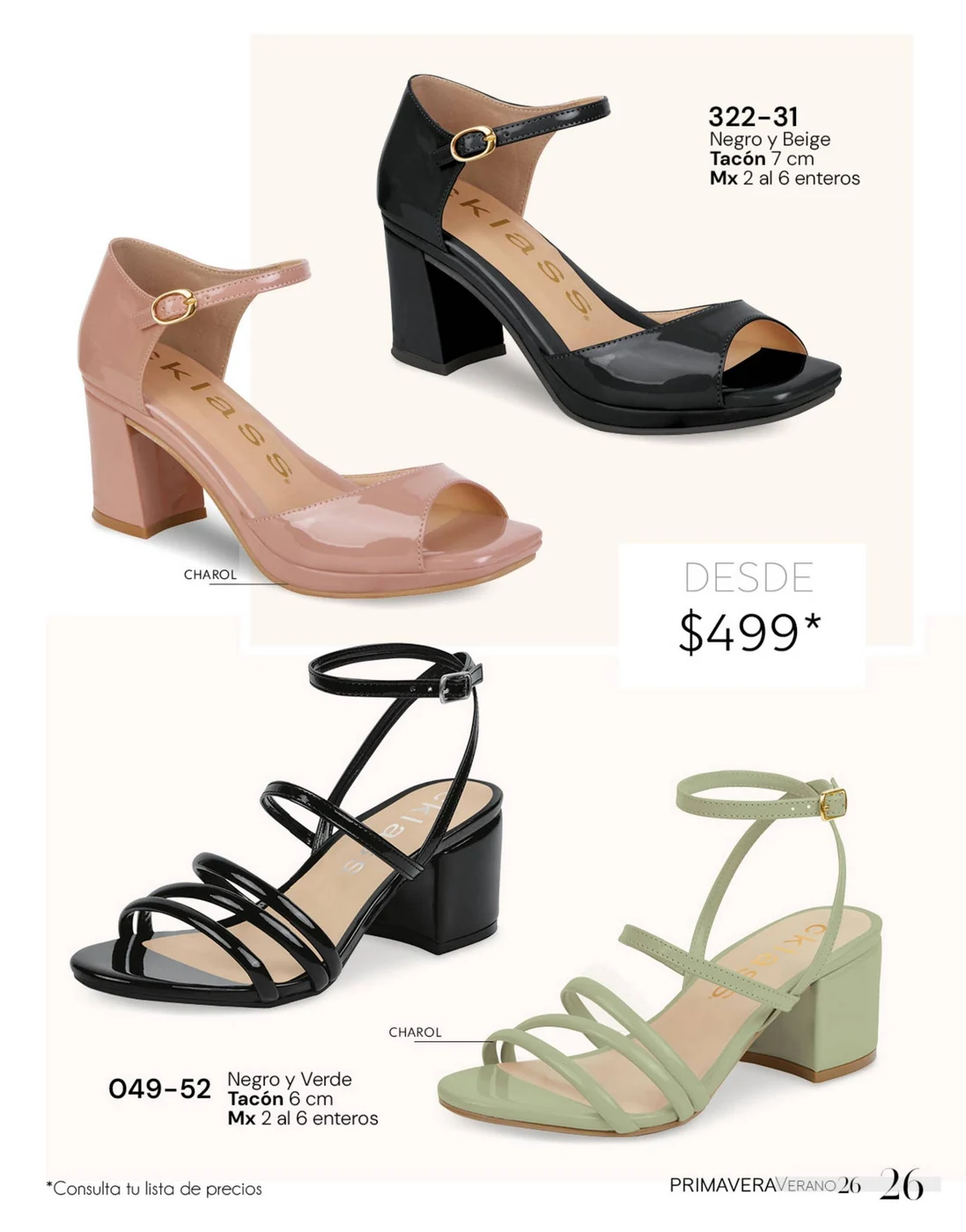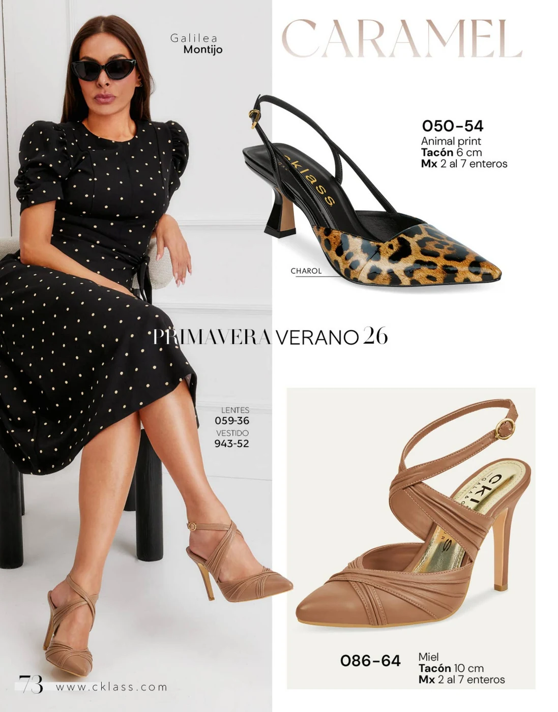 Si buscas modelos y colores clásicos, también tenemos opciones para ti. Varios modelos y alturas están en este catálogo. Además, puedes optar con tonos metalizados o mate, para que siempre puedas elegir el mejor modelo para disfrutar al máximo en todas las ocasiones especiales de esta catálogo Cklass Gala y Glamour primavera verano 2026 México.