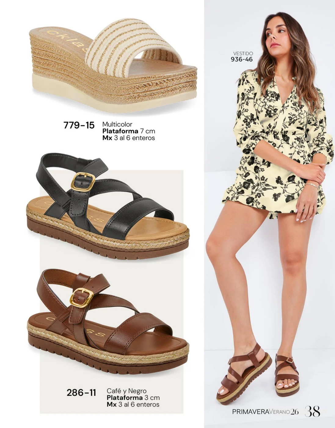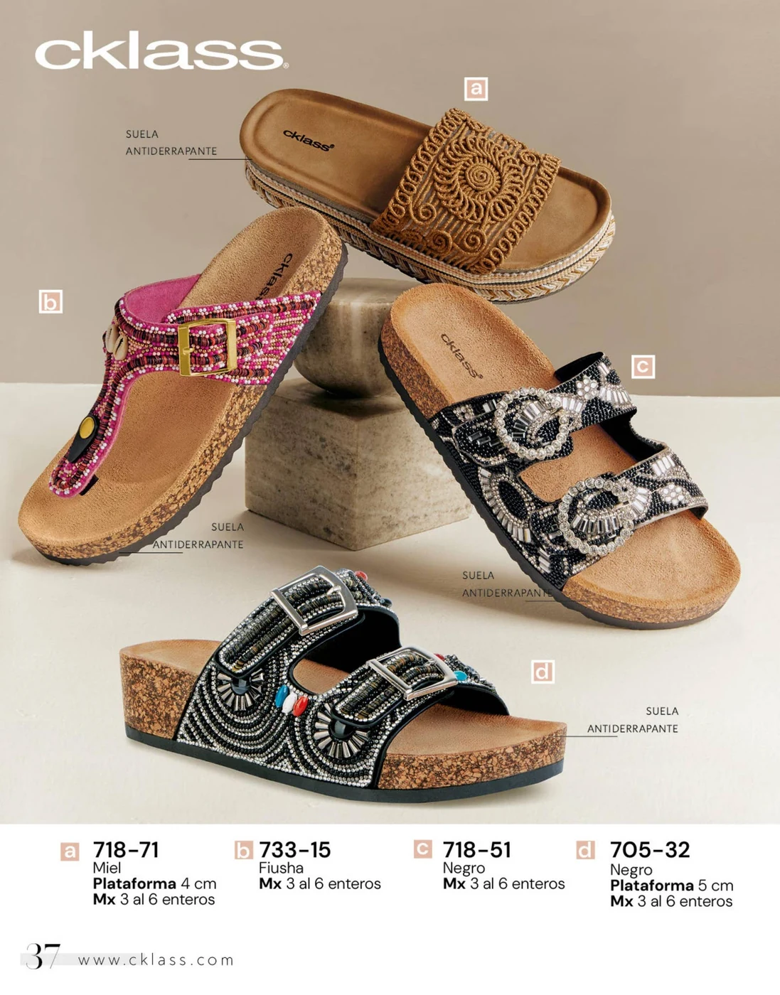 Las sandalias con tacos y plataformas proporcionan todo el brillo que necesitas para lucir tus piernas al máximo y combinar con todos tus looks formales. Todos los colores tradicionales que nunca fallan con tus prendas, los consigues en Cklass.