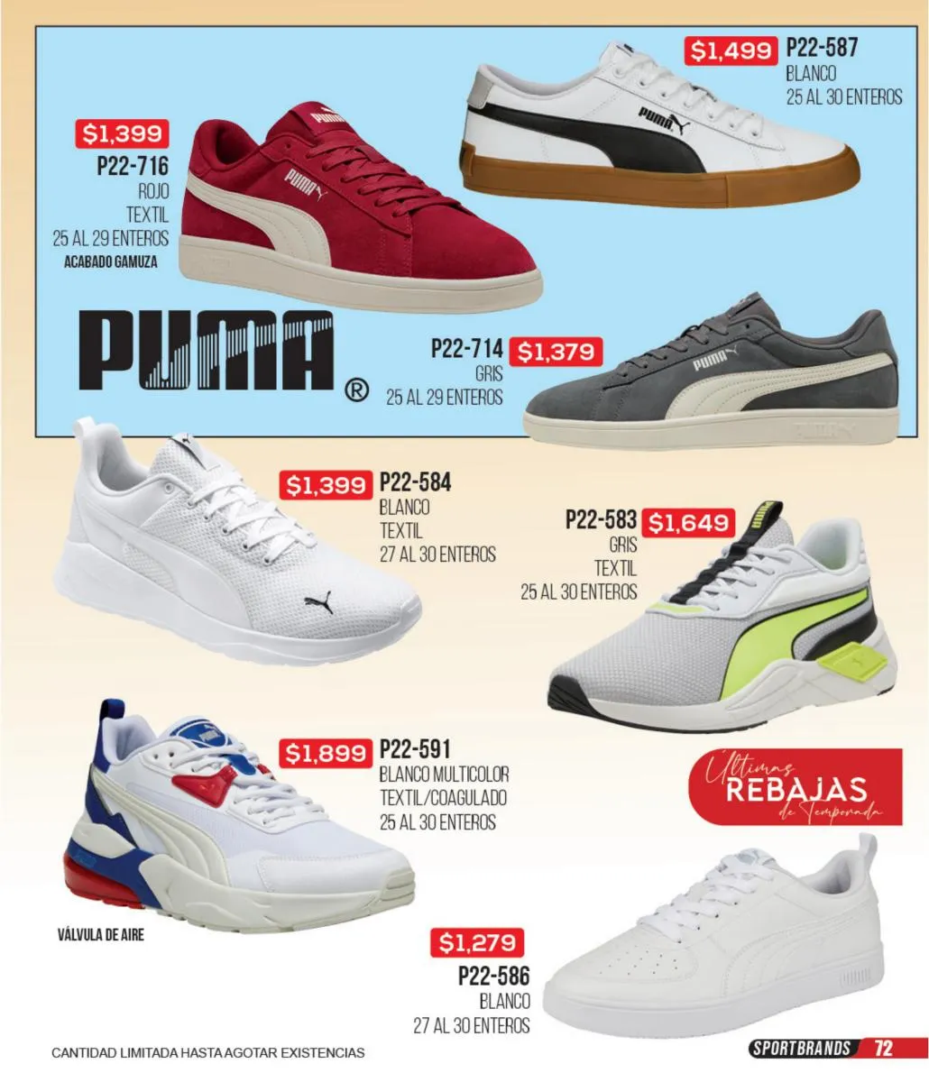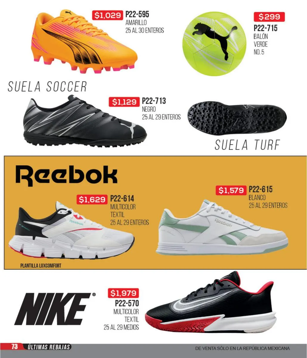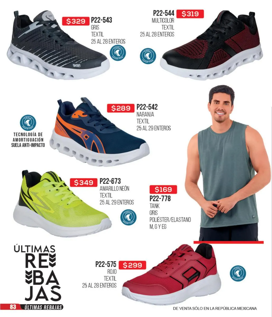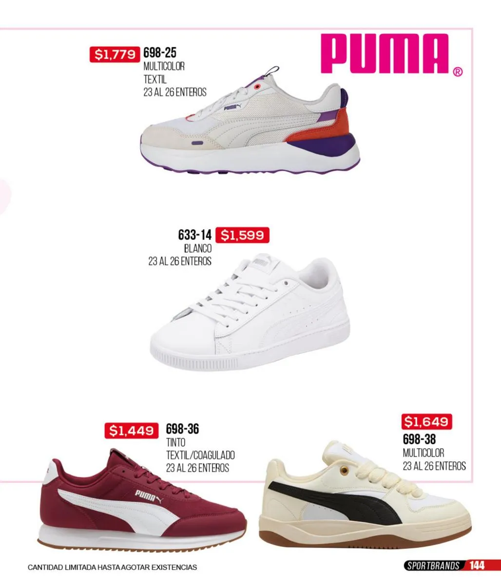 Las zapatillas deportivas de este catálogo ofrecen una variedad increíble para que puedas combinar tus outfits deportivos y sentirte lista para hacer todo el deporte que quieras. Todas tus marcas favoritas: Fila, Nike, Reebok, Puma y más, las consigues en este catálogo. Además, puedes aprovechar estas increíbles ofertas para adquirir todos los accesorios e indumentaria deportiva para estar cómoda y a tono con tu personalidad en cada actividad de tu día.