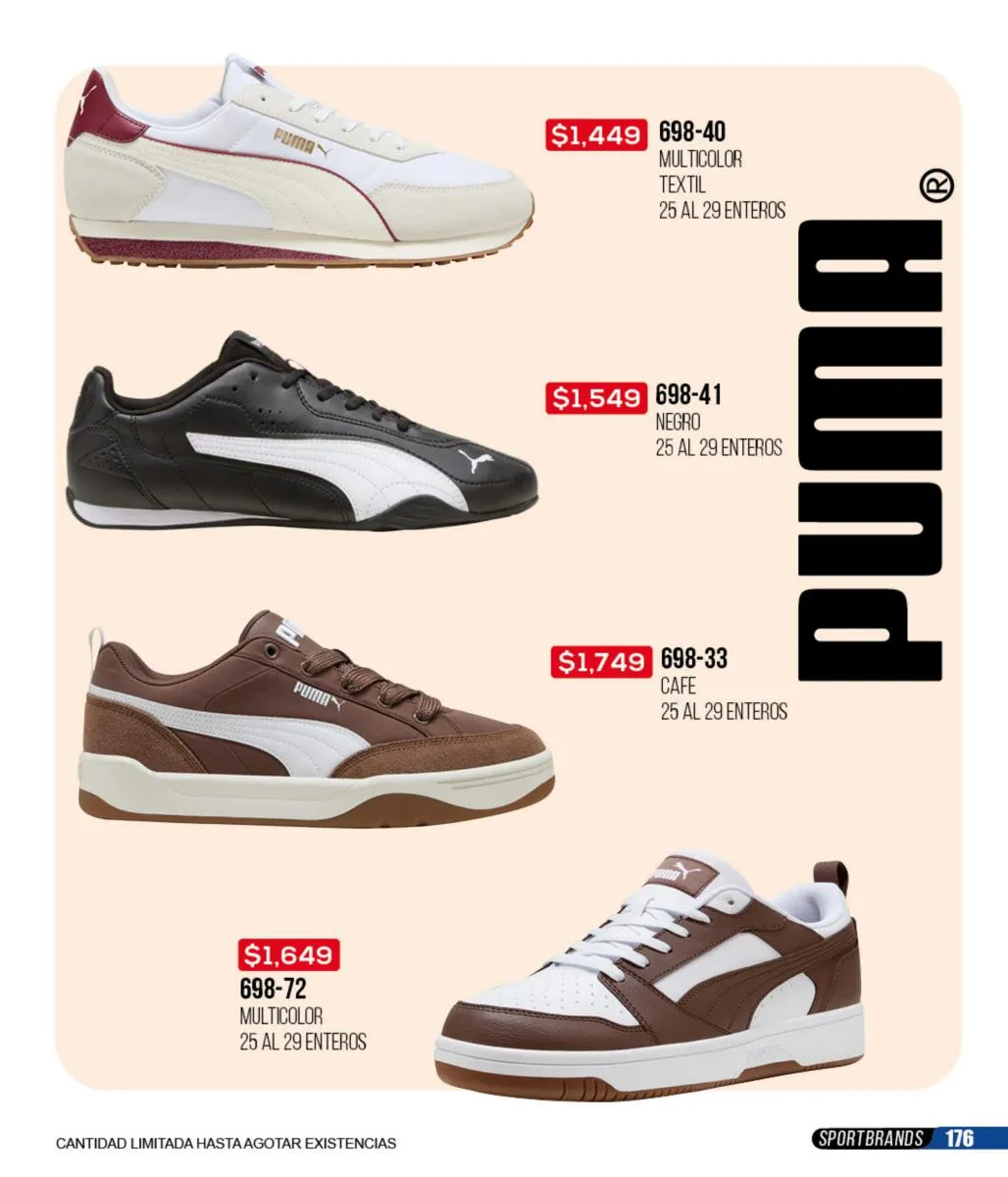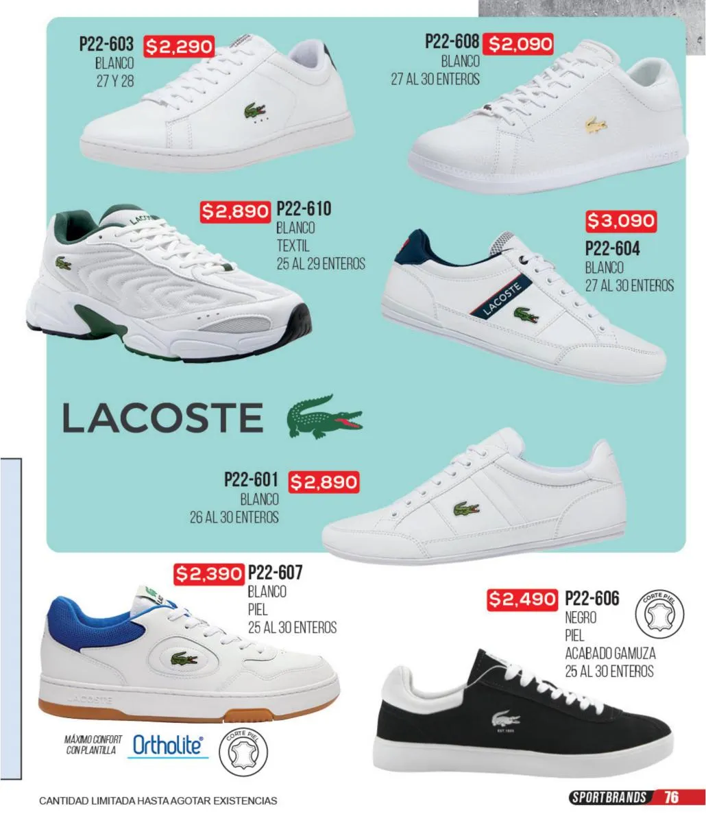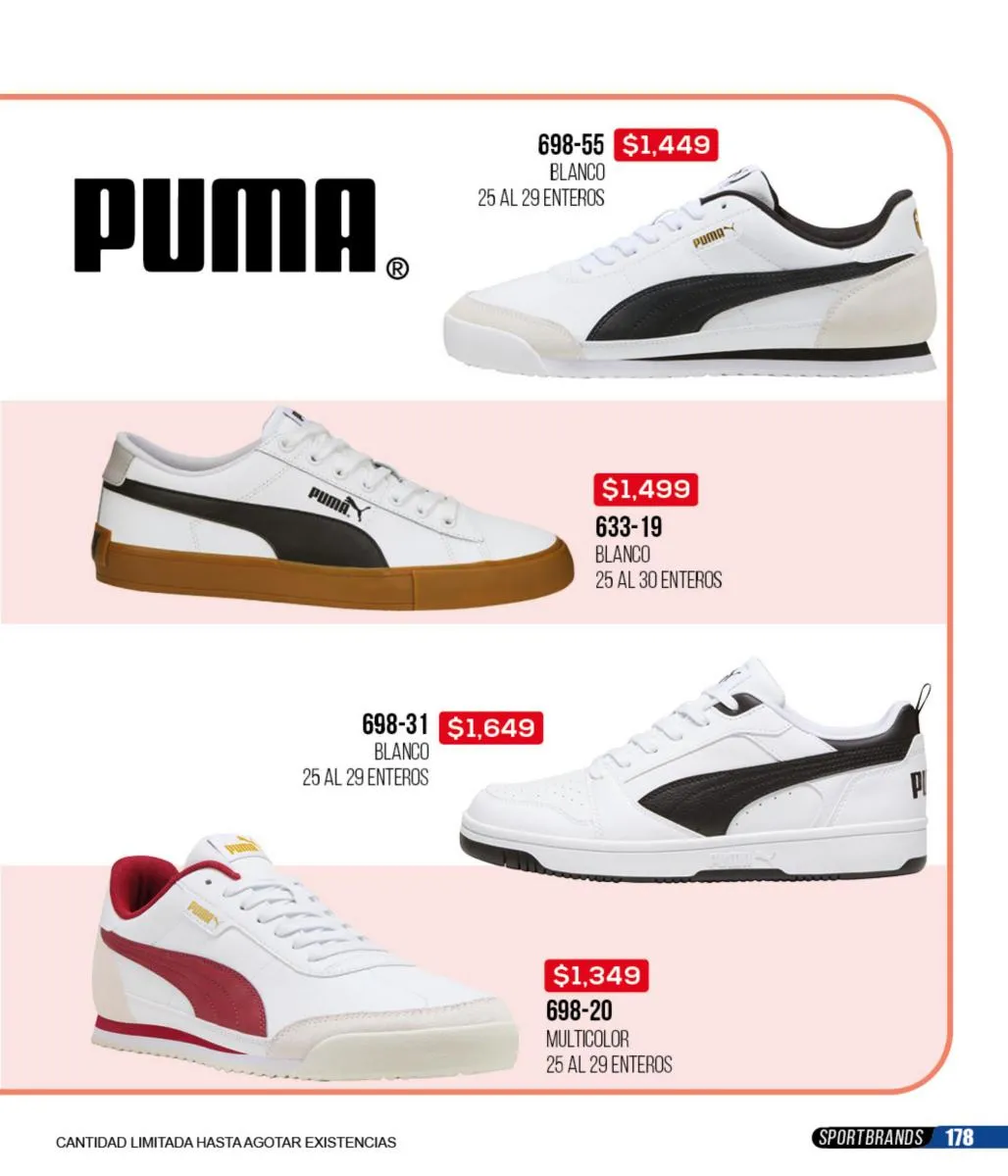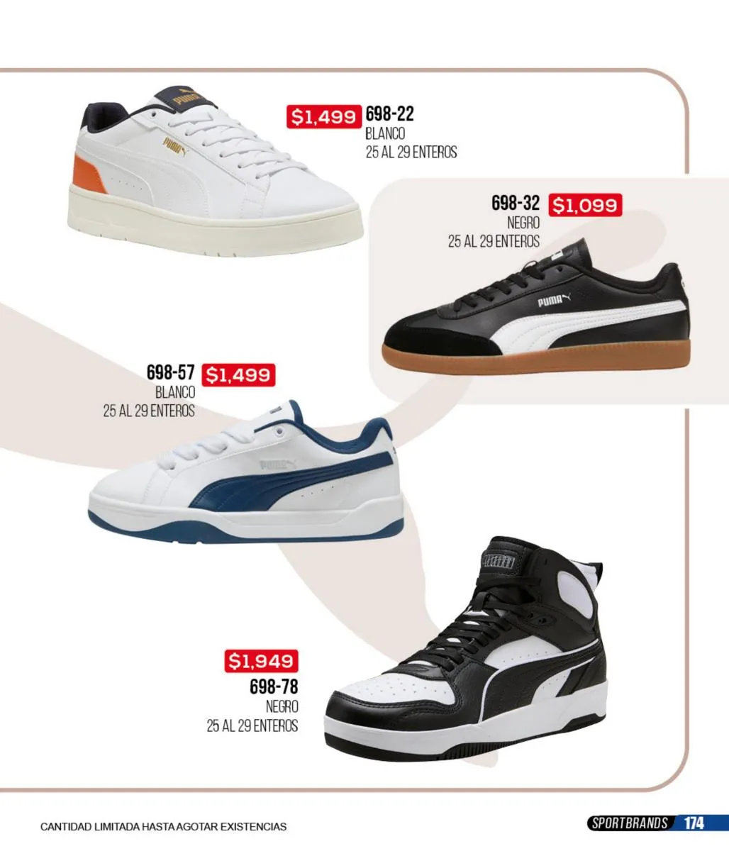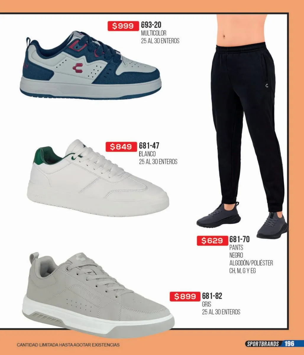 Las zapatillas deportivas de este catálogo ofrecen una variedad increíble para que puedas combinar tus outfits deportivos y sentirte lista para hacer todo el deporte que quieras. Todas tus marcas favoritas: Fila, Nike, Reebok, Puma y más, las consigues en este catálogo. Además, puedes aprovechar estas increíbles ofertas para adquirir todos los accesorios e indumentaria deportiva para estar cómoda y a tono con tu personalidad en cada actividad de tu día.