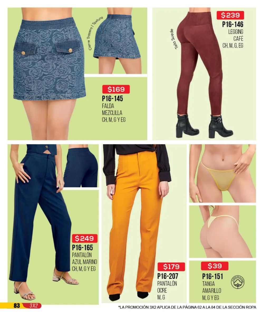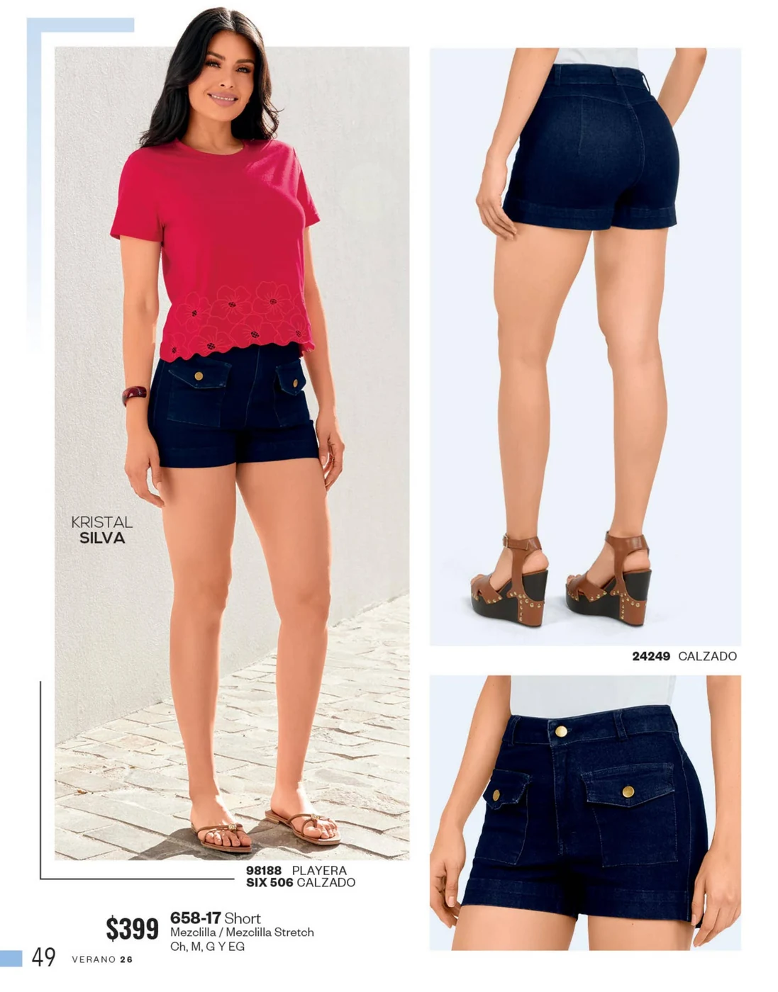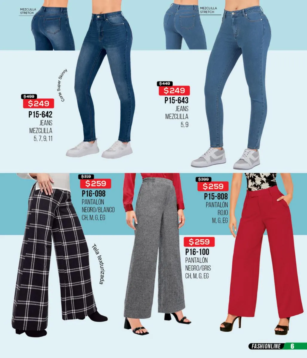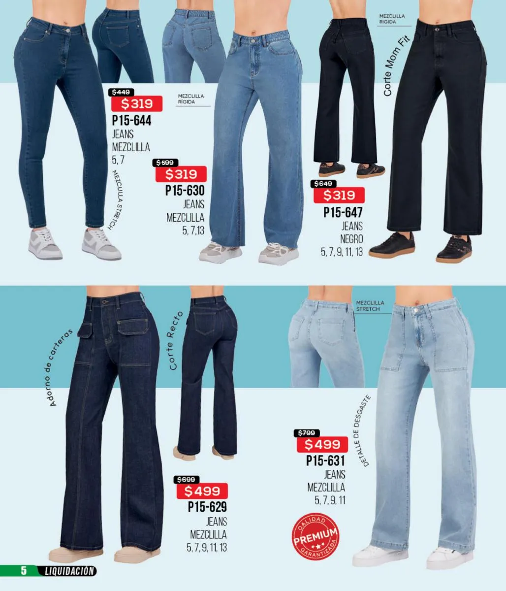 La mezclilla no solo se limita al calzado; también es una gran elección para las blusas y faldas. Los conjuntos en mezclilla del catálogo son perfectos para un look fresco y juvenil, ideales para cualquier salida casual o evento informal.