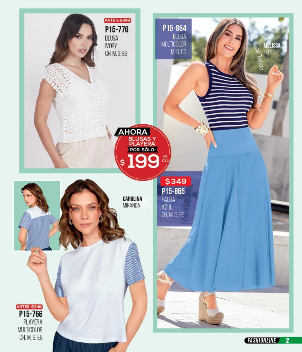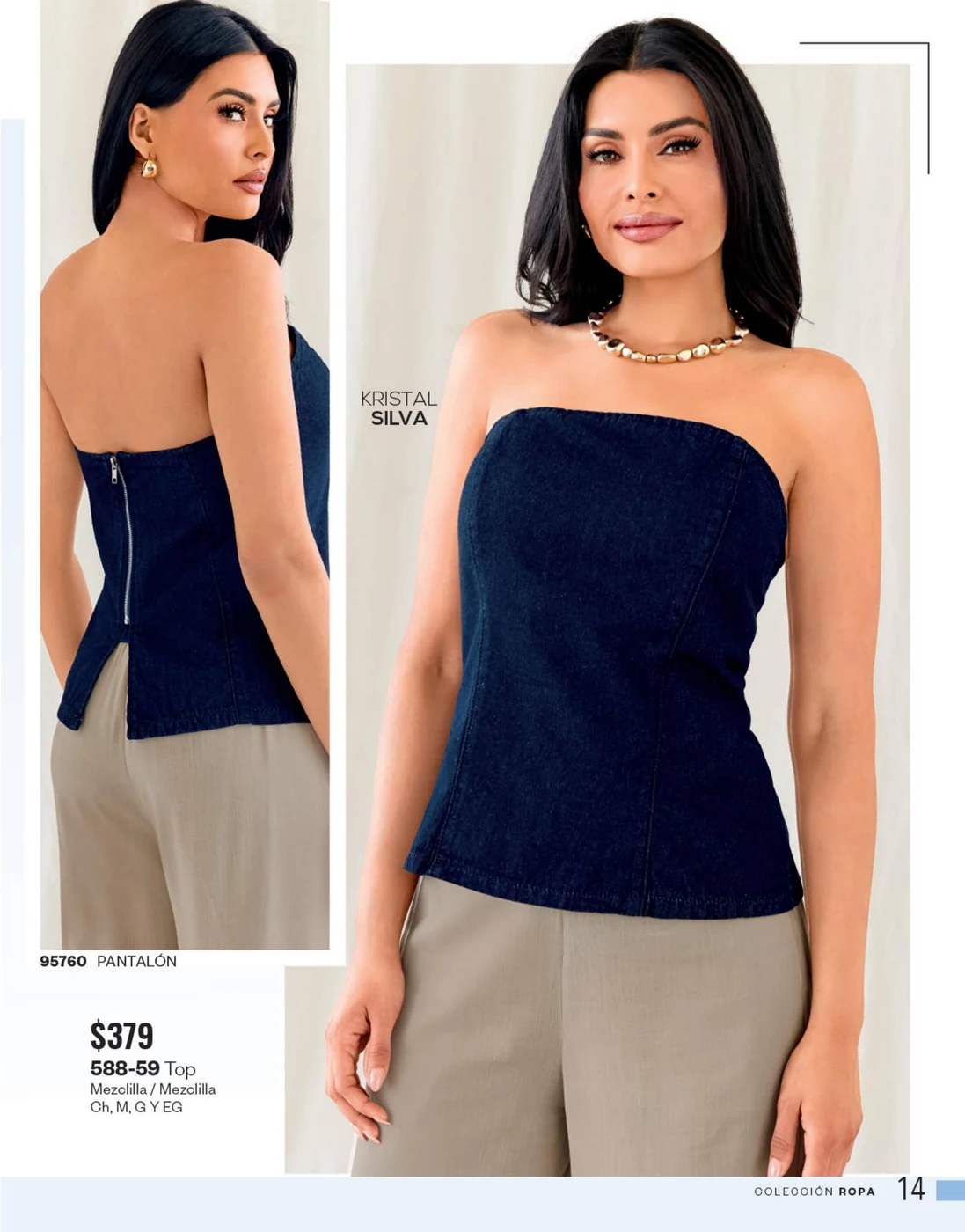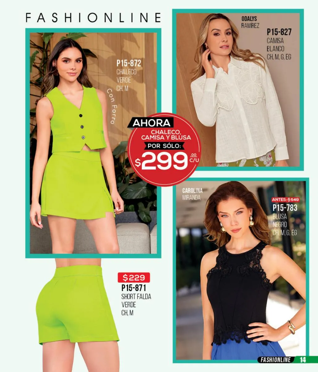 La mezclilla no solo se limita al calzado; también es una gran elección para las blusas y faldas. Los conjuntos en mezclilla del catálogo son perfectos para un look fresco y juvenil, ideales para cualquier salida casual o evento informal.