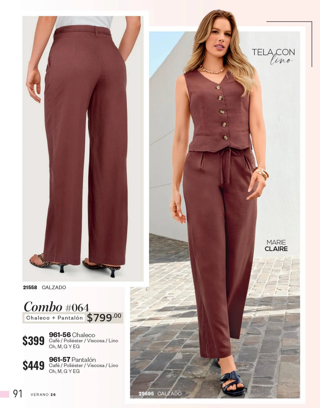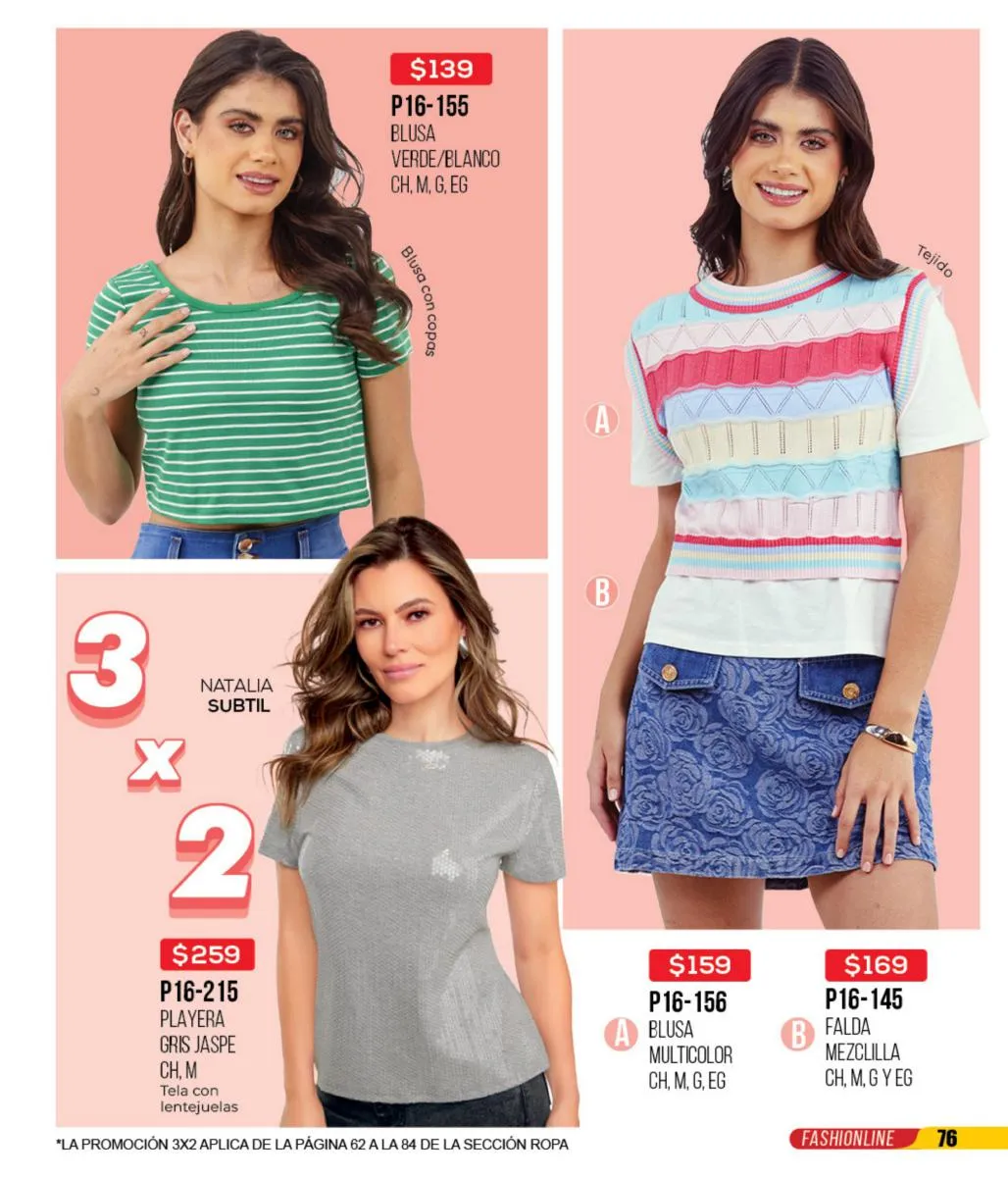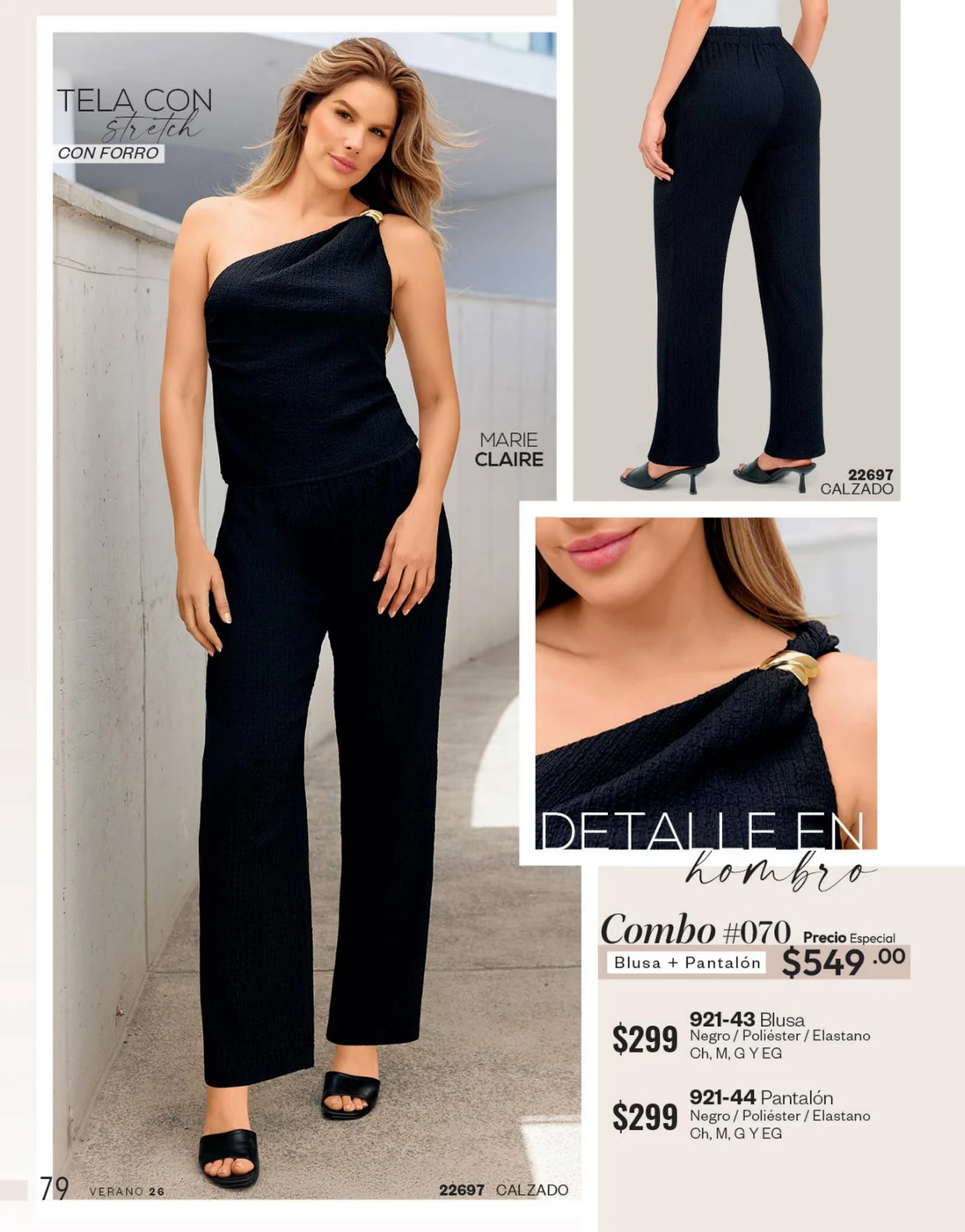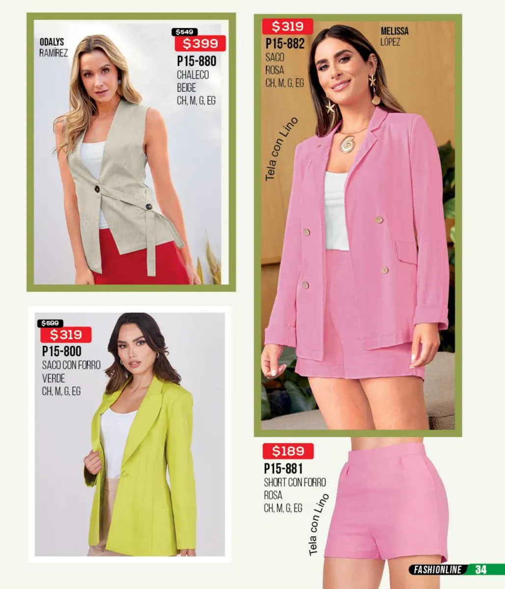 La mezclilla no solo se limita al calzado; también es una gran elección para las blusas y faldas. Los conjuntos en mezclilla del catálogo son perfectos para un look fresco y juvenil, ideales para cualquier salida casual o evento informal.