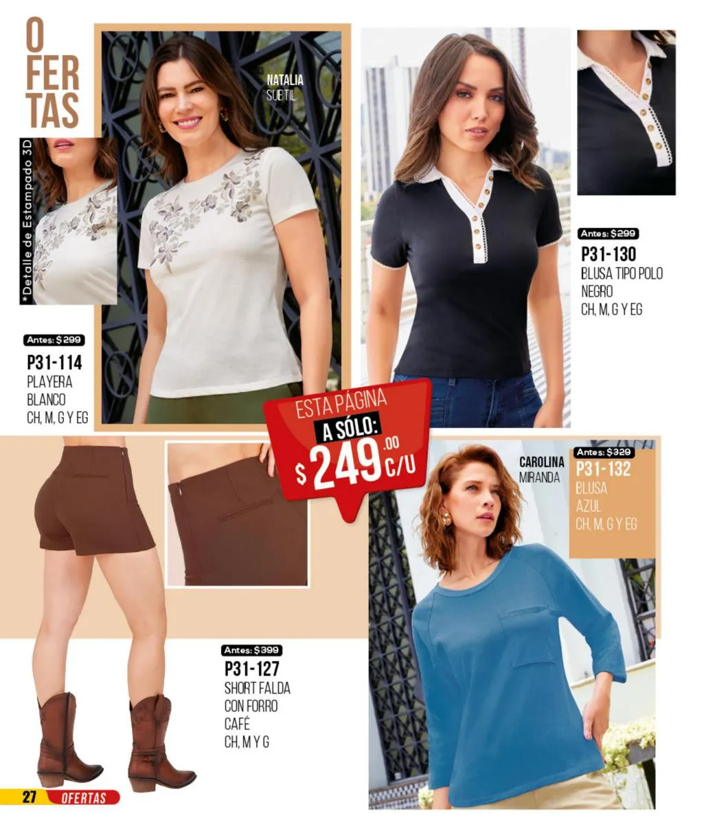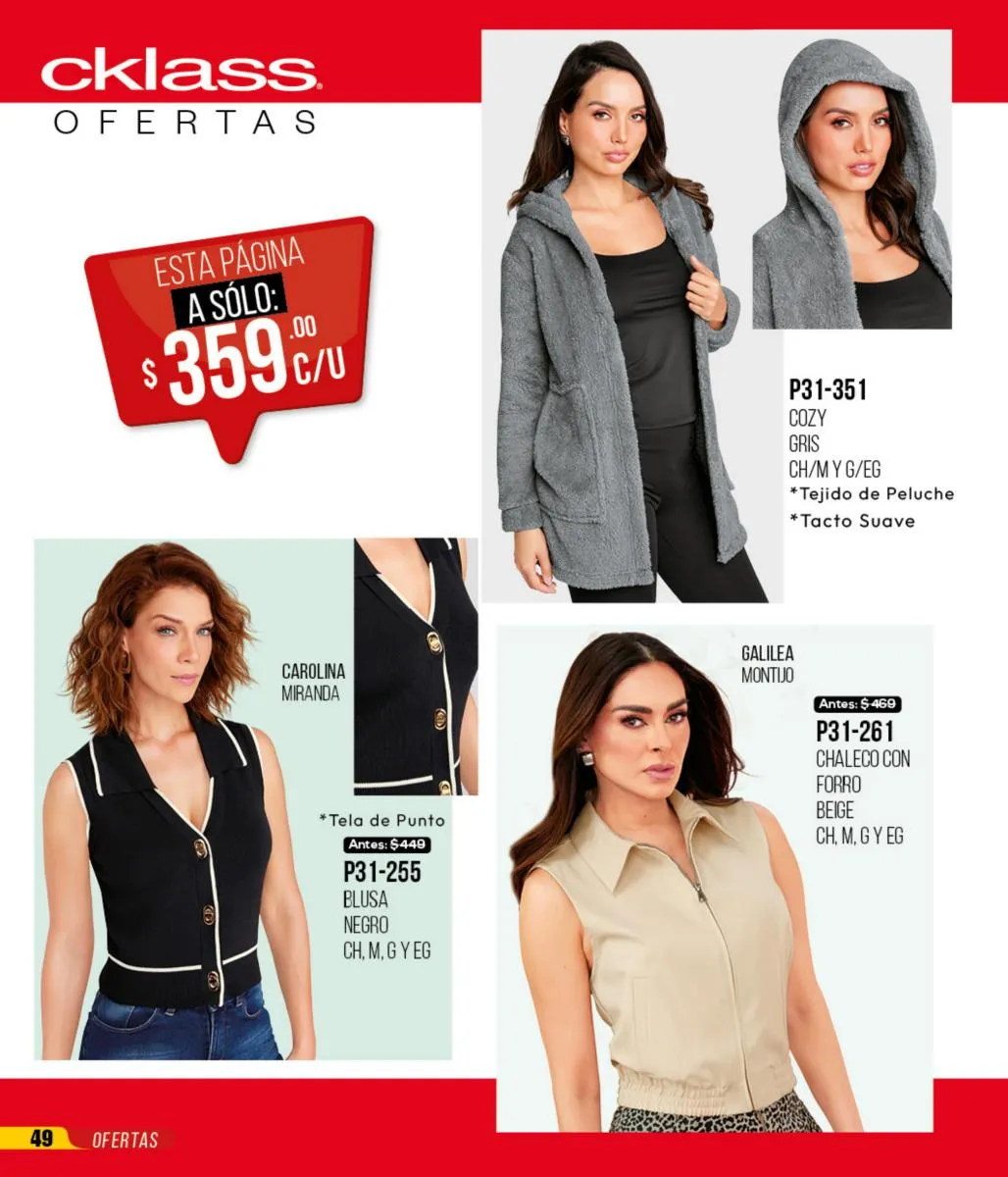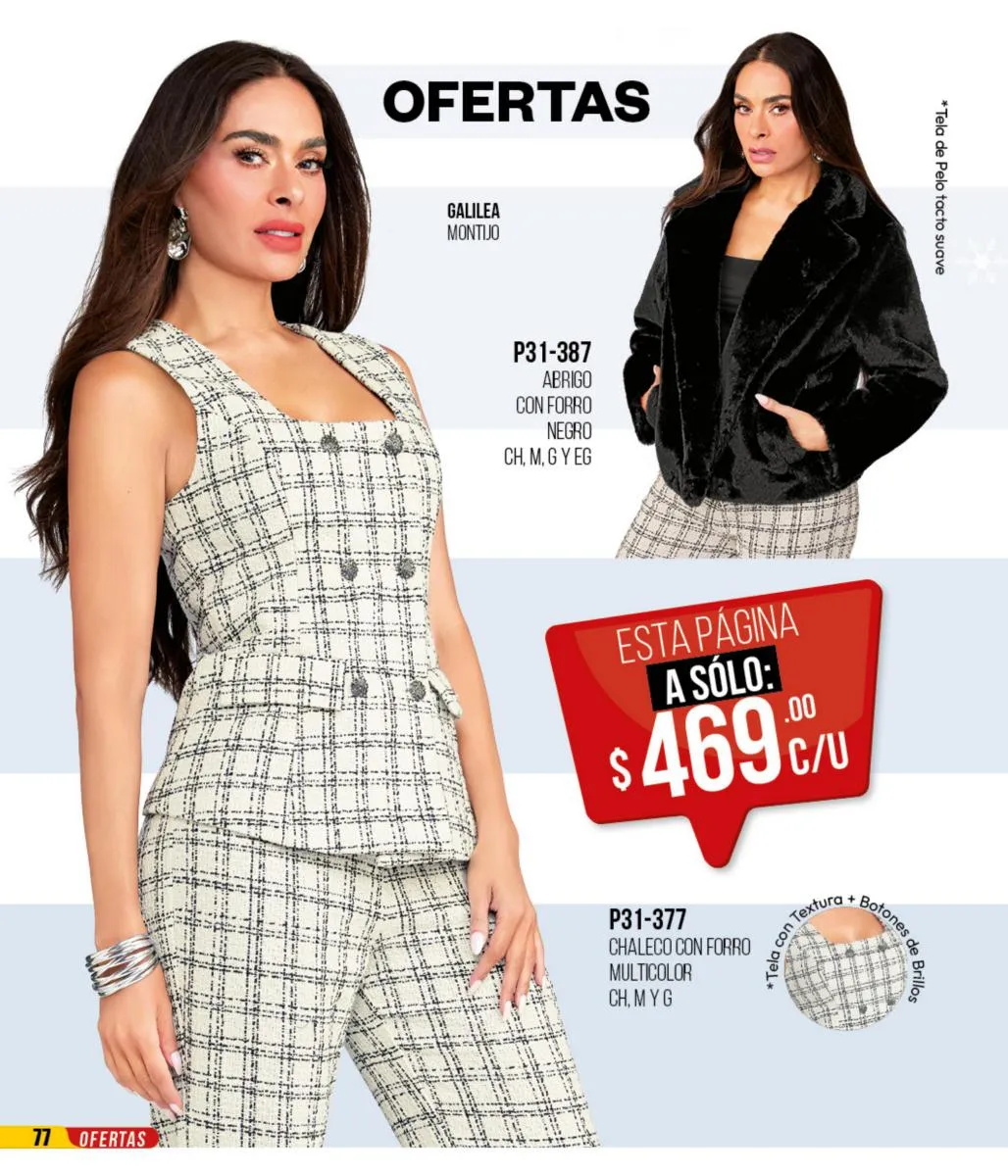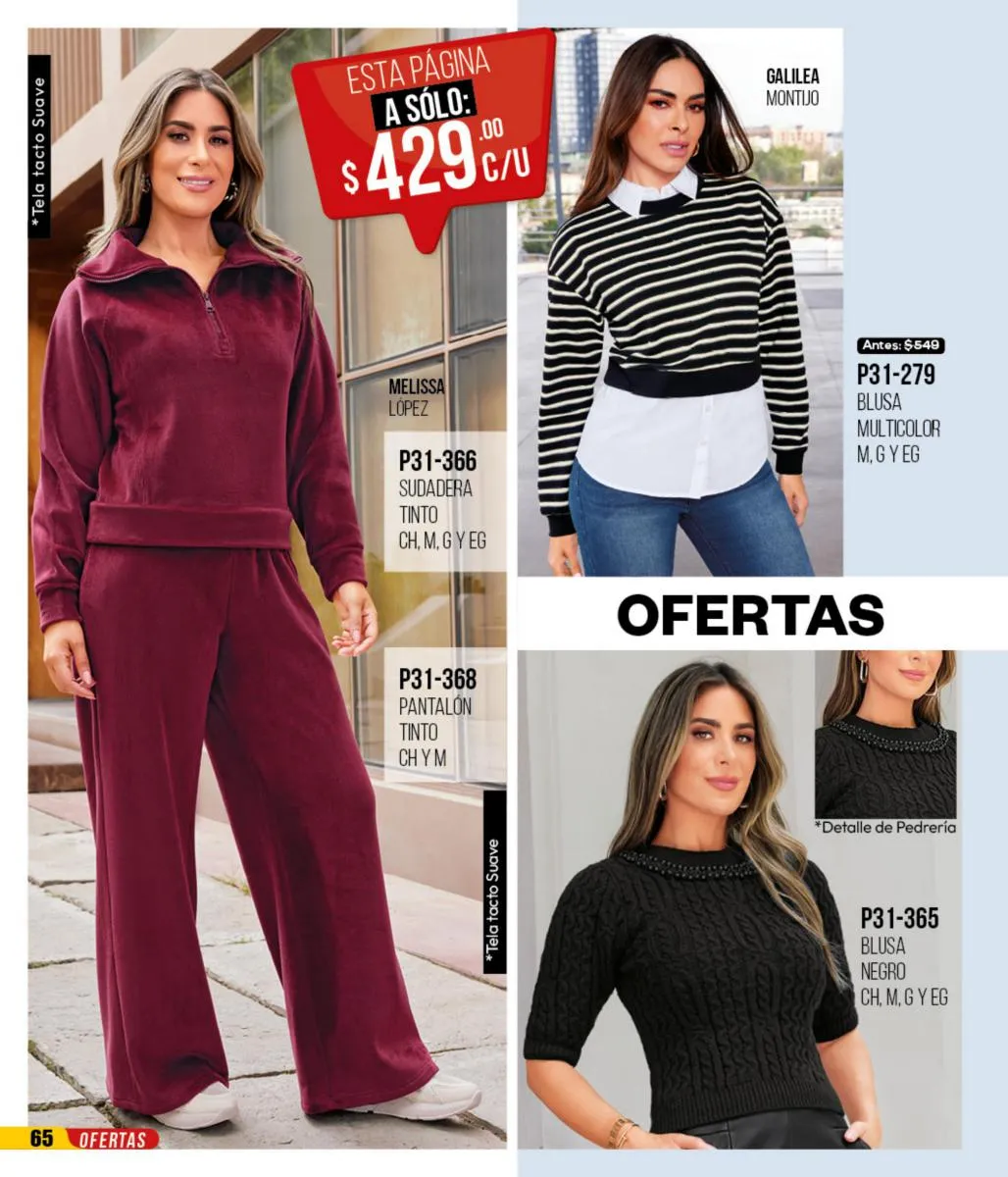 Una de las grandes ventajas de este catálogo son las ofertas y descuentos especiales. Encontrarás rebajas significativas en una amplia variedad de prendas, lo que te permitirá renovar tu guardarropa sin gastar una fortuna. Desde blusas y vestidos hasta jeans y sacos, todas las prendas están disponibles a precios reducidos, lo que hace de este el momento perfecto para hacer tus compras.