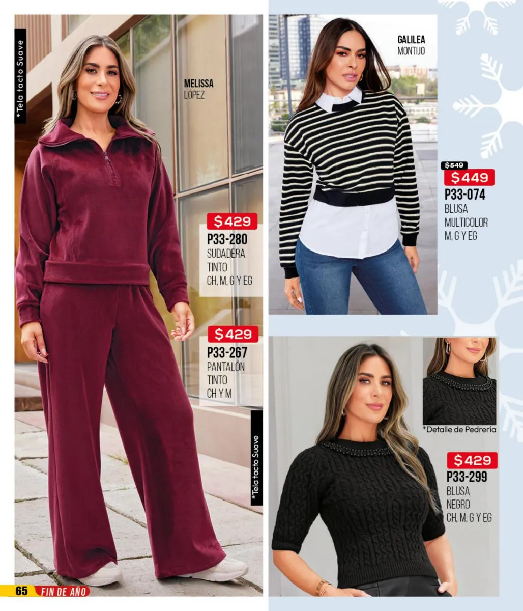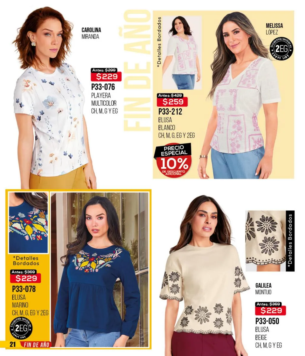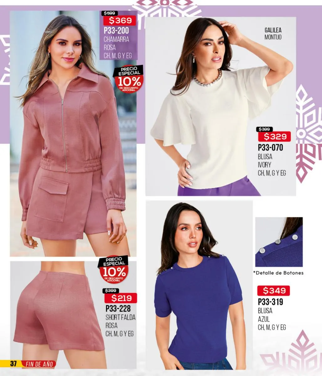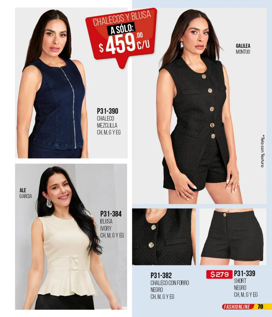 Una de las grandes ventajas de este catálogo son las ofertas y descuentos especiales. Encontrarás rebajas significativas en una amplia variedad de prendas, lo que te permitirá renovar tu guardarropa sin gastar una fortuna. Desde blusas y vestidos hasta jeans y sacos, todas las prendas están disponibles a precios reducidos, lo que hace de este el momento perfecto para hacer tus compras.