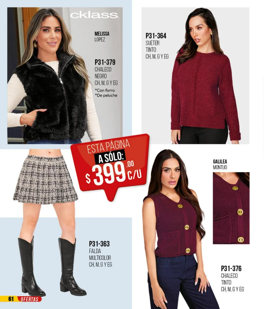 El catálogo Cklass Mega Ofertas – Ropa una amplia variedad de estilos y tallas, este catálogo asegura que cada mujer pueda encontrar el atuendo perfecto para cualquier ocasión. No te pierdas estas ofertas y renueva tu guardarropa con las últimas tendencias de la moda.
