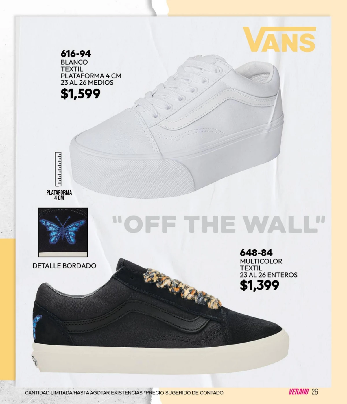 Las zapatillas urbanas de Vans “off the wall” con plataforma de 35 cm son ideales para lucir cool y agregar más altura para estilizar las piernas. Elige sus modelos clásicos que combinan con todas tus prendas, u opta por diseños más osados y coloridos para darle un toque especial a tus salidas con amigos o en familia.