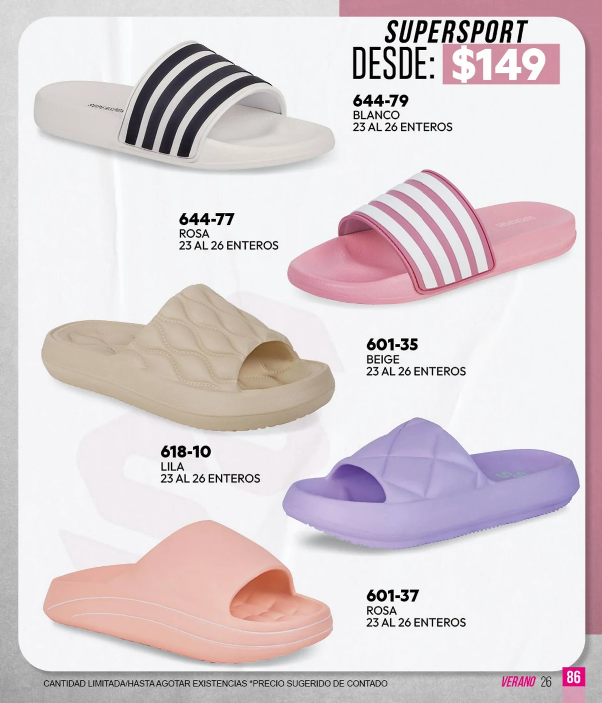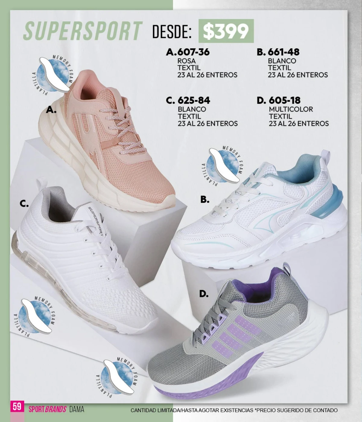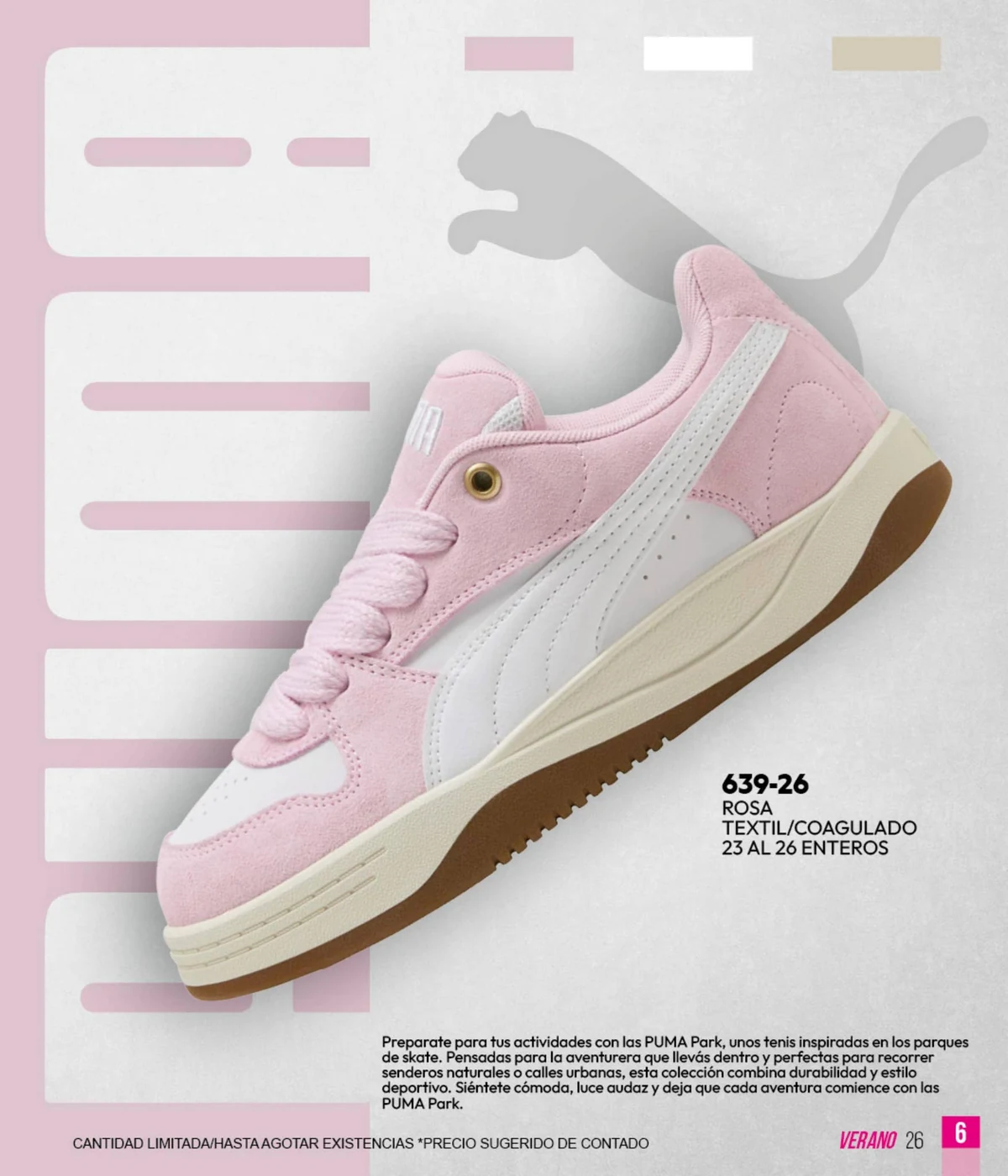 Con Fila podrás hacer todo lo que te propones en esta temporada. Las zapatillas deportivas están diseñadas para que te ejercites cómoda y con estilo. Los colores vibrantes de esta colección harán que siempre tengas ganas de usarlas y crear looks increíbles. Las sandalias coaguladas de goma son perfectas para entrenar en una piscina, o en la playa. Disfruta de la frescura y de los diseños de esta catálogo Cklass Sport Brands Dama 2026 México. Y sus zapatillas urbanas son un clásico infaltable, puedes crear outfits formales o casuales, y darles un toque de tu personalidad con estas zapatillas.